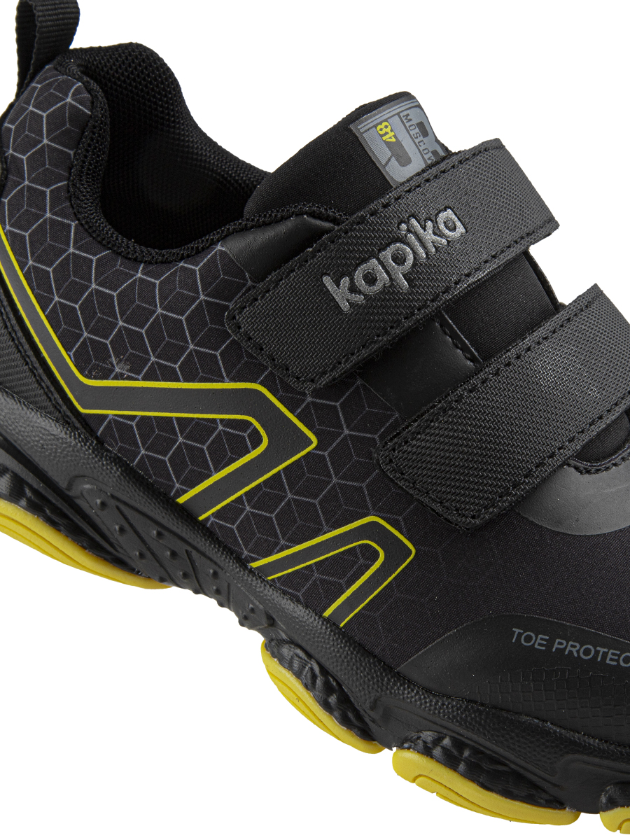 Эта модель детских кроссовок изготовлена из водоотталкивающего материала софтшелл, который обеспечивает надежную защиту ног ребенка в любых погодных условиях. Дизайн кроссовок продуман до мелочей, чтобы удовлетворить вкусы самых требовательных клиентов. Носочная часть кроссовок защищена, материал верха мягкий и приятный на ощупь, а легкая амортизирующая подошва обеспечивает комфорт при ходьбе. Кожаная антибактериальная стелька эффективно поглощает влагу, неприятные запахи и снижает нагрузку на ноги ребенка при ходьбе.