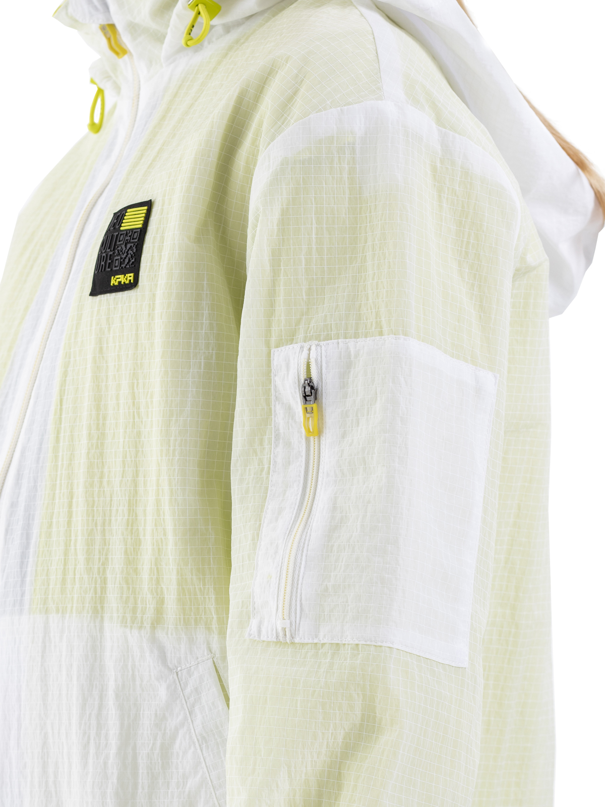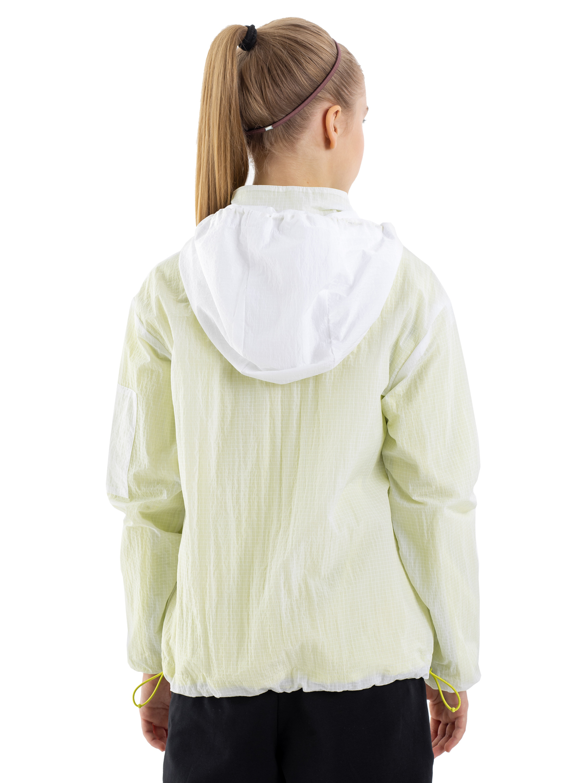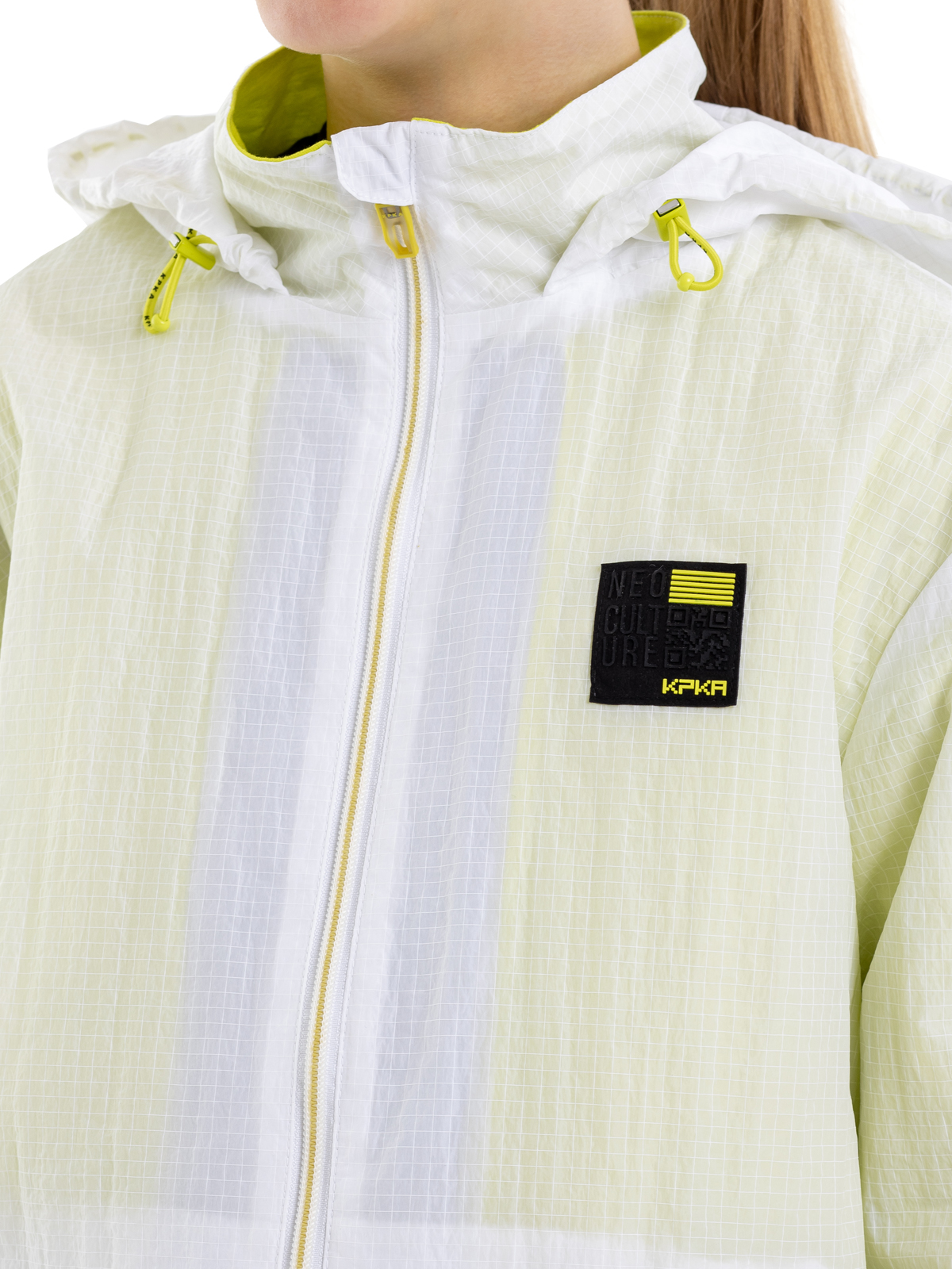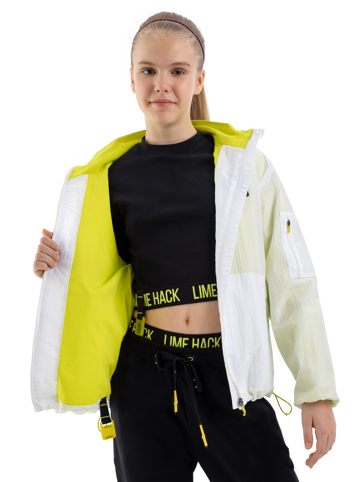 Лёгкая и воздушная куртка для девочки-подростка — идеальный выбор для межсезонья. Верх выполнен из белоснежной полупрозрачной ткани из 100% нейлона с водоотталкивающей пропиткой, что обеспечивает защиту от влаги и комфорт при носке. Особую изюминку модели придаёт яркая жёлтая подкладка из 100% хлопка, создающая контрастный и стильный образ. Практичная молния и два удобных прорезных кармана обеспечивают функциональность, а регулируемый капюшон и утяжка по низу изделия позволяют настроить посадку по фигуре. Дизайн дополняют стильные детали: вся фурнитура выполнена в ярком жёлтом цвете, а контрастный чёрный резиновый патч на груди придаёт модели современный акцент. Эта лёгкая куртка станет отличным выбором как для активного образа жизни, так и для повседневной носки.