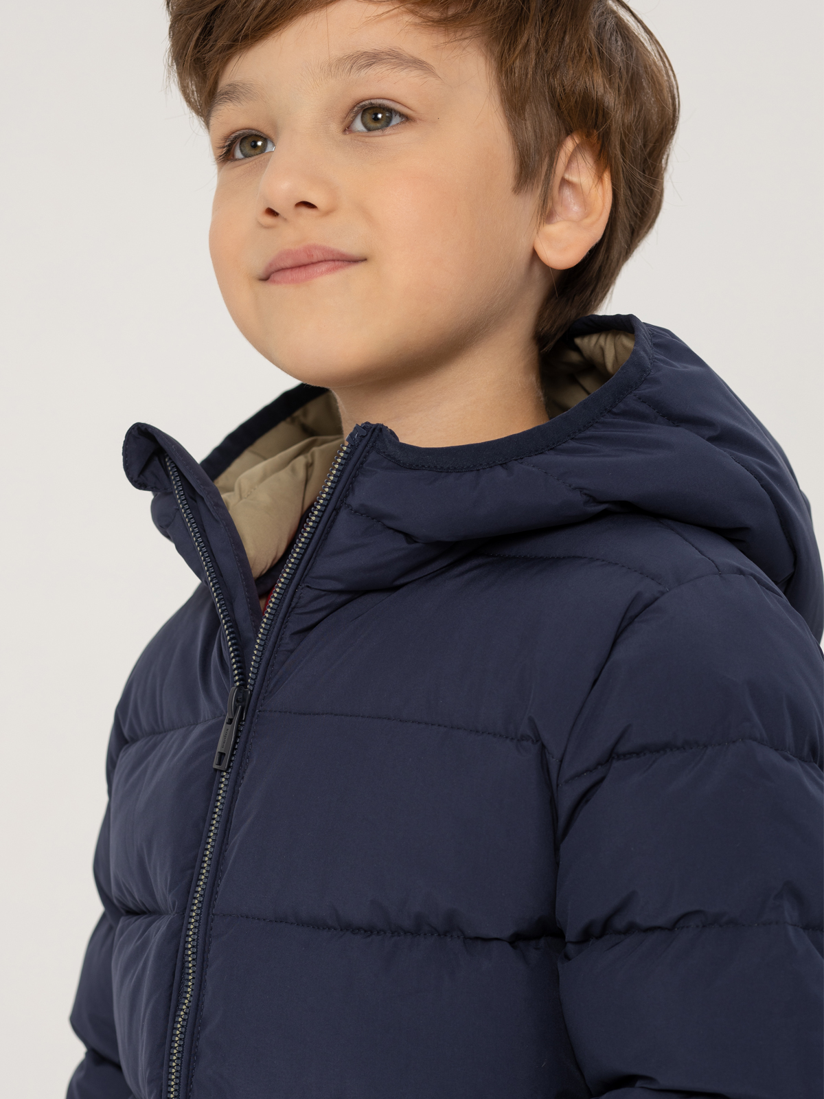 Демисезонная куртка в тёмно-синем цвете — идеальный выбор для активных мальчиков. Модель отличается стильным дизайном и практичностью, легко вписываясь как в спортивный, так и в повседневный образ. Куртка имеет удобный крой, который не сковывает движения ребёнка, а два боковых кармана обеспечивают удобство хранения мелочей. Мембрана 5000/5000 обеспечивает отличную водостойкость и воздухопроницаемость, а утеплитель Dupont Sorona mini ball 200 г/м² гарантирует оптимальную теплоизоляцию без добавления лишнего веса. Модель подойдёт для мальчиков, которые ценят комфорт и стиль в одежде, а также нуждаются в надёжной защите от непогоды.
