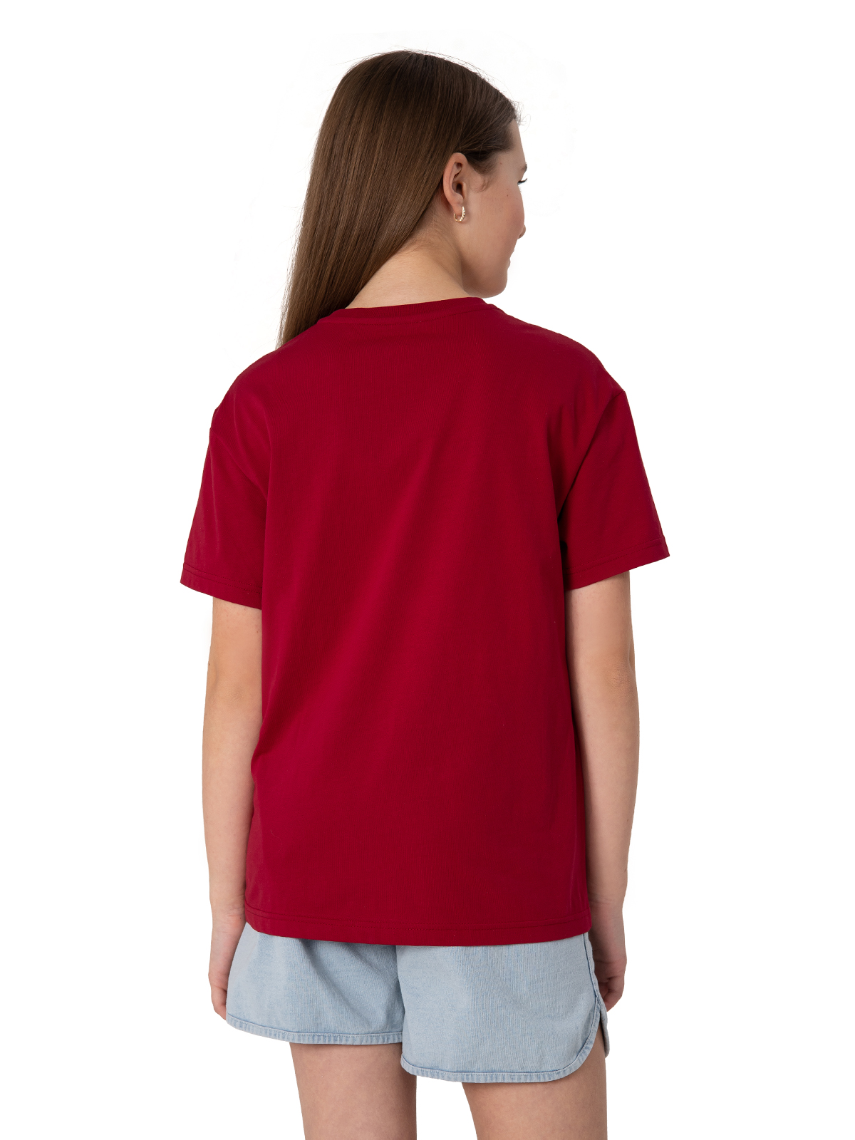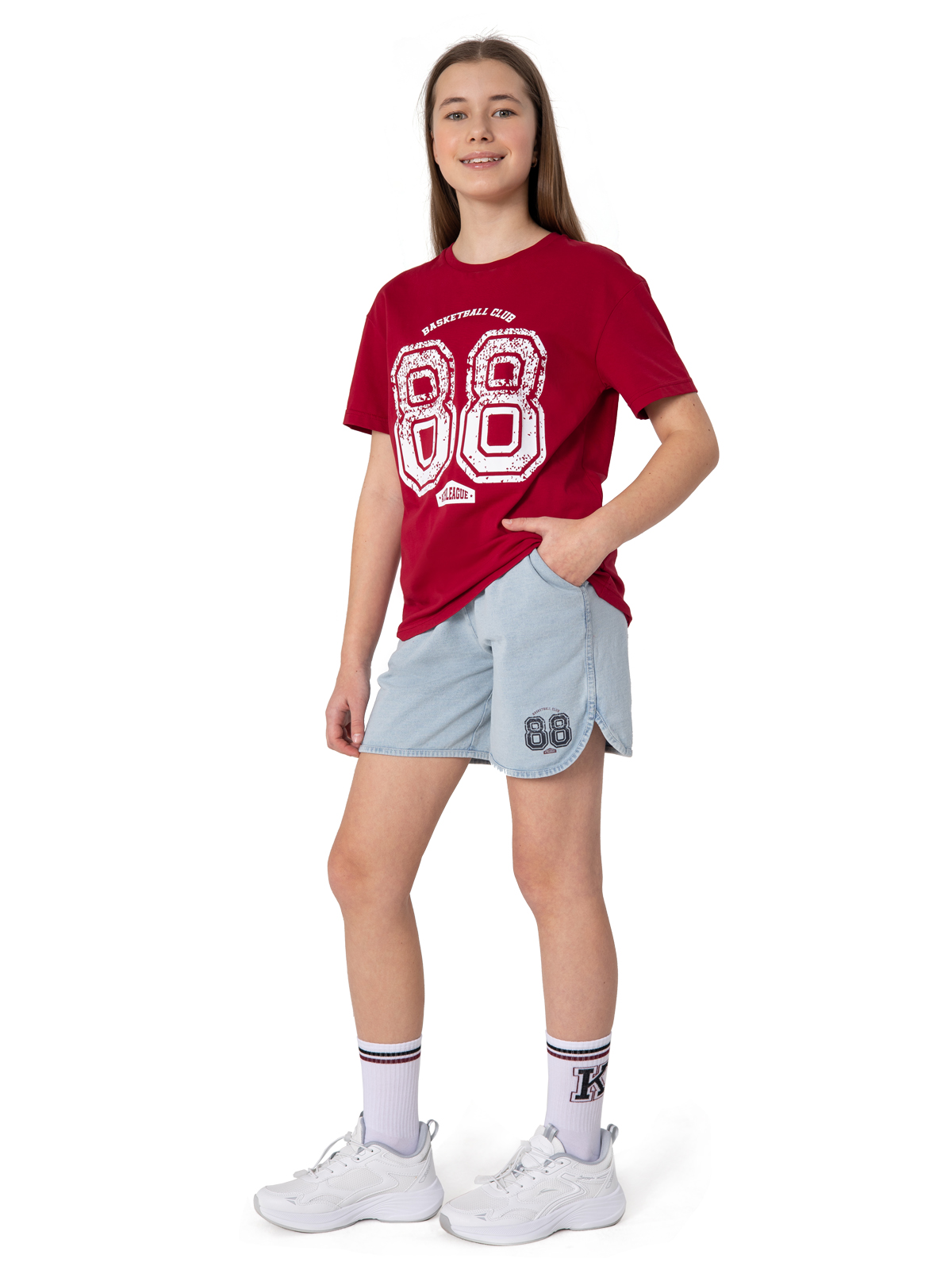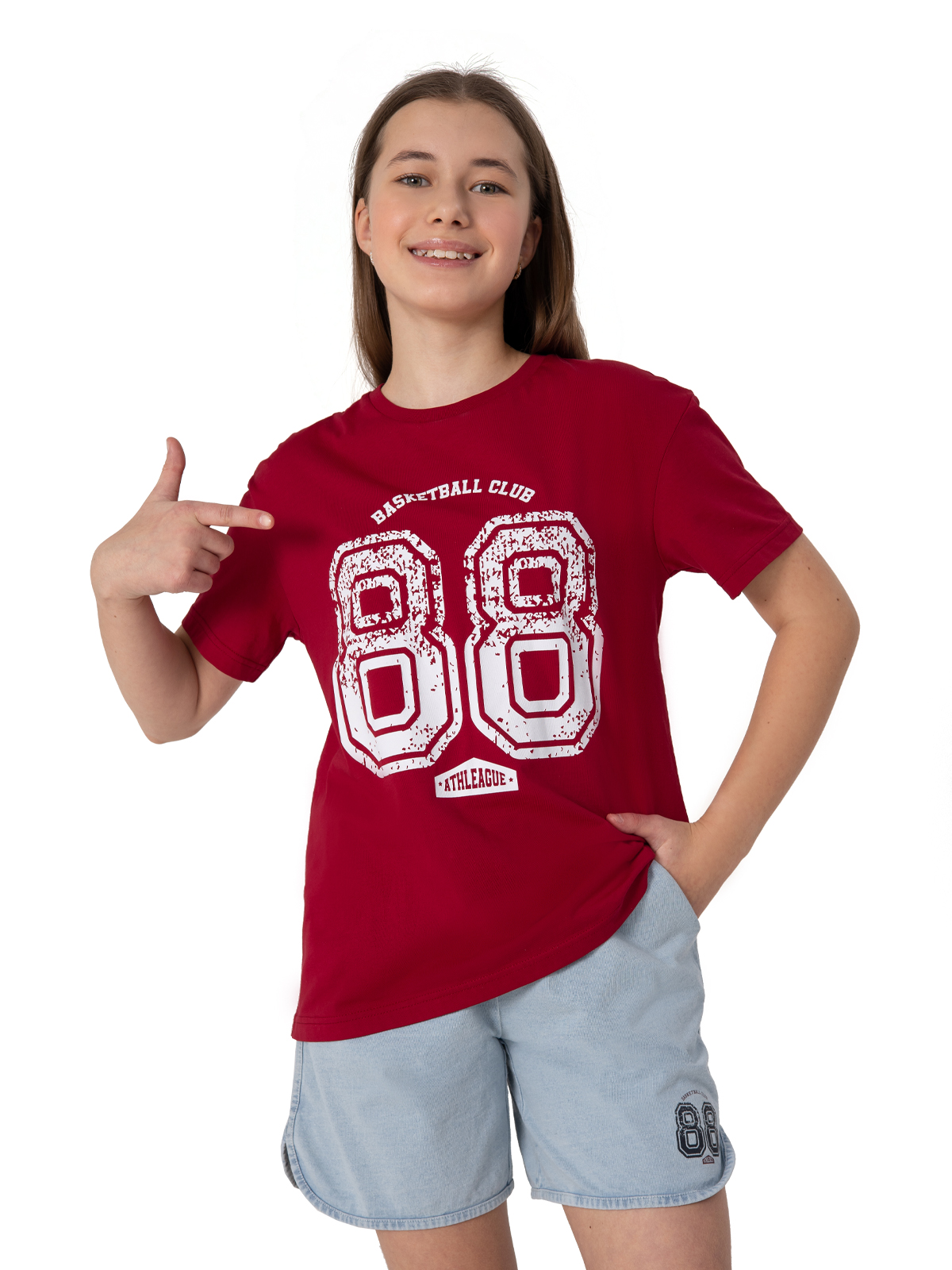Футболка яркого цвета для тех, кто предпочитает спортивный стиль. Трендовый принт в эстетике баскетбола. Сочетание с вещами белого и голубого цвета подчеркнет яркость модели. Прямой крой футболки и дышащий материал позволят чувствовать себя свободно и комфортно