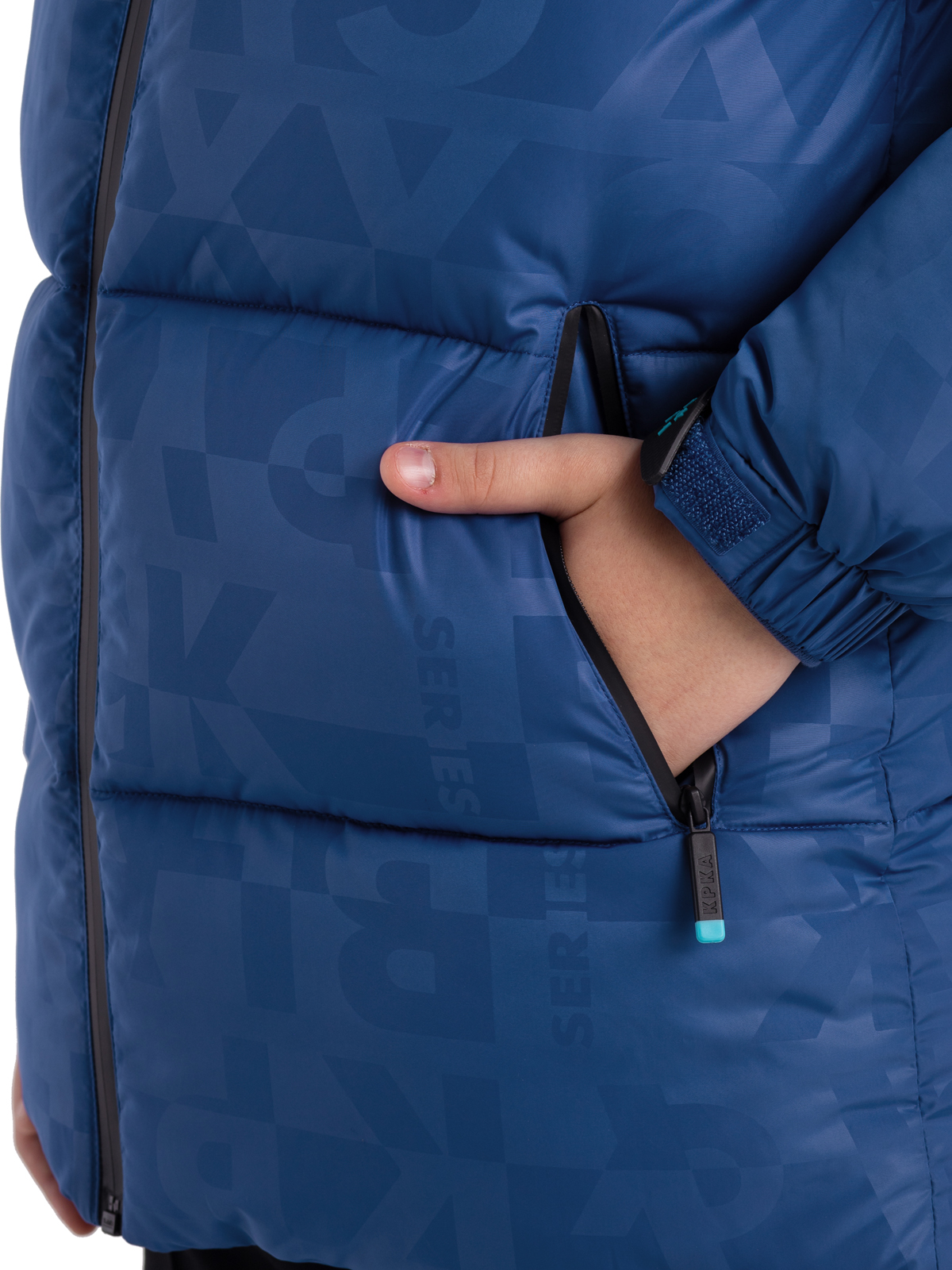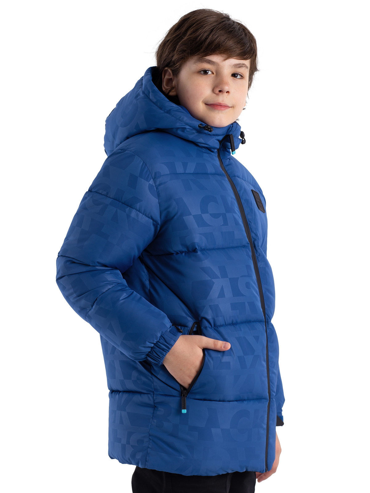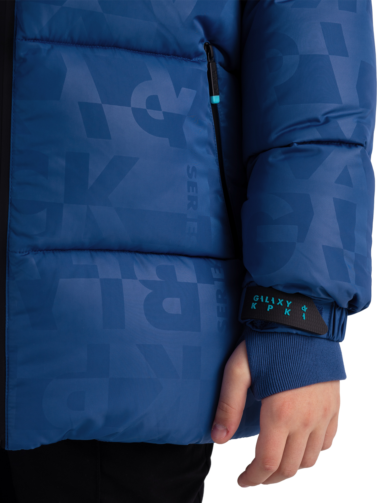 Зимняя куртка для мальчика подростка из принтованной ткани c AC водоотталкивающим покрытием имеет утеплитель - искусственный пух весом 300г/м2. Куртка дополнена ветрозащитными, непромокаемыми «молниями». Капюшон несъемный, по краю капюшона регулируемая кулиса, высокий воротник изнутри утеплен флисом. Модель имеет внутренние манжеты из риба, внешние манжеты с силиконовыми патами для регулировки и функциональные карманы. Пуховик декорирован силиконовым патчем.