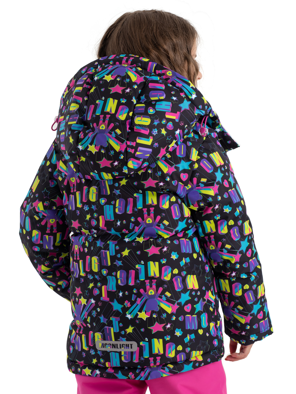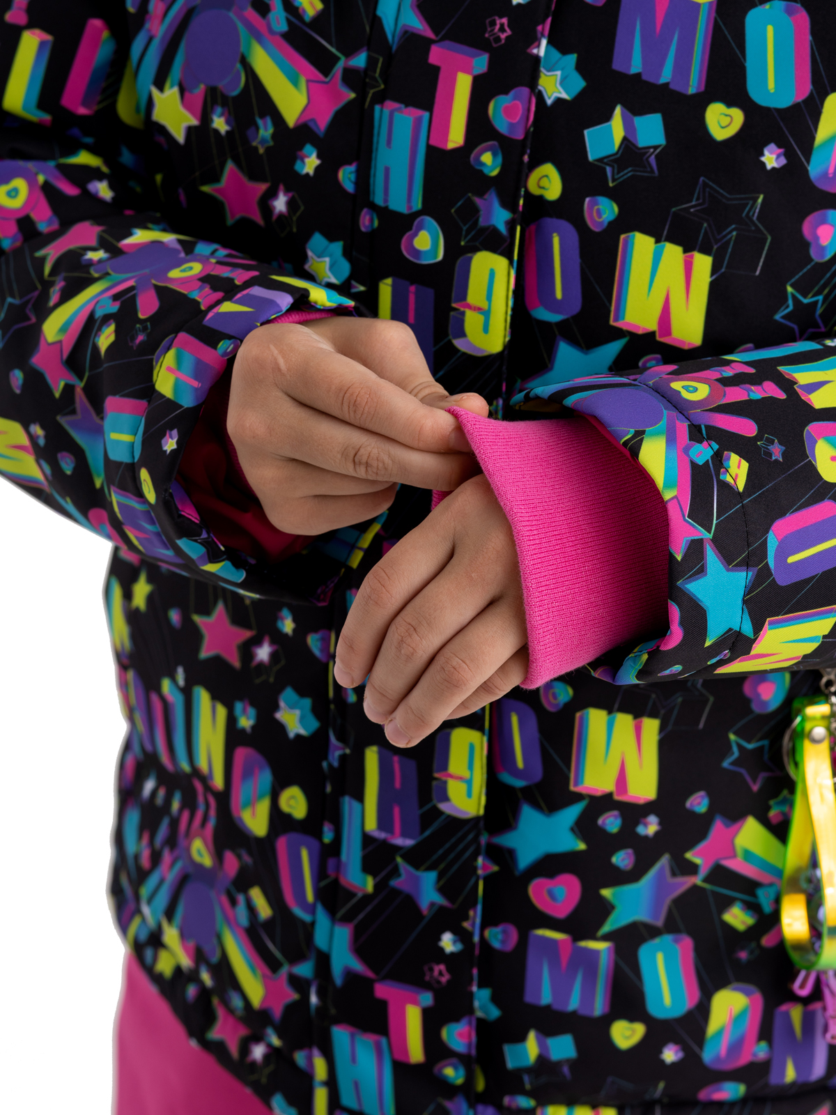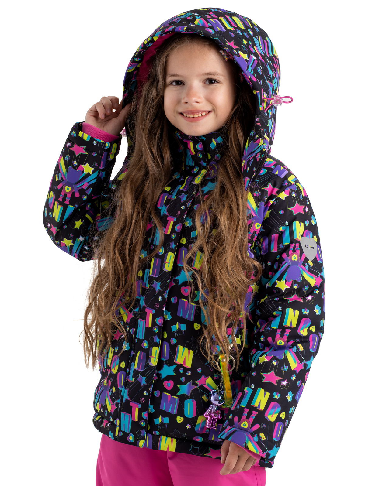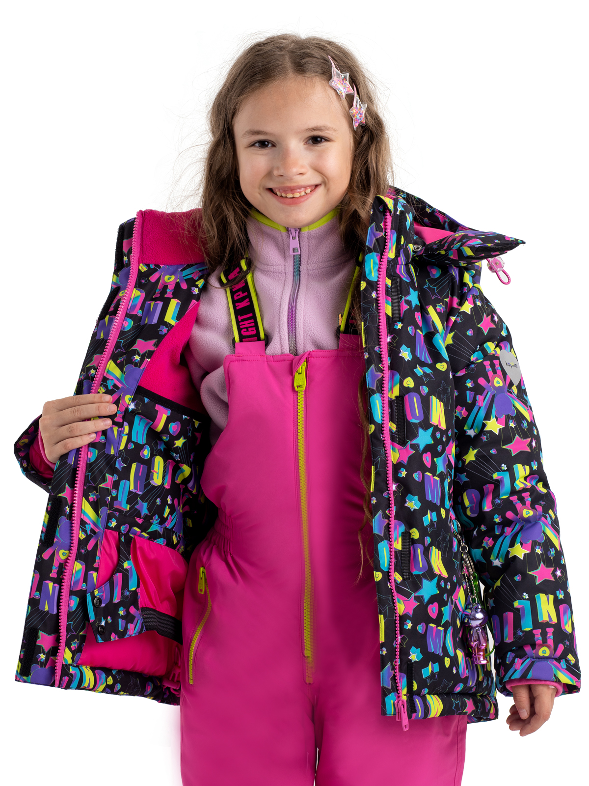 В этой зимней куртке ребенок будет не только защищен от всех зимних непогод, но и будет выглядеть ярко и стильно. Пуховик с яркими принтами изготовлен из влагозащитной, грязеотталкивающей, не продуваемой мембранной ткани 8000мм/5000г/м2/24ч, а утеплитель из искусственного пуха 350г/м2 не даст ребенку замерзнуть. Пуховик со съемным капюшоном, на регулируемой кулисе, имеет снежную «юбку», служащую для исключения попадания снега при падении или катания по глубокому снегу, а также – для защиты от ветра. Центральная молния закрыта ветрозащитной планкой, карманы на липучке. Куртка дополнена тематическими светоотражающими элементами на спинке и рукаве, защищающими в темное время суток, также имеется съемный брелок с милым мишкой. Манжеты из риба сохраняют тепло. Рефлективная подкладка с фольгированным принтом (OMNI-HEAT) эффективно удерживает тепло внутри.
