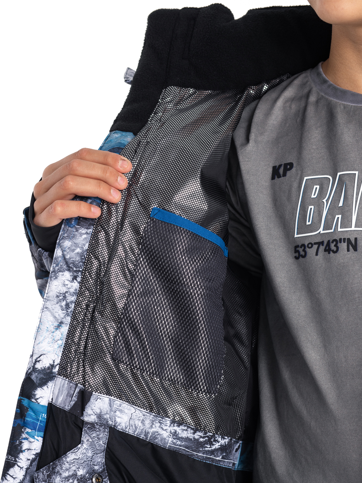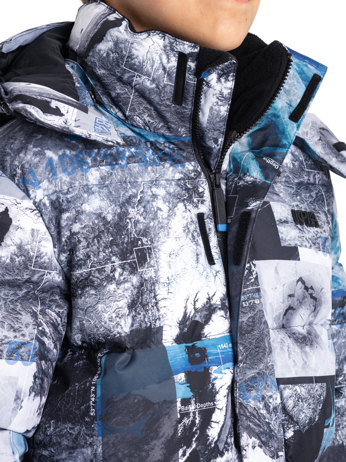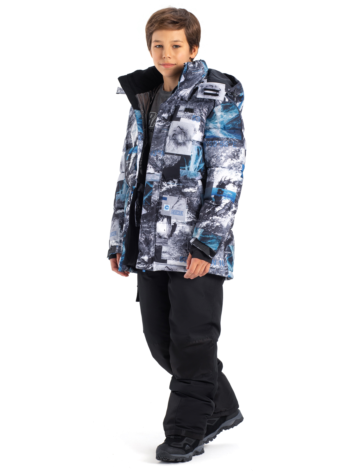 Технологичная зимняя куртка с оригинальным принтом — надёжная защита от холода для активного мальчика. Модель изготовлена из современного материала с мембраной 5000мм/5000г/м2/24ч, обеспечивающей отличную защиту от влаги и превосходную воздухопроницаемость. Тёплый искусственный пух плотностью 350 г/м² гарантирует комфорт даже в сильные морозы. Инновационная подкладка с технологией Omni-heat эффективно эффективно отражает тепло тела, возвращая его обратно. Функциональные элементы включают центральную молнию с ветрозащитной планкой, отстёгивающийся регулируемый капюшон, манжеты на липучках и снежную юбку на кнопках для защиты от снега. Два кармана с листочками и внутренний карман обеспечивают удобное хранение вещей.