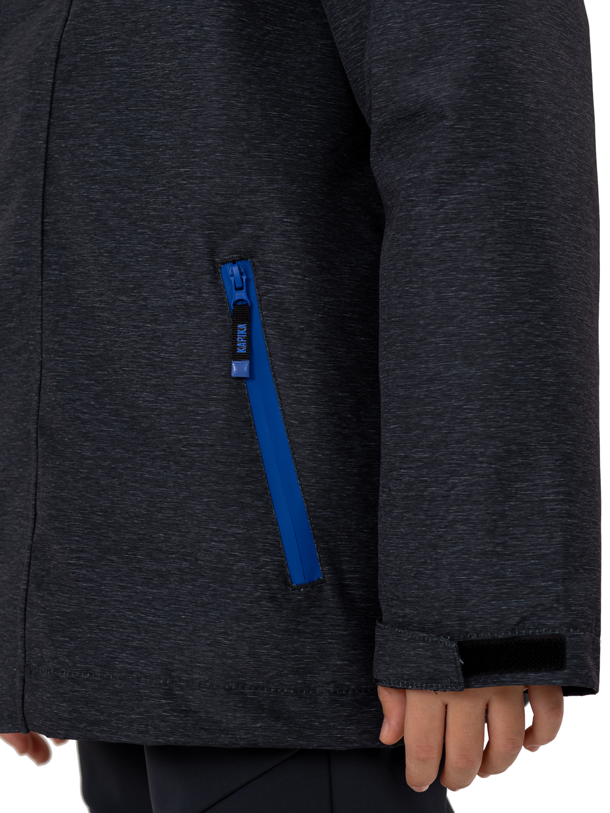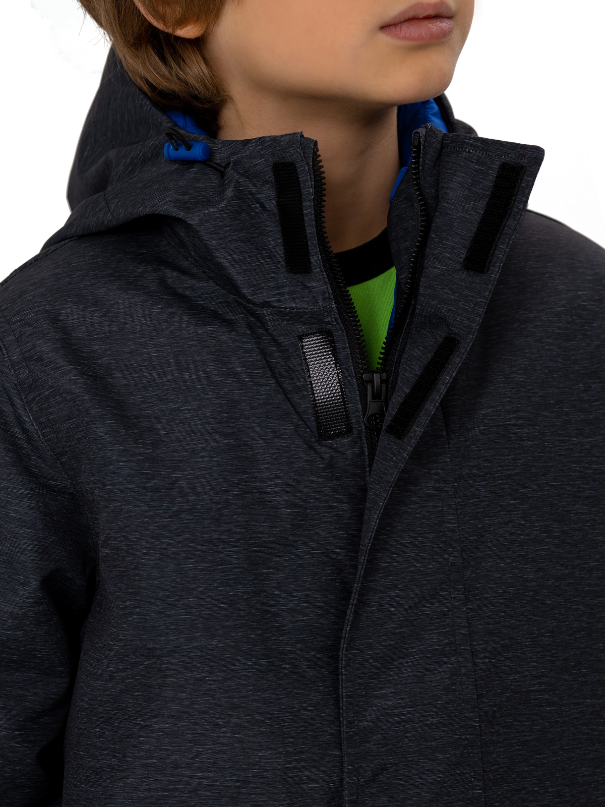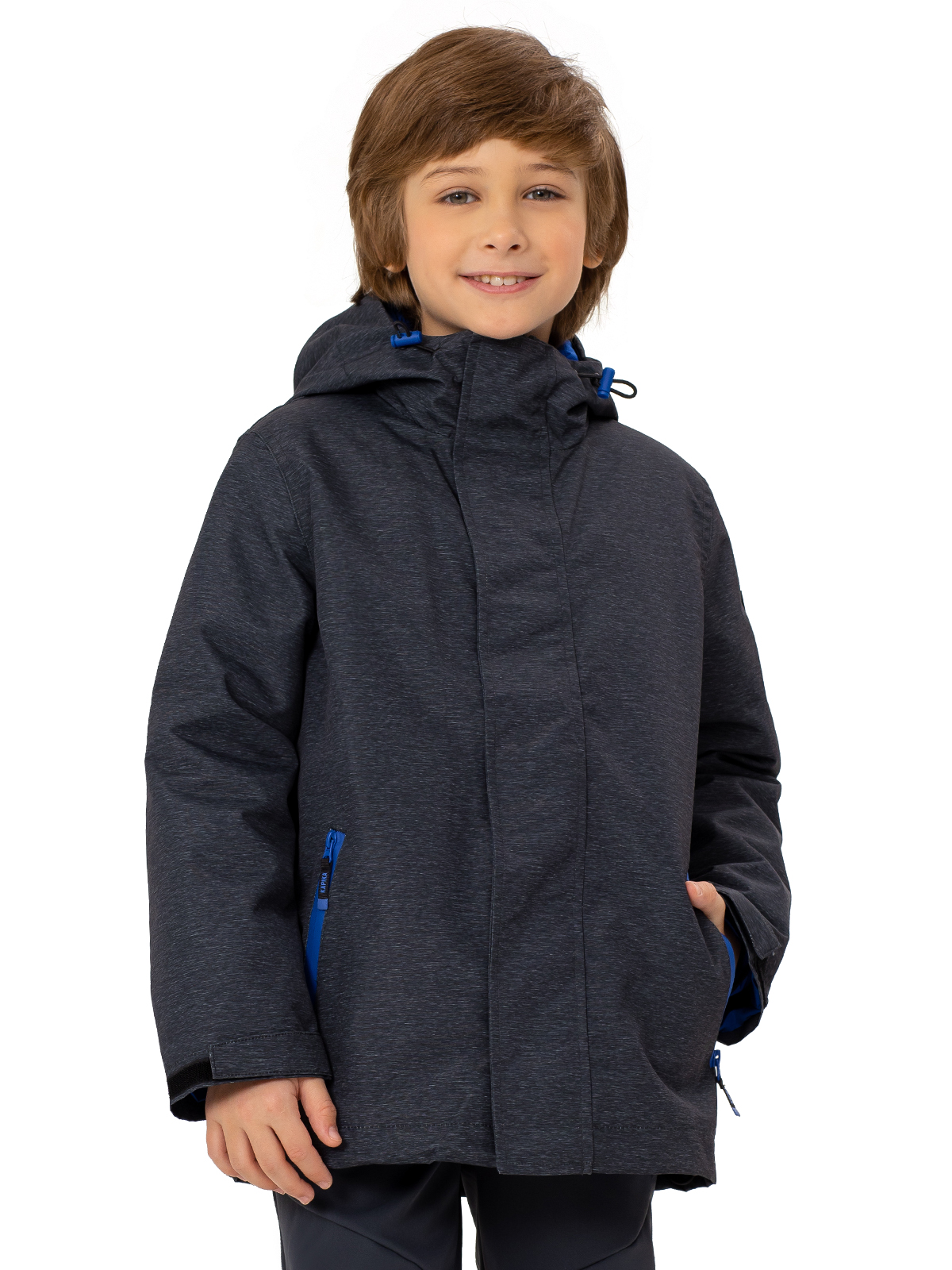 Универсальная демисезонная куртка 2 в 1 для мальчика представляет собой продуманное решение для переменчивой погоды. Верхняя модель выполнена в практичном сером цвете из 100% полиэстера с современной мембраной 5000мм/5000г/м2/24ч, которая обеспечивает надёжную защиту от влаги и отличную воздухопроницаемость. Конструкция верхней куртки включает продуманные детали: центральную молнию с ветрозащитной планкой на липучках, регулируемый капюшон для индивидуальной посадки, карманы с яркими синими водозащитными молниями. Манжеты рукавов оснащены липучками для дополнительной защиты от ветра. Внутренняя куртка насыщенного синего цвета присоединяется к верхней с помощью молнии. Она отличается горизонтальной стёжкой, собственной застёжкой-молнией, функциональными карманами и утеплением из синтепона плотностью 160 г/м². Такая конструкция позволяет использовать куртку как в комплекте, так и по отдельности, что делает её максимально функциональной для различных погодных условий.
