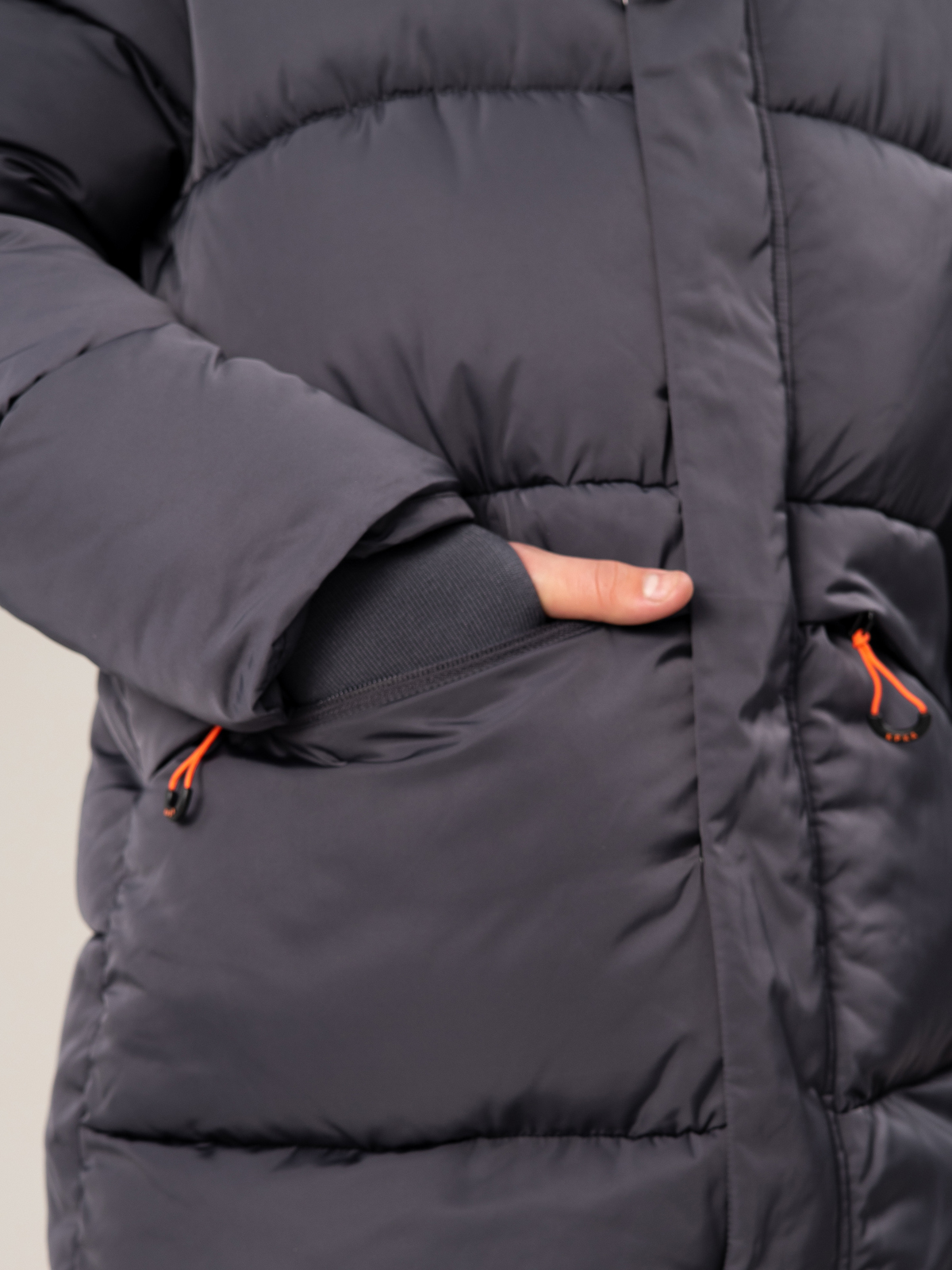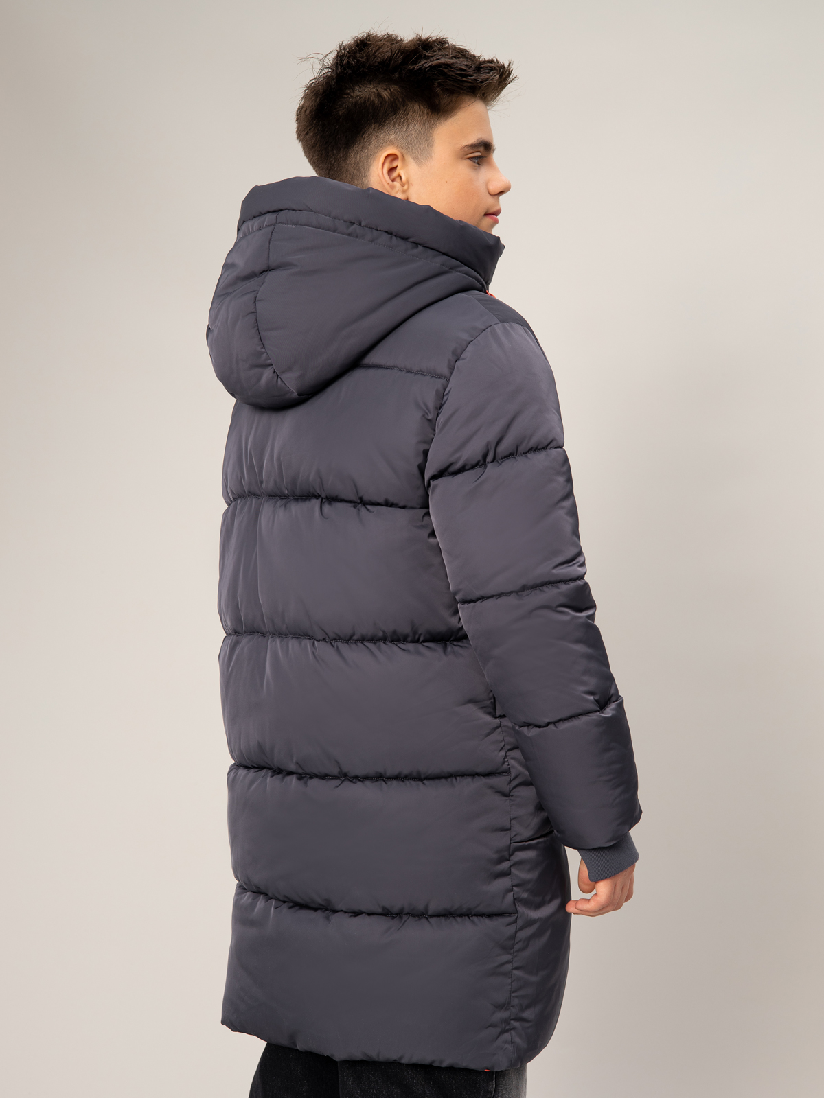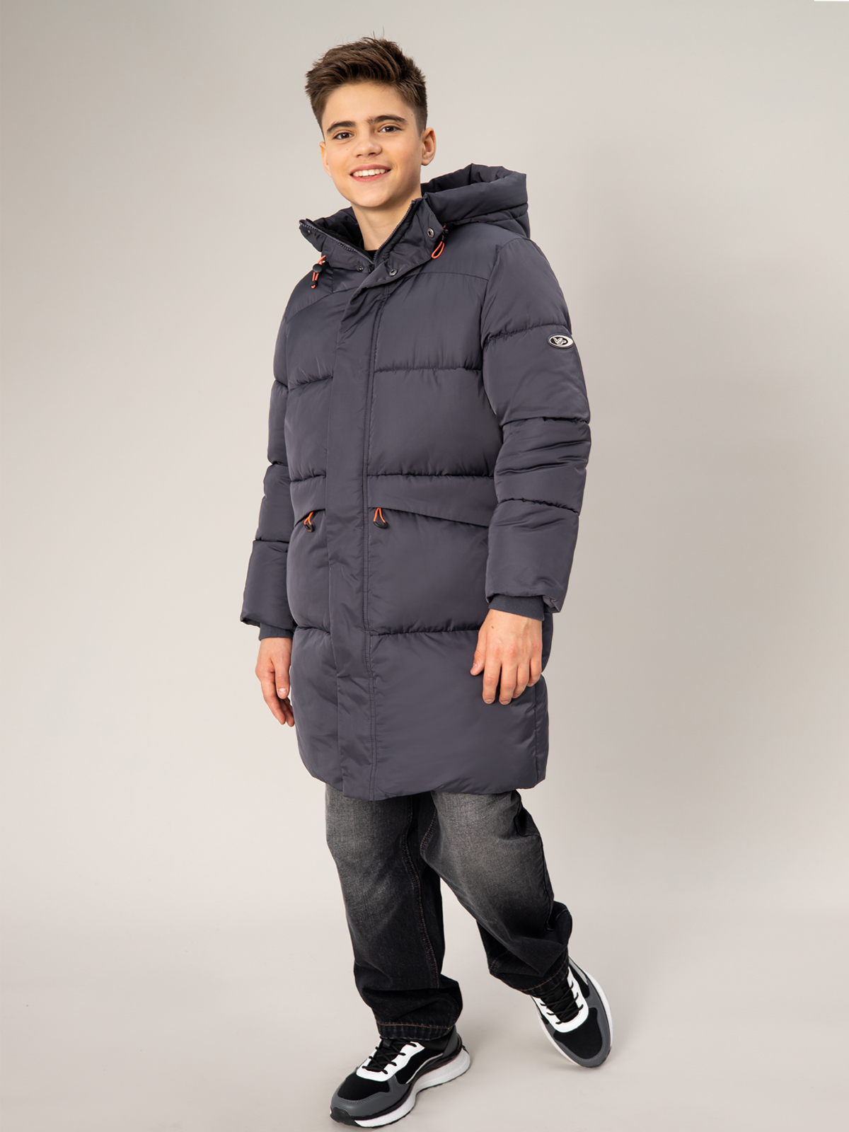 Тёплый стёганый пуховик для мальчика в тёмно-сером цвете — надёжная защита от холода в зимний период. Утеплитель из искусственного пуха плотностью 350 г/м² обеспечивает превосходную теплоизоляцию, а водоотталкивающая АС пропитка надежно защищает от влаги. Модель оснащена практичными элементами: регулируемым капюшоном, застёжкой-молнией с ветрозащитной планкой и двумя удобными карманами. Эластичные манжеты надёжно защищают от проникновения холодного воздуха. Яркая контрастная фурнитура добавляет изделию современный вид и делает его заметным в толпе. Удлинённый крой обеспечивает дополнительную защиту от холода, что особенно важно в зимнее время.