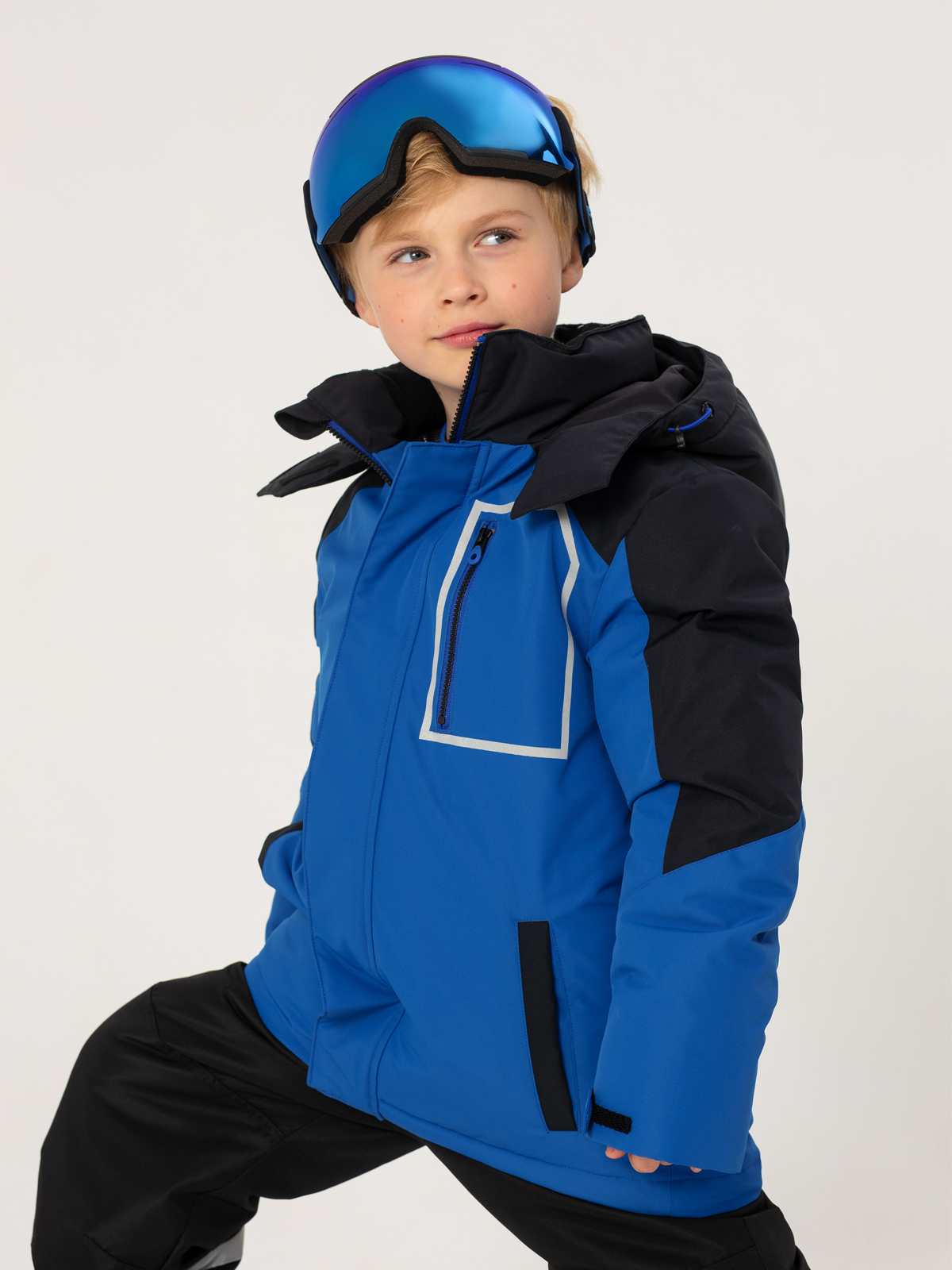 Зимняя куртка из влагозащитной, грязеотталкивающей, не продуваемой мембранной ткани 5000мм/5000г/м2/24ч с утеплителем из искусственного пуха 350г/м2 обеспечивает надежную защиту от мороза. Фольгированная подкладка omni heat отражает тепло тела ребенка и возвращает его обратно. Съемный капюшон имеет регулируемую кулису по краю. Высокий воротник, манжеты из риба, ветрозащитная планка на липучках, кулиса по низу изделия надежно защищают от ветра. Куртка имеет светоотражающие принты для безопасности ребенка в темное время суток.