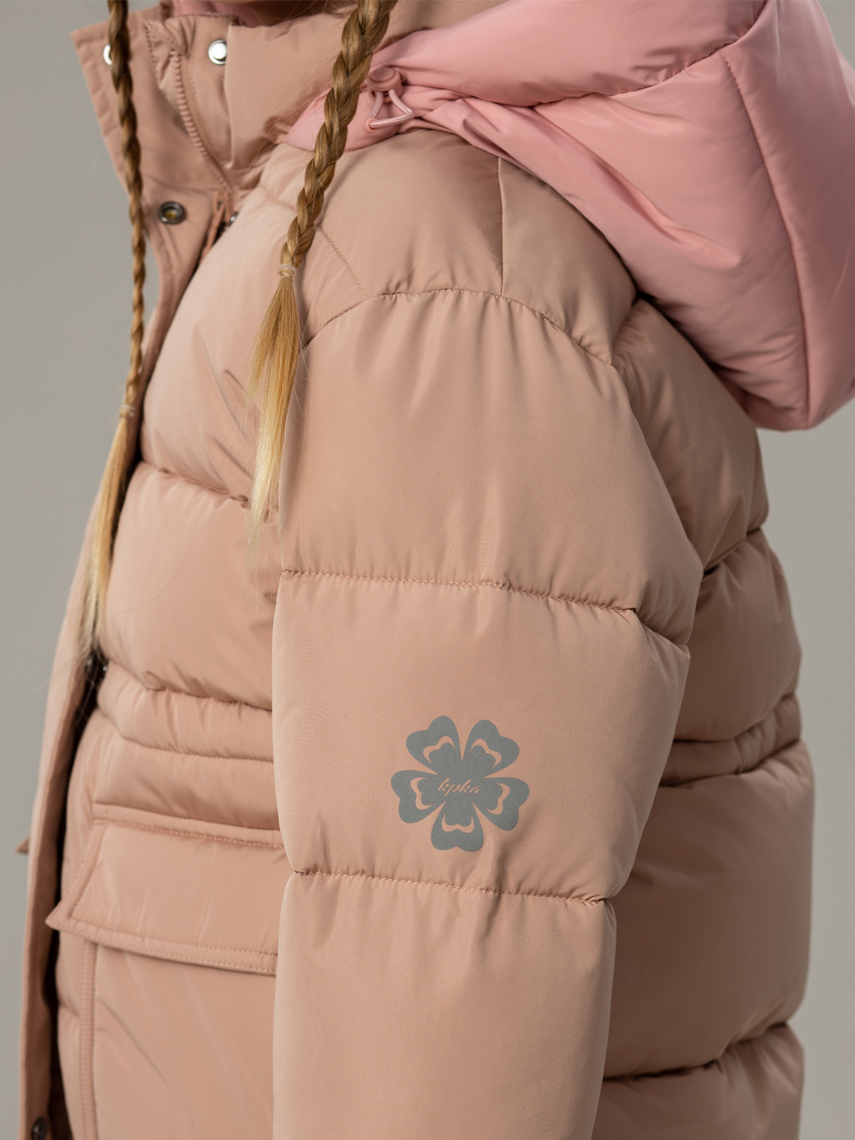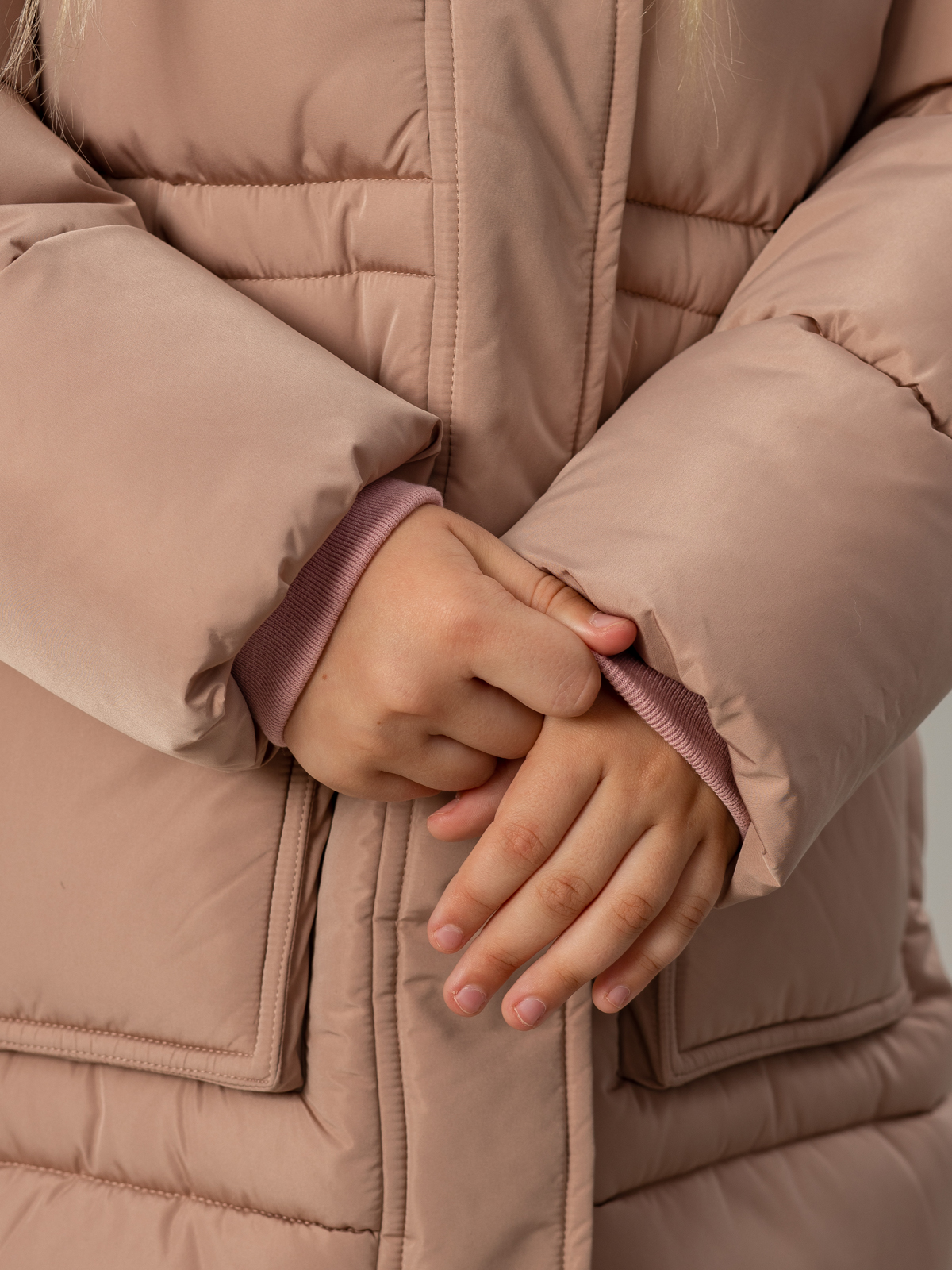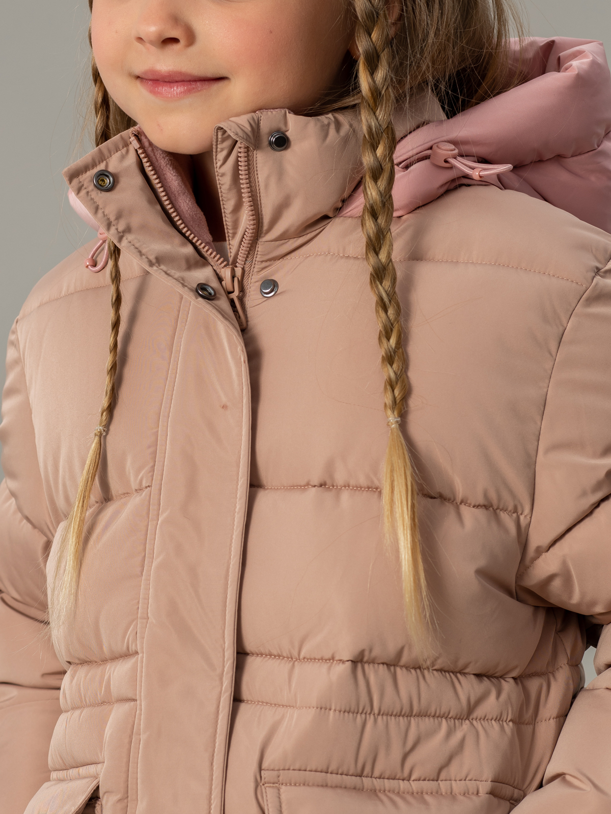 Удлиненная стеганая куртка с контрастным розовым капюшоном станет незаменимым элементом зимнего гардероба девочки. Модель отличается продуманным дизайном и высоким комфортом. Практичная молния с ветрозащитной планкой надежно защитит от холода. Регулируемый капюшон с розовым акцентом добавит уюта и защитит от непогоды.Функциональные карманы с клапанами позволят взять с собой все необходимое, а мягкая внутренняя утяжка по поясу обеспечит идеальную посадку. Трикотажные манжеты сохранят тепло и комфорт.Мембранная ткань 5000/5000 надежно защитит от ветра и осадков, а инновационный утеплитель из искусственного пуха плотностью 350 г/м² обеспечит тепло даже в сильные морозы.