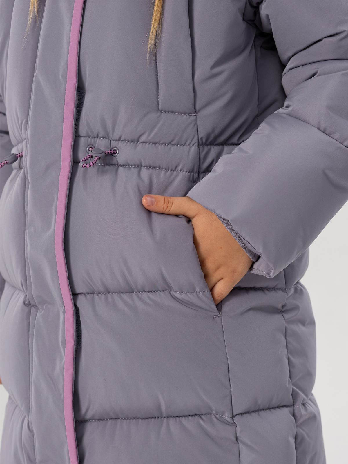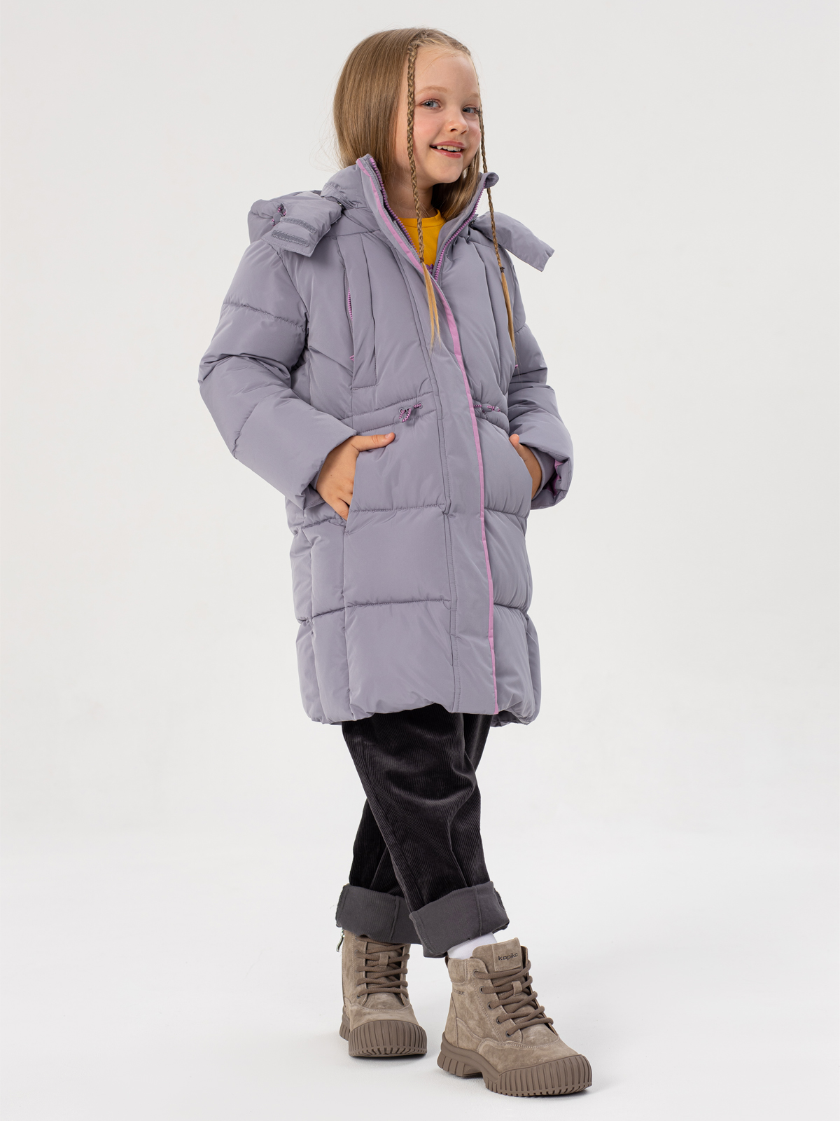 Удлиненная стеганая куртка для девочек станет идеальной защитой от непогоды. Модель выполнена в универсальном сером цвете с эффектной контрастной окантовкой по планке. Практичная застежка-молния дополнена ветрозащитной планкой. Куртка изготовлена из современной мембранной ткани с показателями 5000/5000 г/м², обеспечивающей отличную защиту от влаги и ветра. Утеплена искусственным пухом плотностью 350 г/м², что гарантирует тепло в прохладную погоду. Функциональные детали включают два удобных кармана, съемный регулируемый капюшон и утяжку по поясу для лучшего прилегания. Модель сочетает практичность, комфорт и стильный дизайн, идеально подходя для активных девочек.