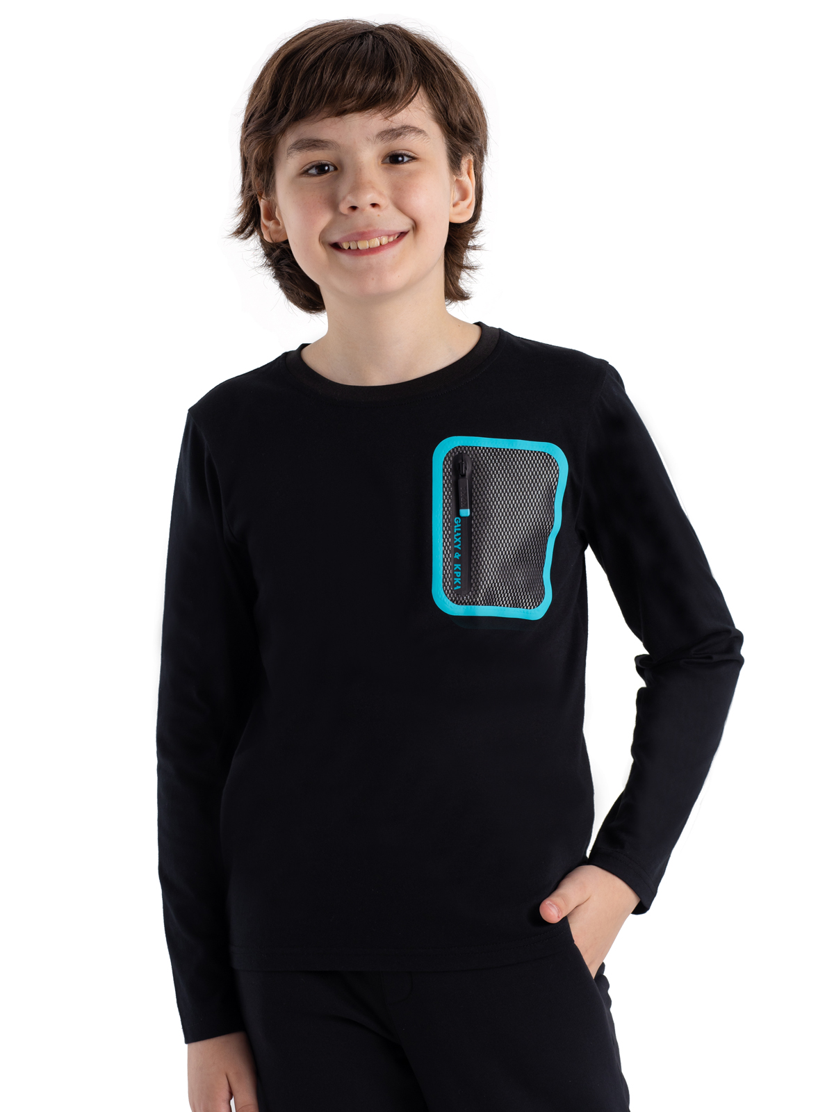 Лонгслив для мальчика-подростка в классическом черном цвете выполнен из высококачественного хлопка. Модель свободного кроя и со слегка спущенной линией плеча дополнена горловиной из эластичного риба. . Футболка с длинным рукавом акцентирована стильными силиконовыми принтами на спине, центральный в неоновом цвете с эффектом 3D, и функциональным карманом на груди с контрастными элементами. Все швы аккуратно обработаны, и благодаря качественному хлопку лонгслив приятно носить и легко стирать, ткань не линяет, не скатывается и не теряет форму даже после многочисленных стирок.