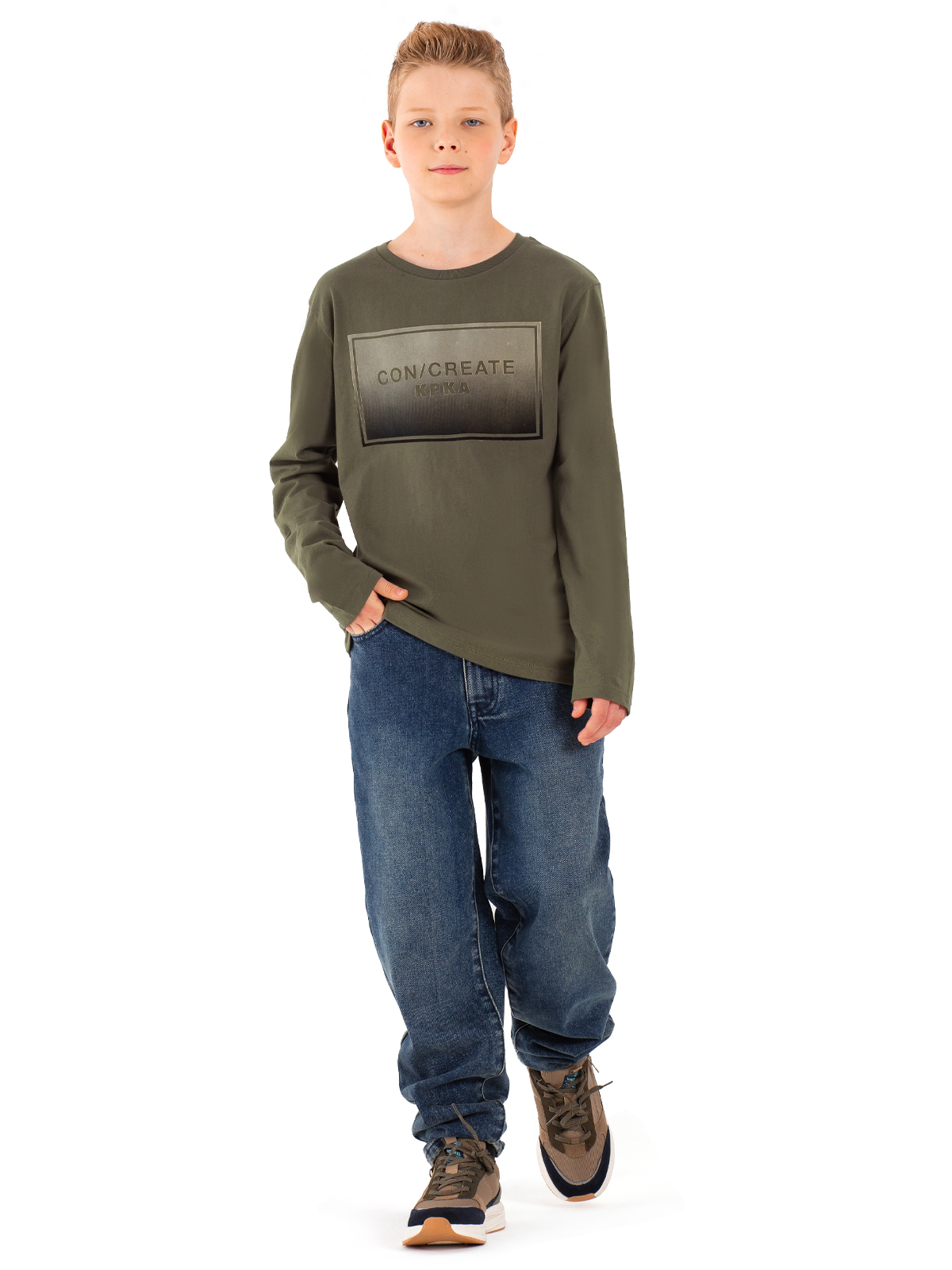 Лонгслив в цвете хаки — необходимая вещь в гардеробе стильного мальчика-подростка. Натуральная хлопковая ткань приятно прилегает к телу и позволяет коже дышать. На груди красуется необычный принт, который выделяет владельца из толпы. Модель прямого силуэта отлично сидит и подходит для любого случая — от школьных занятий до активного отдыха на свежем воздухе. Практичный цвет и качественный материал гарантируют долговечность и комфорт в носке.