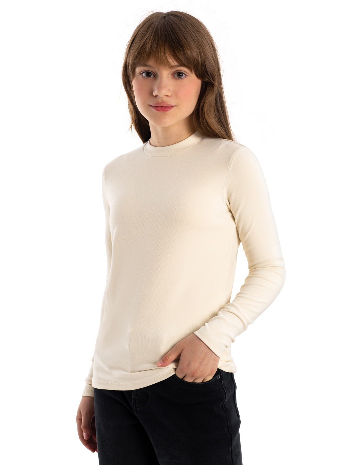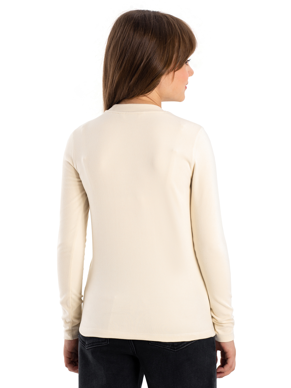 Лонгслив молочного оттенка — незаменимая базовая вещь в гардеробе каждой девочки-подростка. Модель выполнена из мягкого материала с добавлением полиэстера и эластана, что обеспечивает комфорт при носке и отличную посадку по фигуре.Универсальный молочный цвет позволяет создавать разнообразные образы: лонгслив прекрасно сочетается как с юбками и брюками для школы, так и с джинсами для casual-стиля. Ткань приятна к телу, хорошо держит форму и не теряет цвет после стирки. Практичная модель станет основой для множества стильных комбинаций.