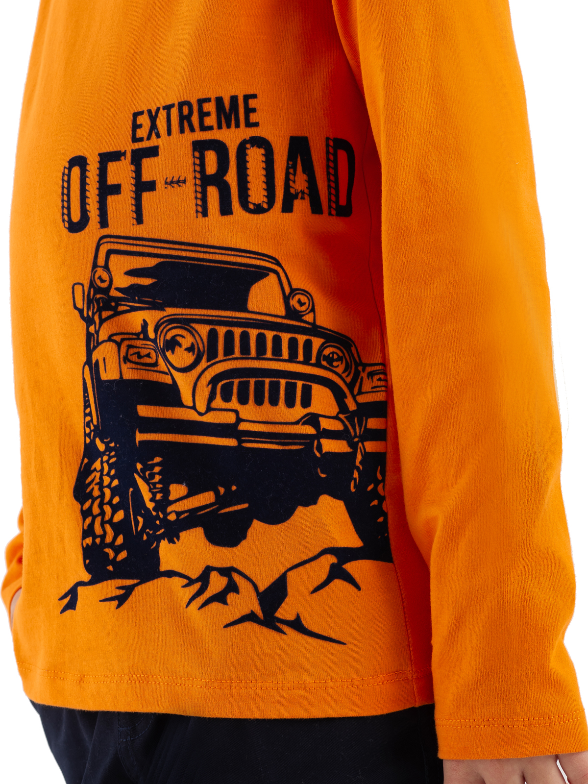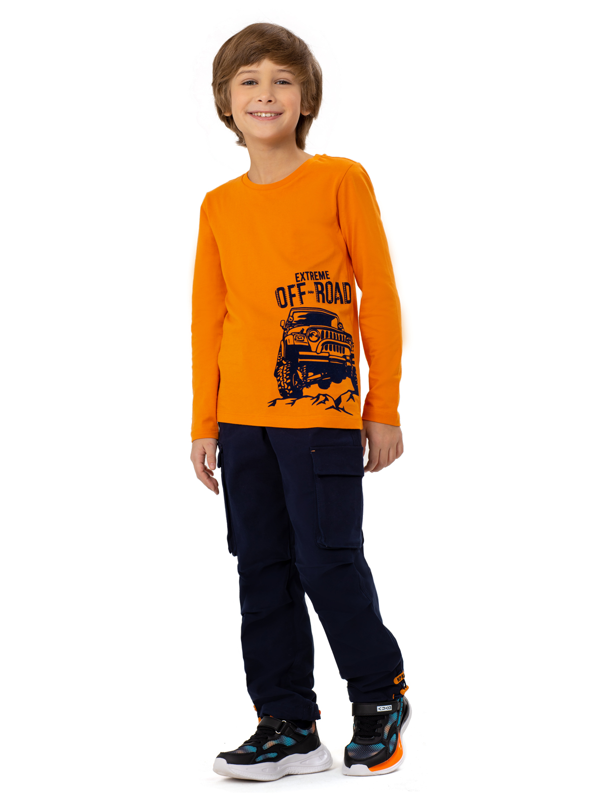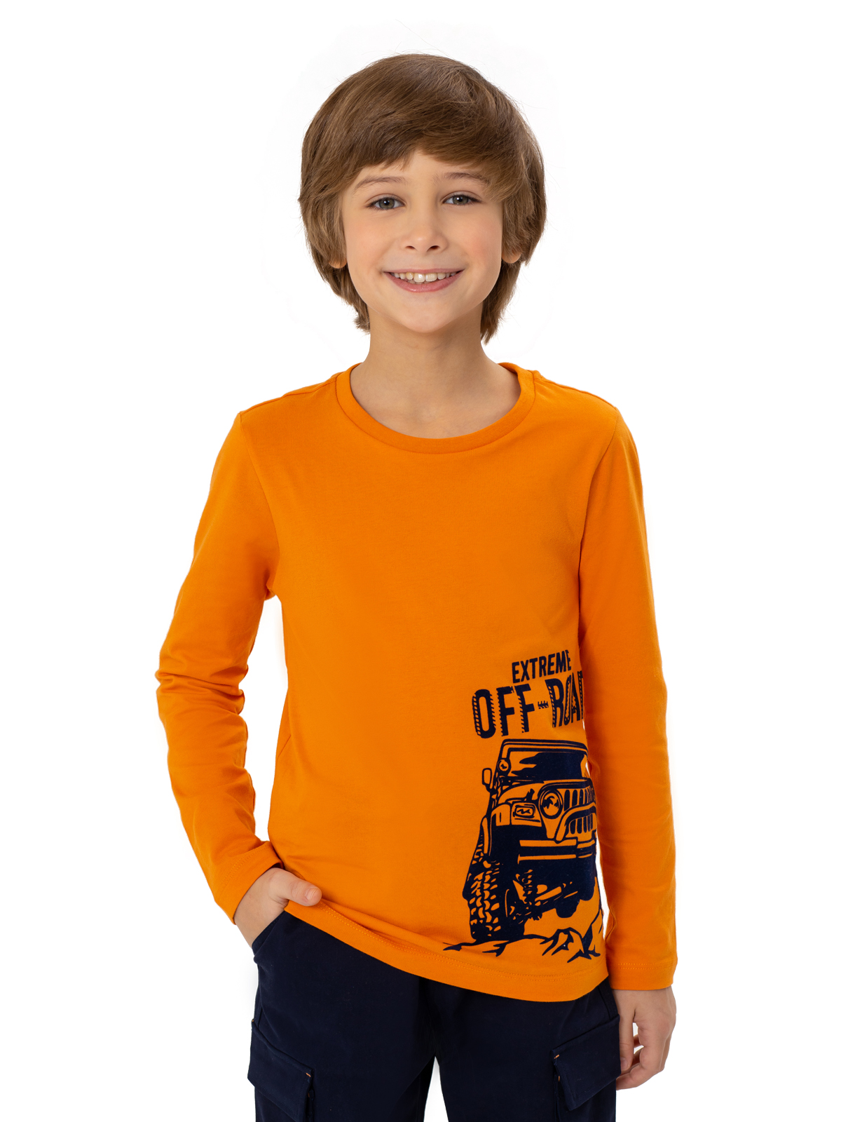 Лонгслив для мальчика в жизнерадостном оранжевом цвете станет ярким акцентом в гардеробе. Модель выполнена из 100% хлопка, который обеспечивает максимальный комфорт при носке. Контрастный принт придаёт изделию современный вид и индивидуальность. Натуральный материал отлично пропускает воздух, позволяя коже дышать в течение всего дня. Классический крой лонгслива идеально сочетается с любой повседневной одеждой.