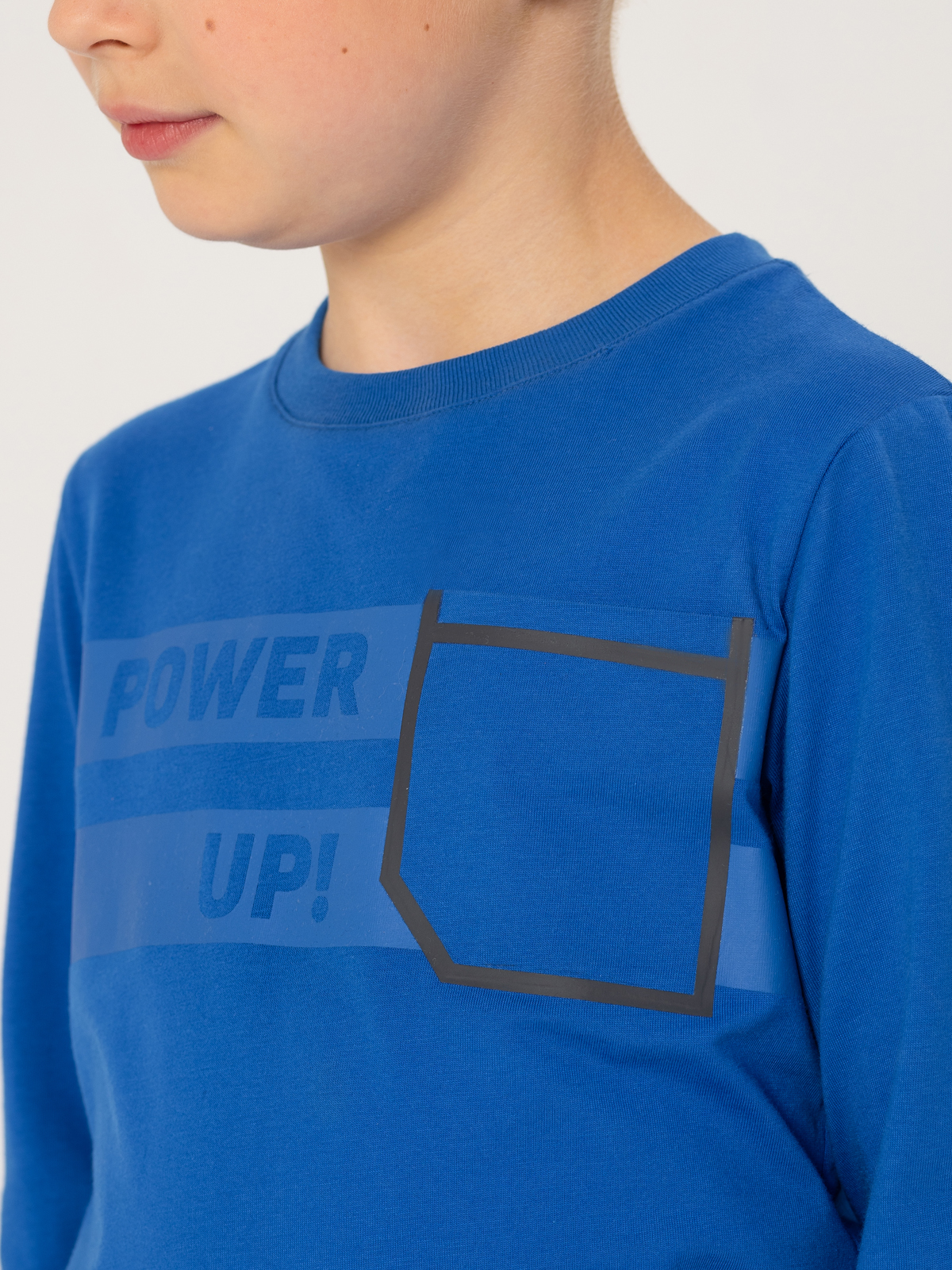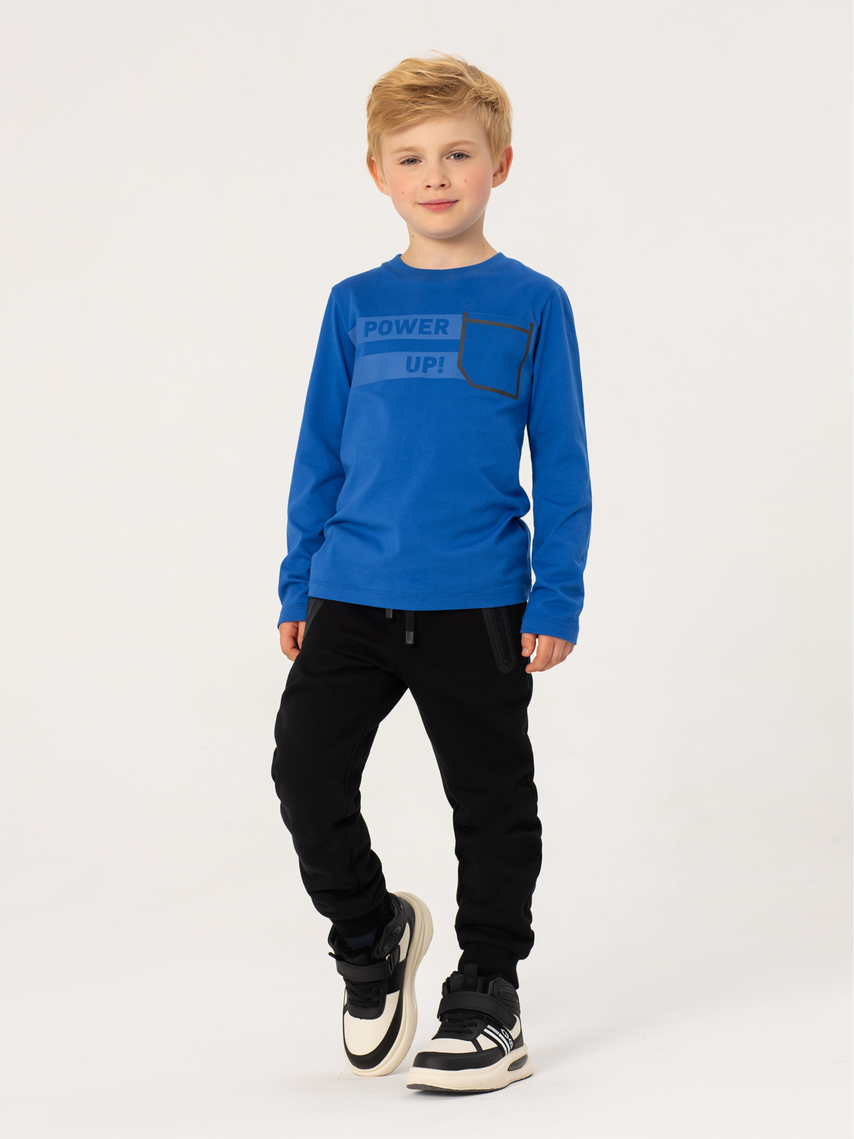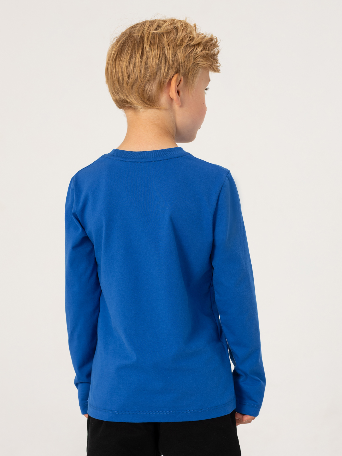 Стильный лонгслив для мальчиков насыщенного синего. Модель украшена крупным ярким принтом на груди, который делает образ запоминающимся. Практичный нагрудный карман с контрастной отделкой позволяет хранить мелкие предметы. Изделие выполнено из натурального 100% хлопка, который обеспечивает комфорт при носке и отличную воздухопроницаемость. Лонгслив отлично подойдёт для повседневной носки, сочетаясь с любой одеждой.