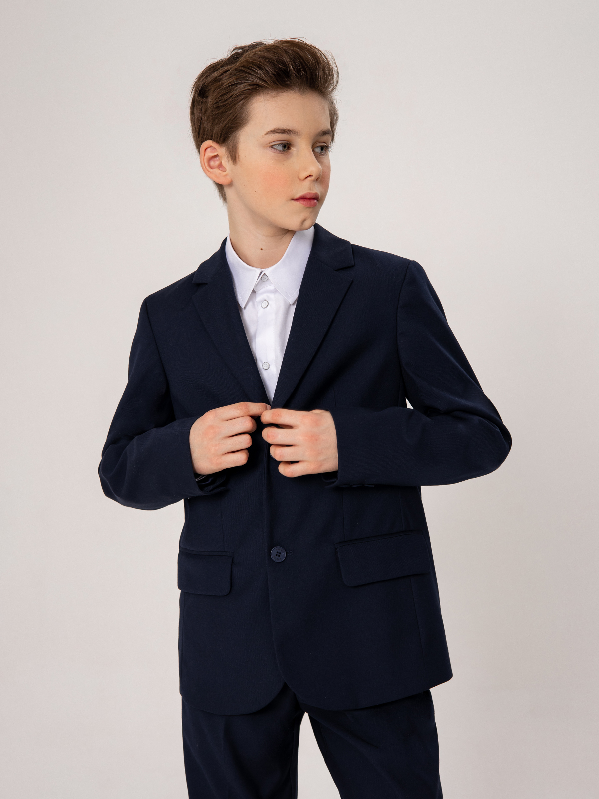 Однобортный пиджак для школы выполнен из гладкой костюмной ткани. Материал формоустойчив, приятен тактильно, не скатывается, прост в уходе и эксплуатации. Пиджак имеет мягкую шелковистую подкладку из поливискозы, создающую комфортное скольжение при взаимодействии с изделиями первого слоя.