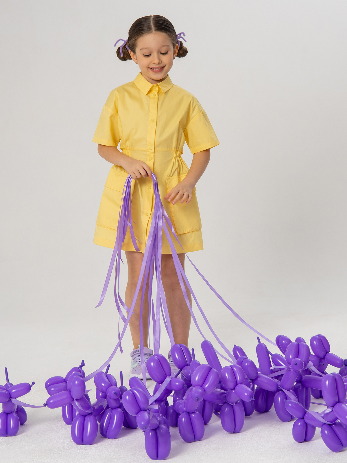 Платье с карманами для девочек — практичный и стильный повседневный фаворит, сочетающий нежный дизайн с удобством. А-силуэт с отрезной талией гарантирует свободу движений. Отложной воротник добавляет изысканности и аккуратно обрамляет шею, короткие рукава не стесняют движения рук, отрезная спинка предотвращает перегрев, фронтальная застежка на кнопки облегчает самостоятельное надевание, а объемные карманы вмещают полезные мелочи.