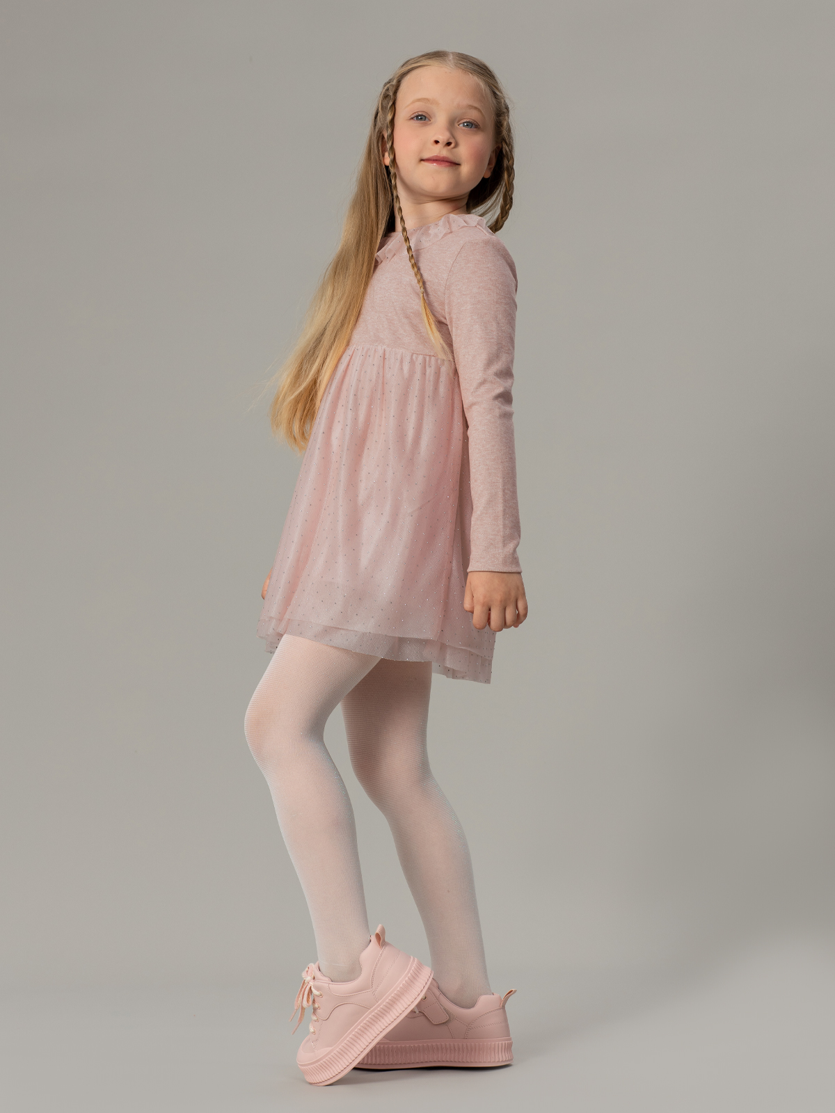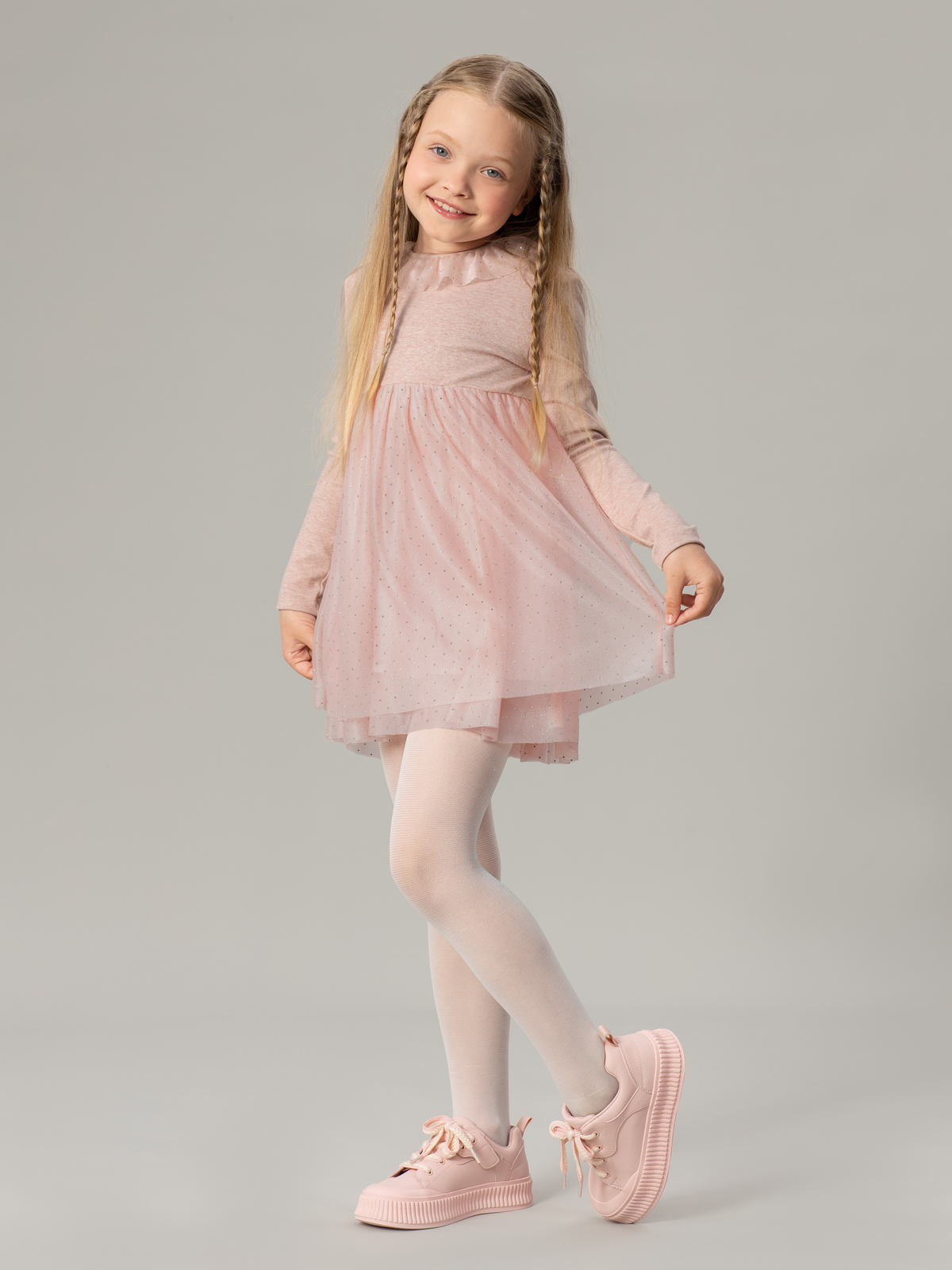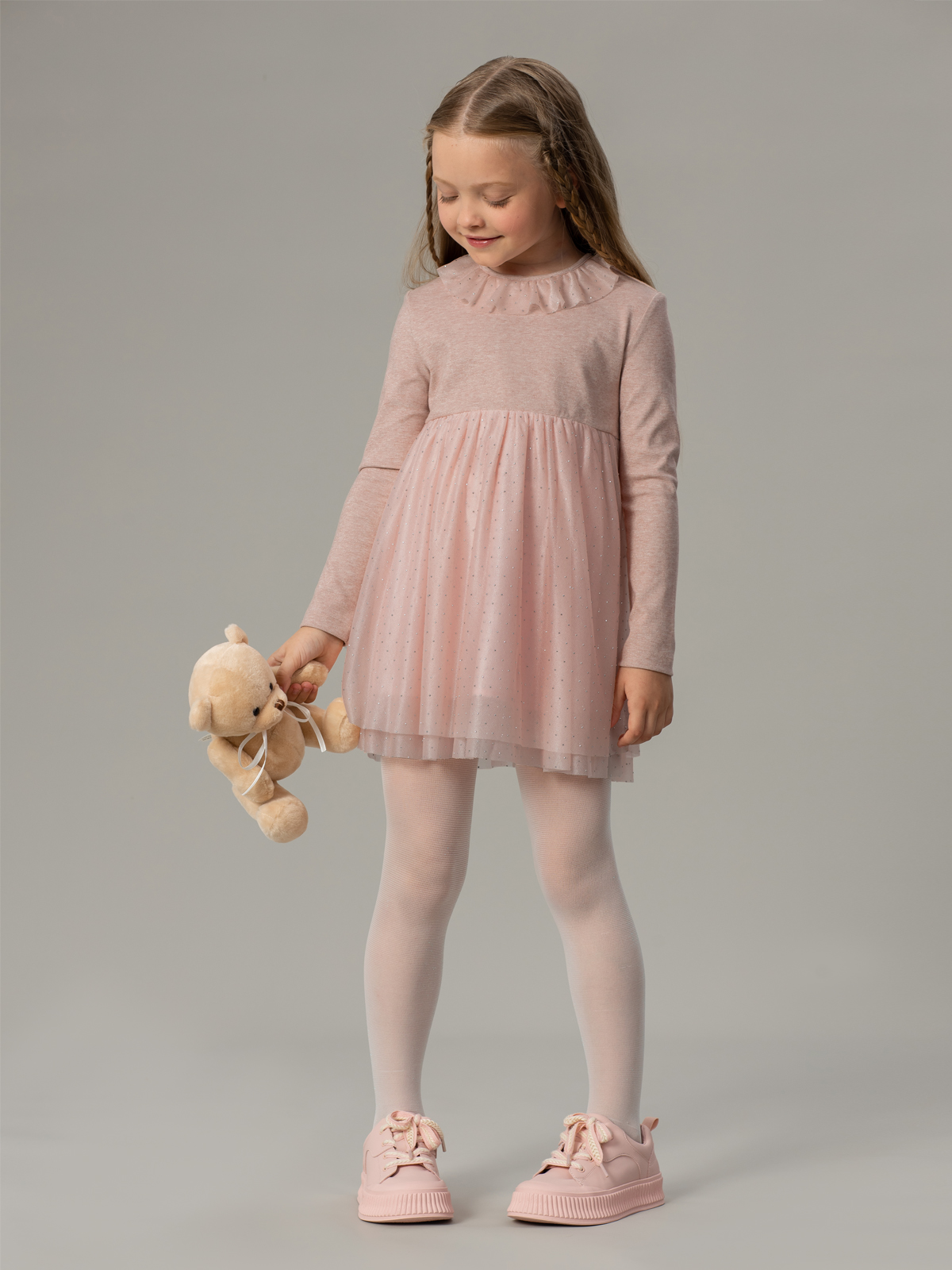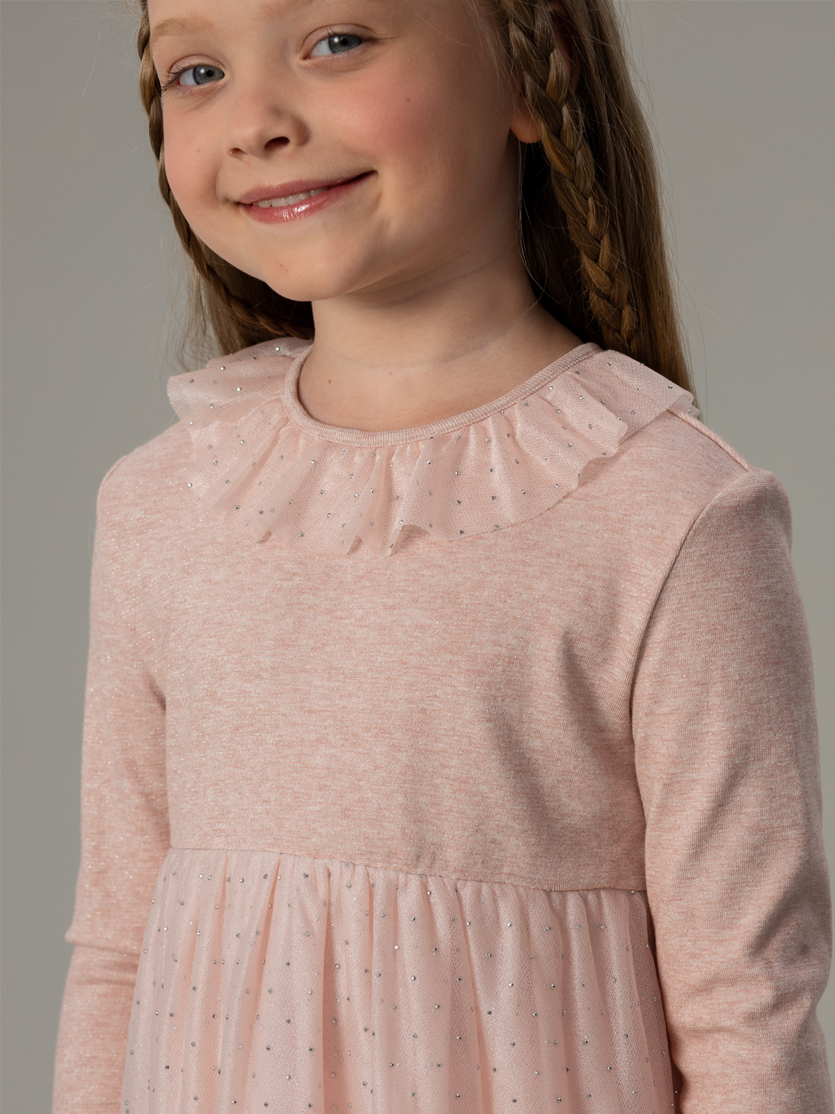 Изящное розовое платье для девочек, создающее атмосферу легкости и воздушности. Главная особенность модели — элегантная верхняя юбка из воздушной сетки, которая придаёт образу особую невесомость и романтичность. Основная ткань платья представляет собой изысканное сочетание вискозы, полиэстера и люрекса. Вискоза дарит мягкость и приятные тактильные ощущения, полиэстер гарантирует прочность, а люрекс добавляет деликатный блеск. Юбка платья украшена стразами, которые создают мерцающий эффект и добавляют образу торжественность. Свободный силуэт платья обеспечивает комфорт и свободу движений, делая платье универсальным и подходящим как для повседневной носки, так и для особых случаев.
