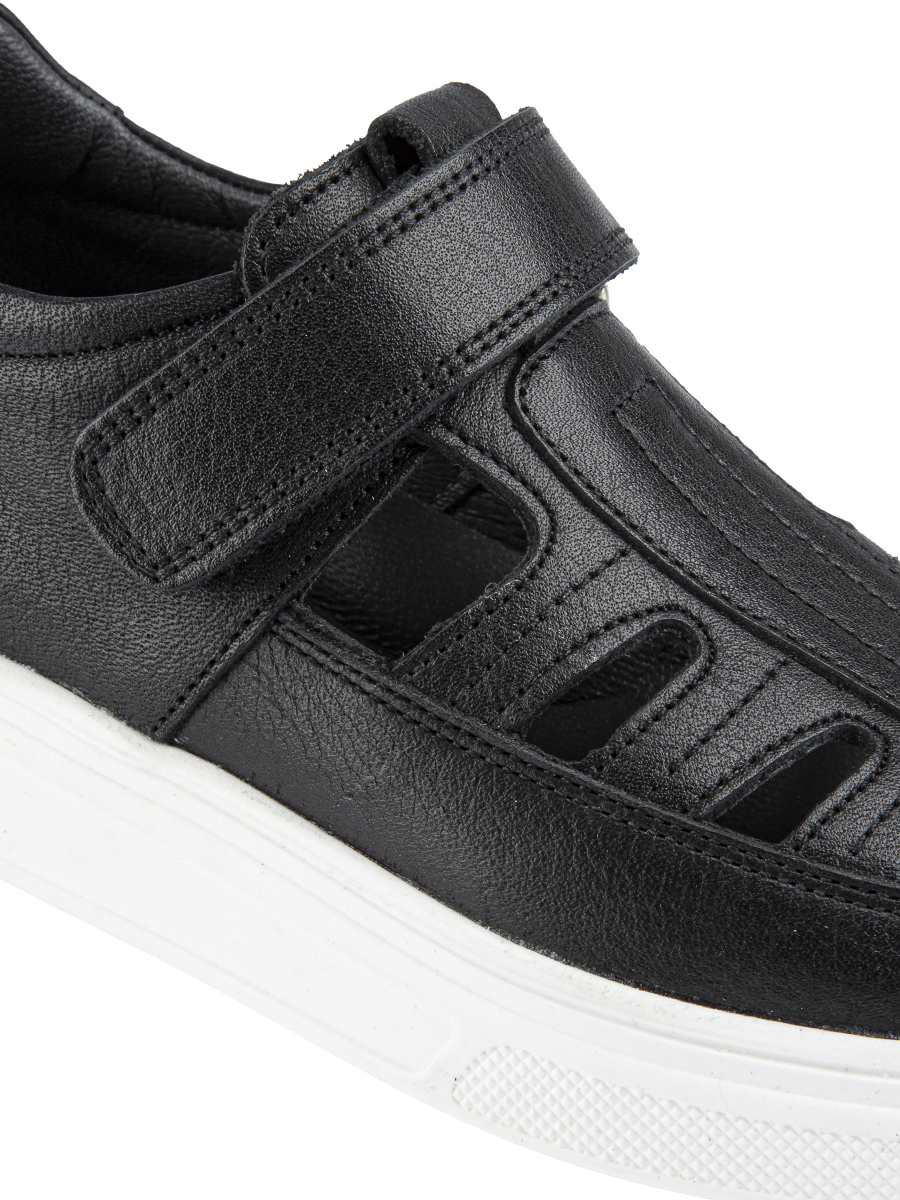 Повседневные полуботинки для мальчика из натуральной кожи обеспечивают правильную циркуляцию воздуха, а наличие подсводника и жёсткого задника создает дополнительный комфорт. Липучка ускоряет и облегчает процесс обувания. Подошва из гибкого износостойкого материала ТЭП.
