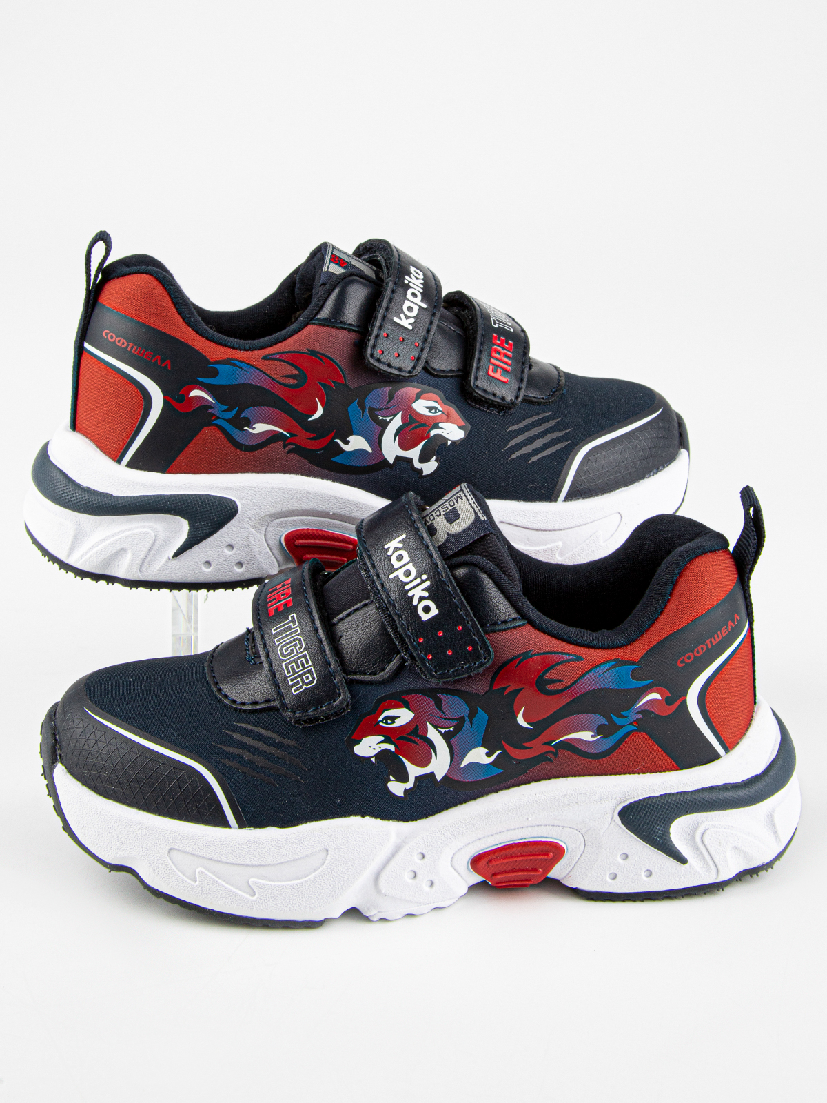 Кроссовки изготовлены из водоотталкивающего материала софтшелл, что обеспечивает надёжную защиту в различных погодных условиях. Они также хорошо подходят для спорта и активного образа жизни. Подошвы из ЭВА и ТЭП лёгкие и пружинистые, что добавляет комфорта и позволяет быстро и уверенно двигаться. Верх кроссовок изготовлен из материала, который обеспечивает вентиляцию, сохраняя оптимальную температуру внутри обуви и удобство в течение всего дня. Прочные резиновые детали на подошве и укреплённая конструкция в передней части гарантируют долговечность, а кожаная антибактериальная стелька эффективно поглощает влагу и неприятные запахи, уменьшая давление на стопу.