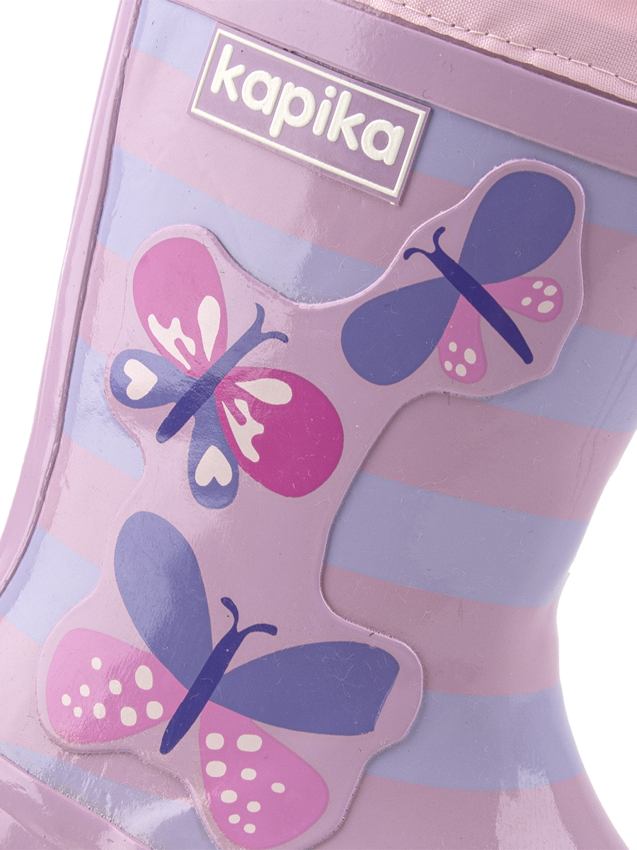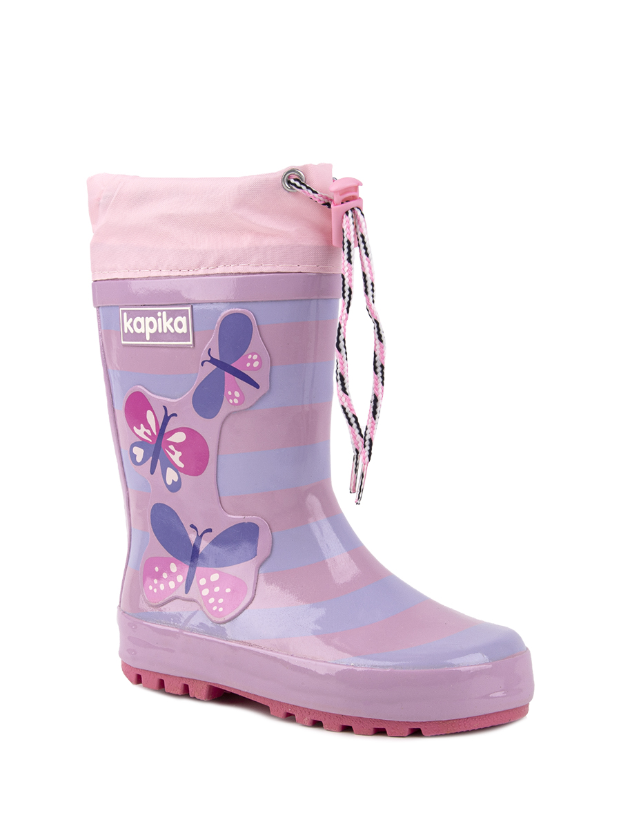 Резиновые сапожки сохранят ножки сухими в дождливую погоду. Интересный принт не оставит никого равнодушным и обязательно обратит на себя внимание. Модель оснащена манжетом с кулиской, которую можно затянуть по ножке и внутрь не попадёт ни одна капелька дождя. Внутри сапожек текстильная подкладка и выемная стелька, которую можно почистить и просушить при необходимости.