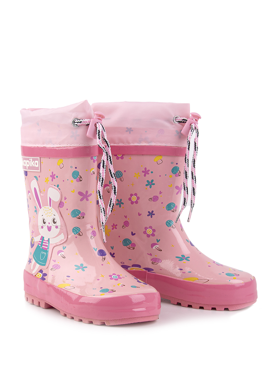 Резиновые сапожки сохранят ножки сухими в дождливую погоду. Интересный принт не оставит никого равнодушным и обязательно обратит на себя внимание. Модель оснащена манжетом с кулиской, которую можно затянуть по ножке и внутрь не попадёт ни одна капелька дождя. Внутри сапожек текстильная подкладка и выемная стелька, которую можно почистить и просушить при необходимости.
