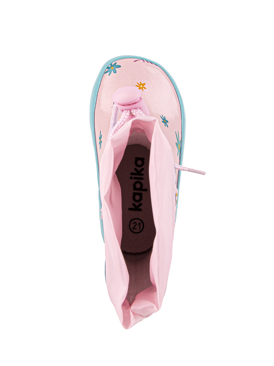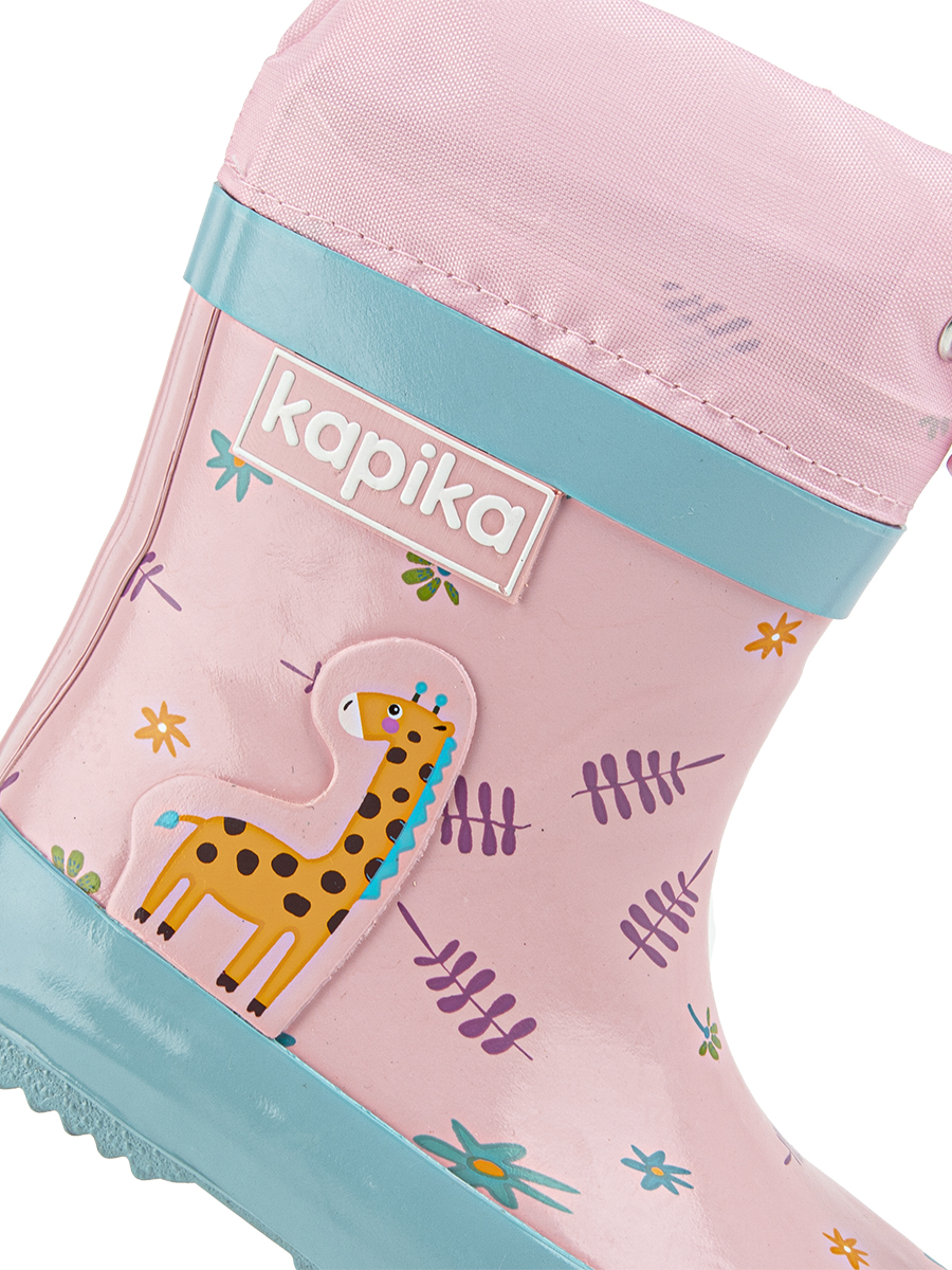 Резиновые сапожки сохранят ножки сухими в дождливую погоду. Интересный принт не оставит никого равнодушным и обязательно обратит на себя внимание. Модель оснащена манжетом с кулиской, которую можно затянуть по ножке и внутрь не попадёт ни одна капелька дождя. Внутри сапожек текстильная подкладка и выемная стелька, которую можно почистить и просушить при необходимости.
