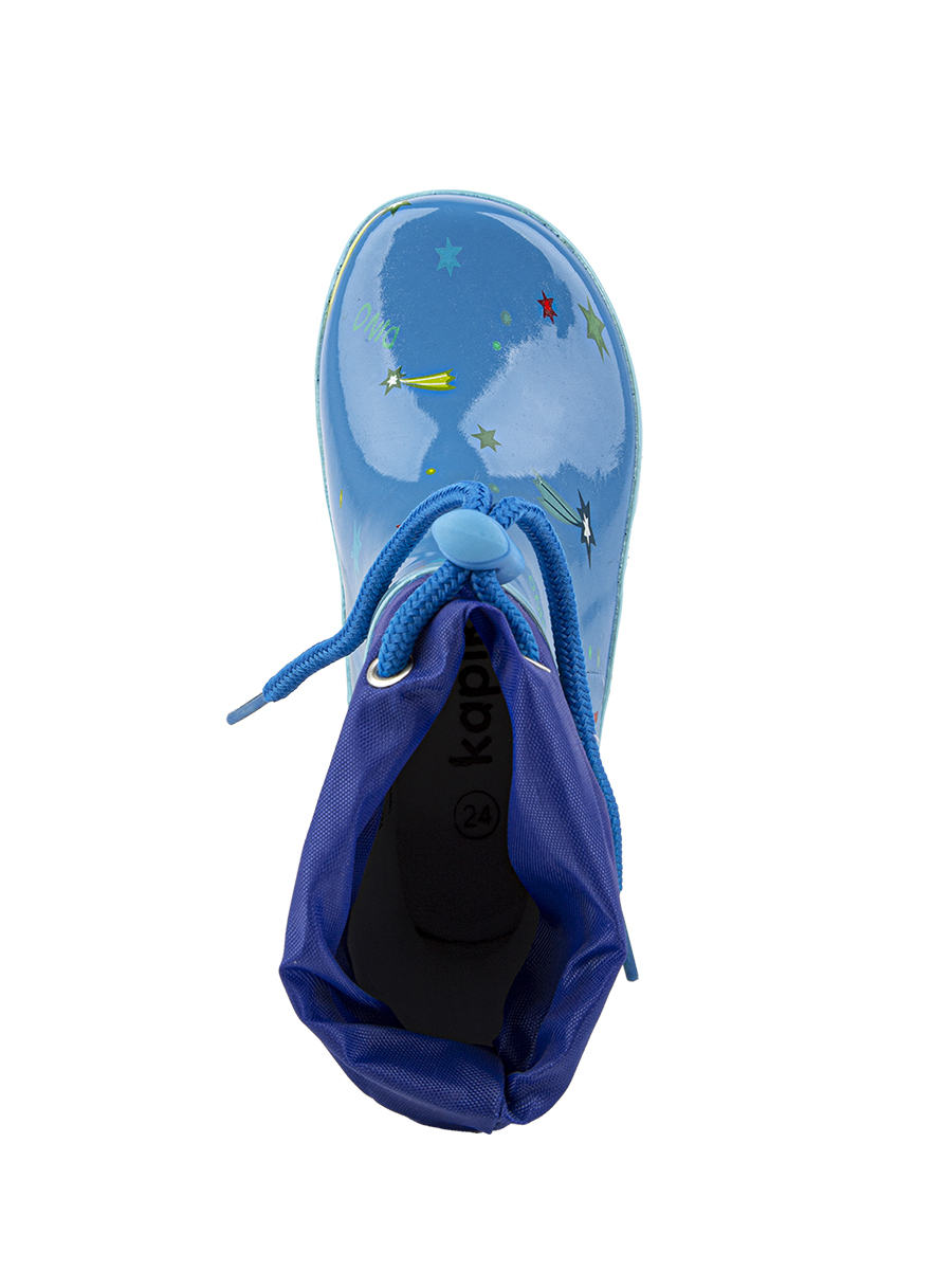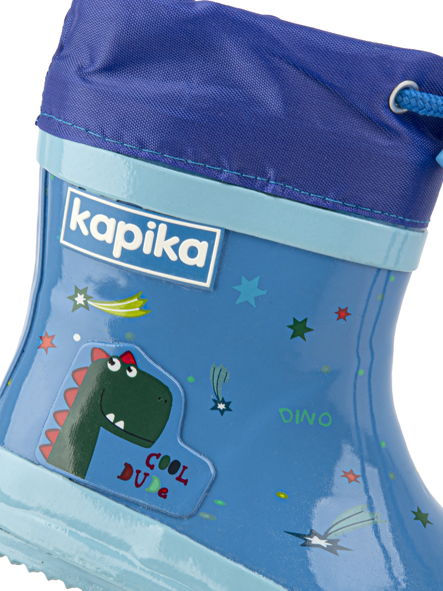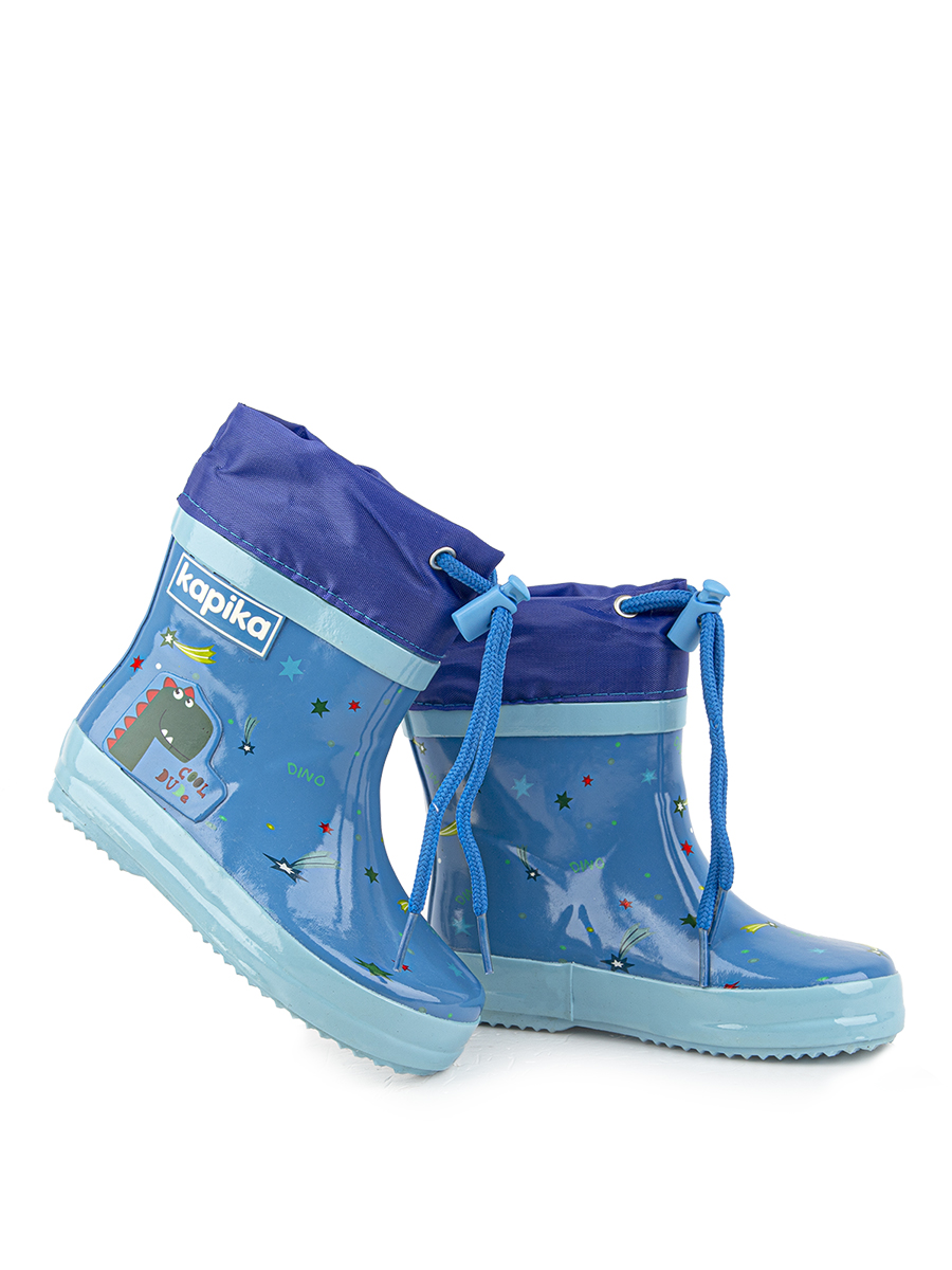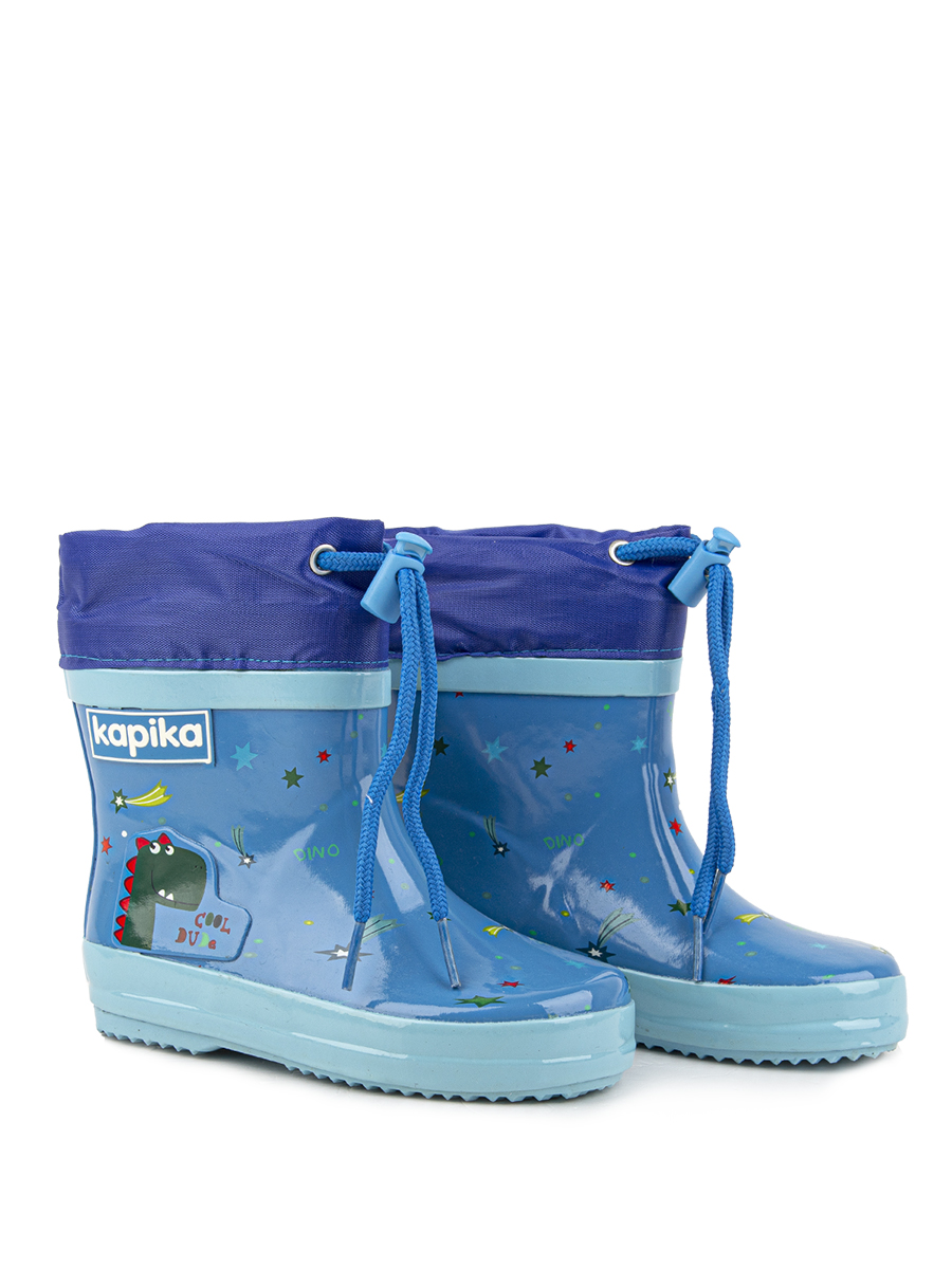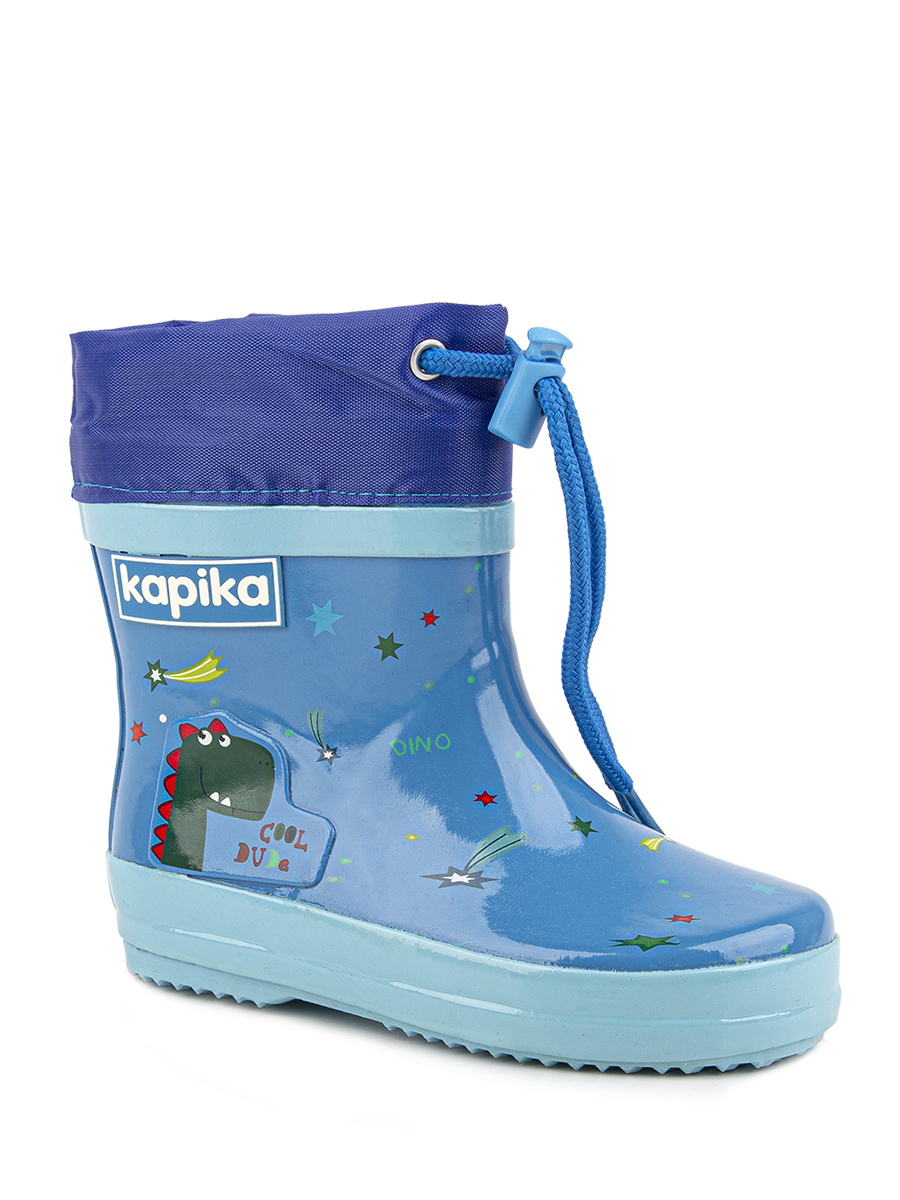 Резиновые сапожки сохранят ножки сухими в дождливую погоду. Насыщенный цвет и веселый принт привлекут внимание каждого мальчишки. Модель оснащена манжетом с кулиской, которую можно затянуть по ножке и внутрь не попадёт ни одна капелька дождя. Внутри сапожек текстильная подкладка и выемная стелька, которую можно почистить и просушить при необходимости.