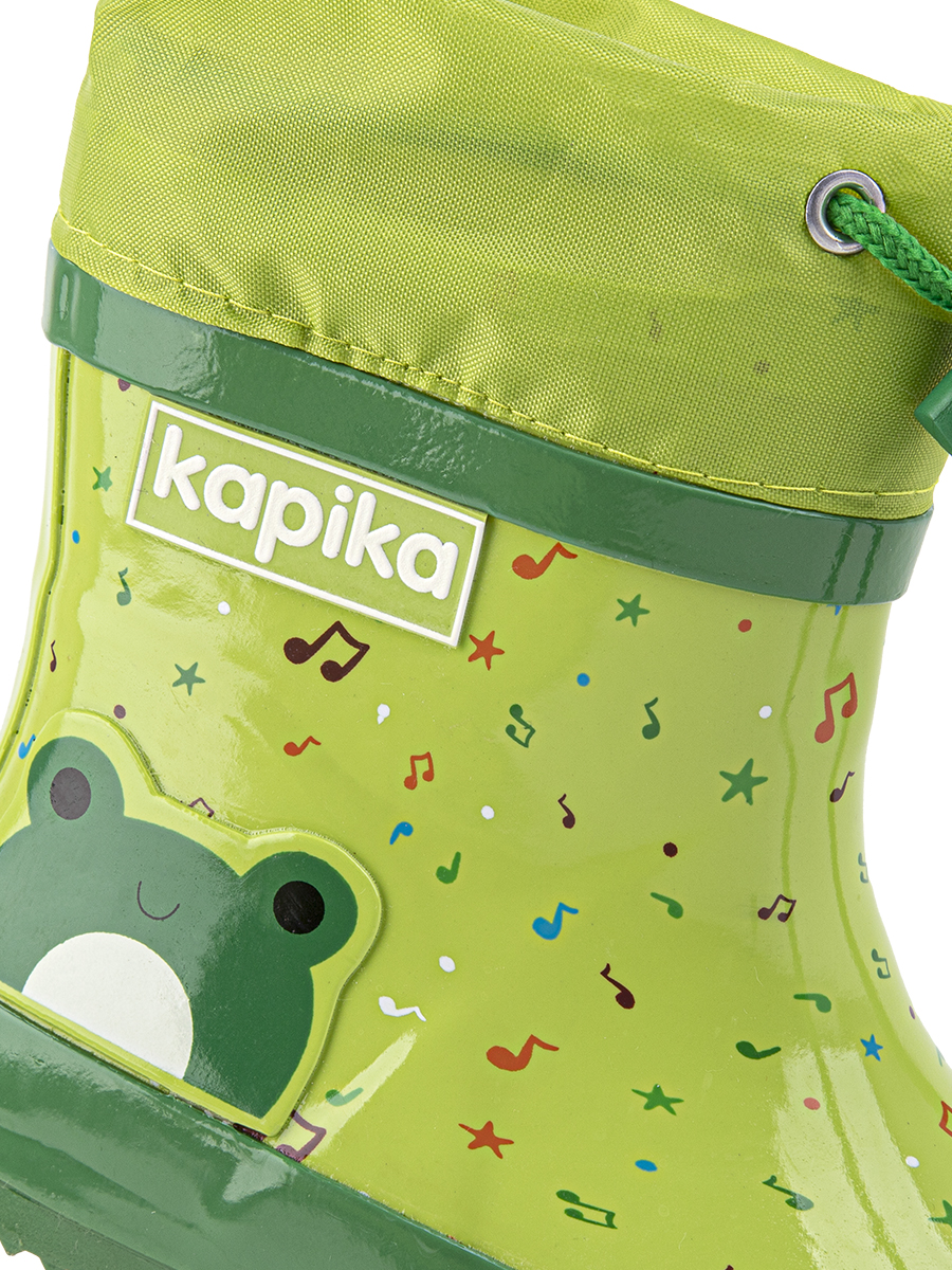 Резиновые сапожки сохранят ножки сухими в дождливую погоду. Насыщенный цвет и веселый принт привлекут внимание каждого мальчишки. Модель оснащена манжетом с кулиской, которую можно затянуть по ножке и внутрь не попадёт ни одна капелька дождя. Внутри сапожек текстильная подкладка и выемная стелька, которую можно почистить и просушить при необходимости.