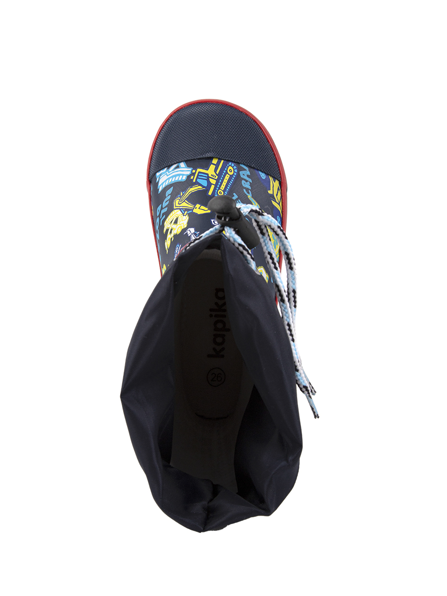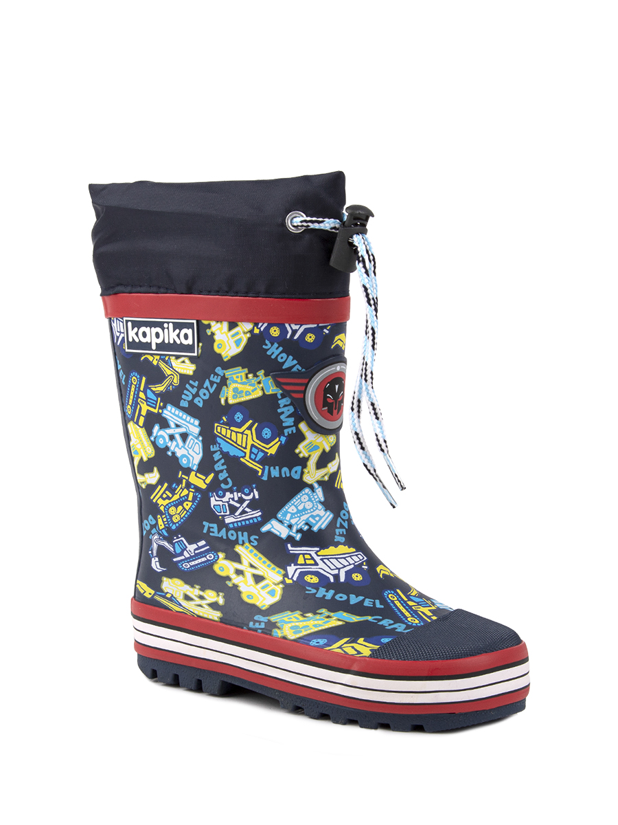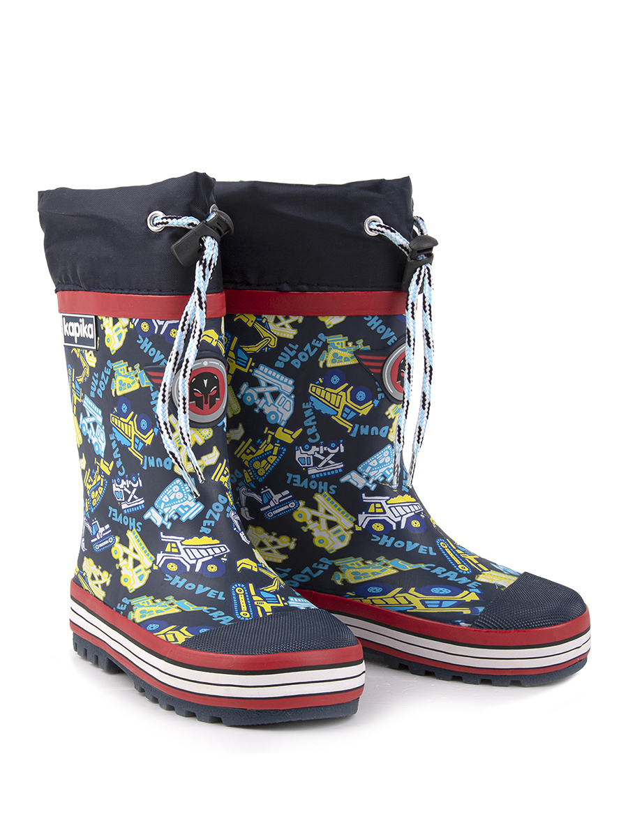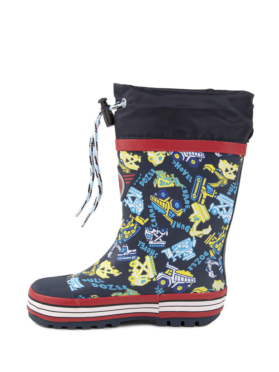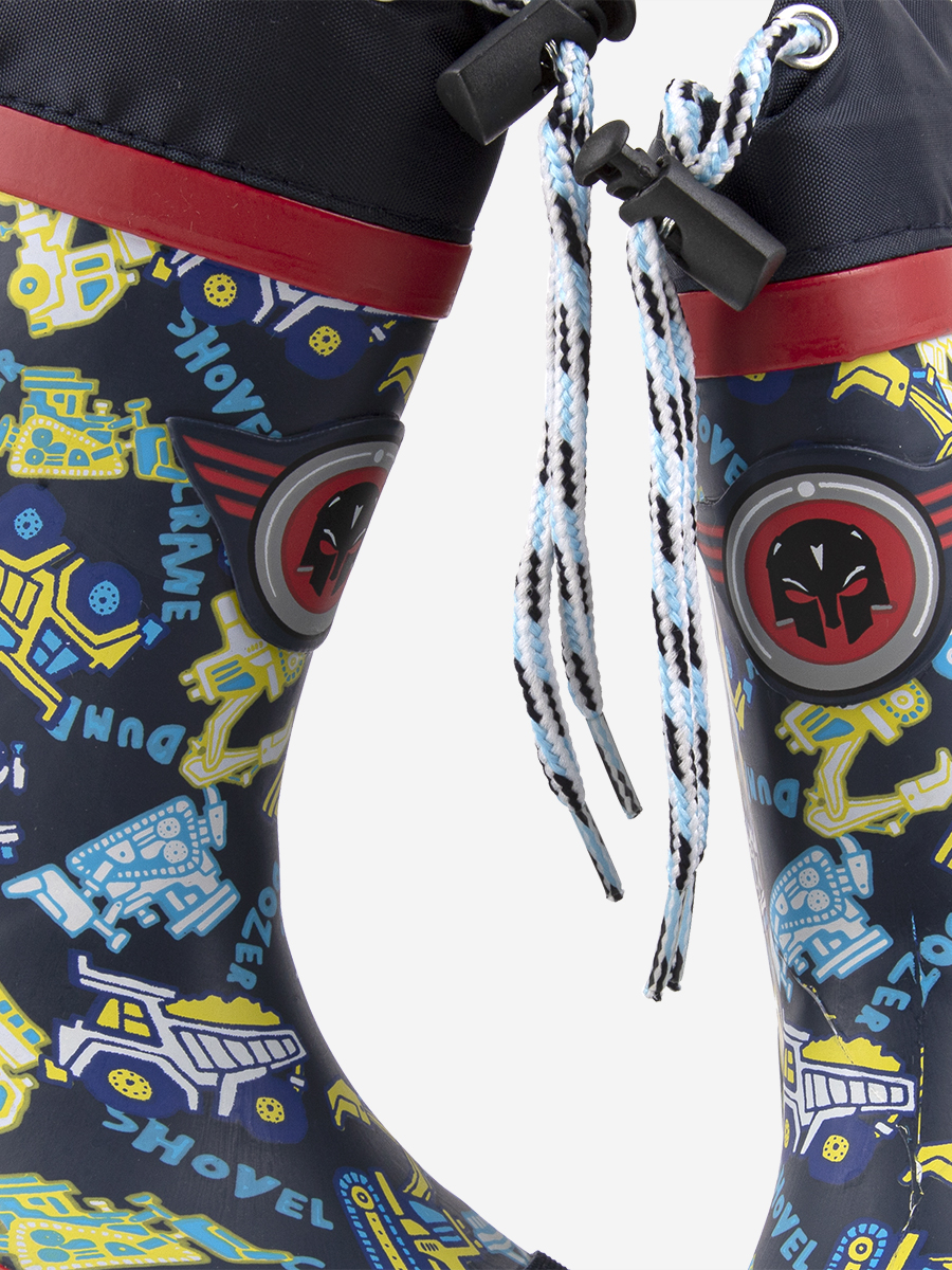 Резиновые сапожки сохранят ножки сухими в дождливую погоду. Насыщенный цвет и веселый принт привлекут внимание каждого мальчишки. Модель оснащена манжетом с кулиской, которую можно затянуть по ножке и внутрь не попадёт ни одна капелька дождя. Внутри сапожек текстильная подкладка и выемная стелька, которую можно почистить и просушить при необходимости.