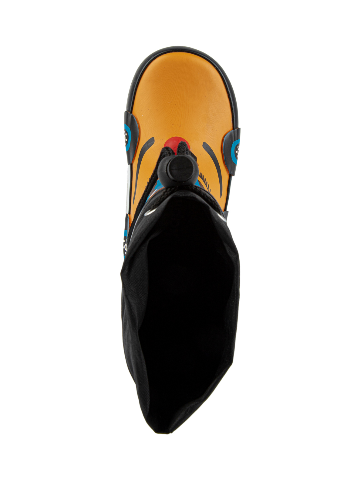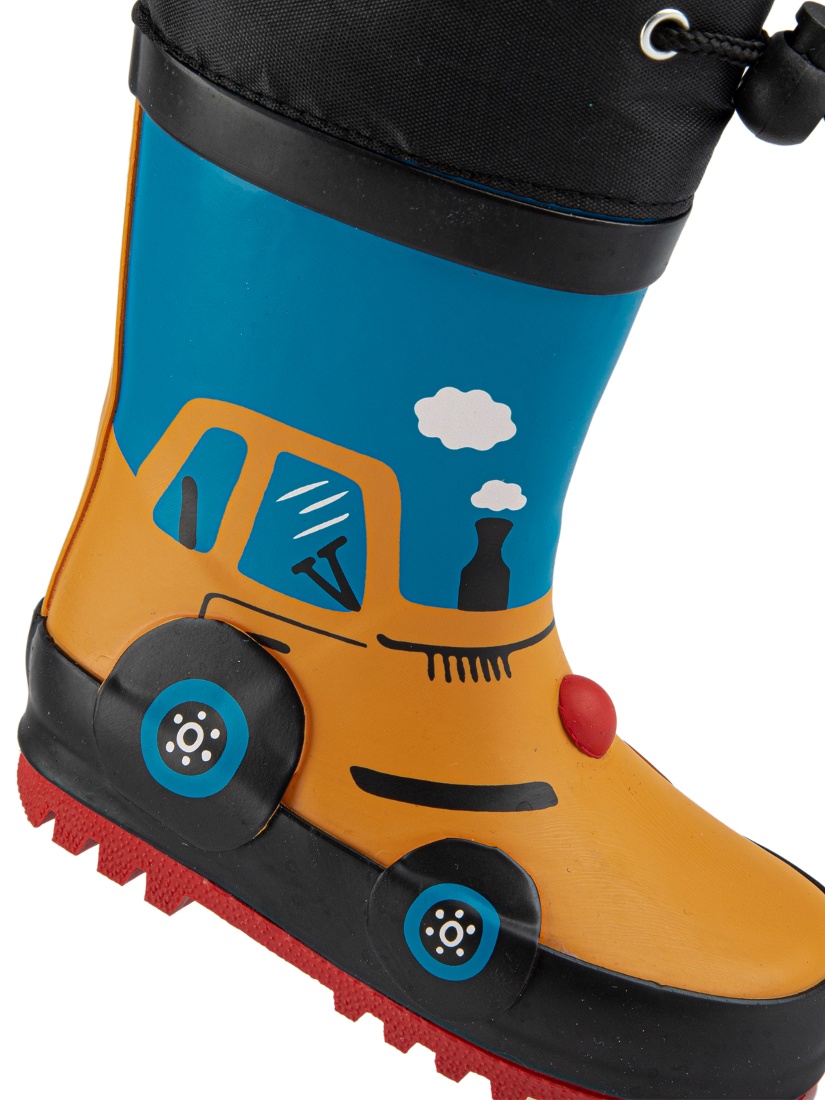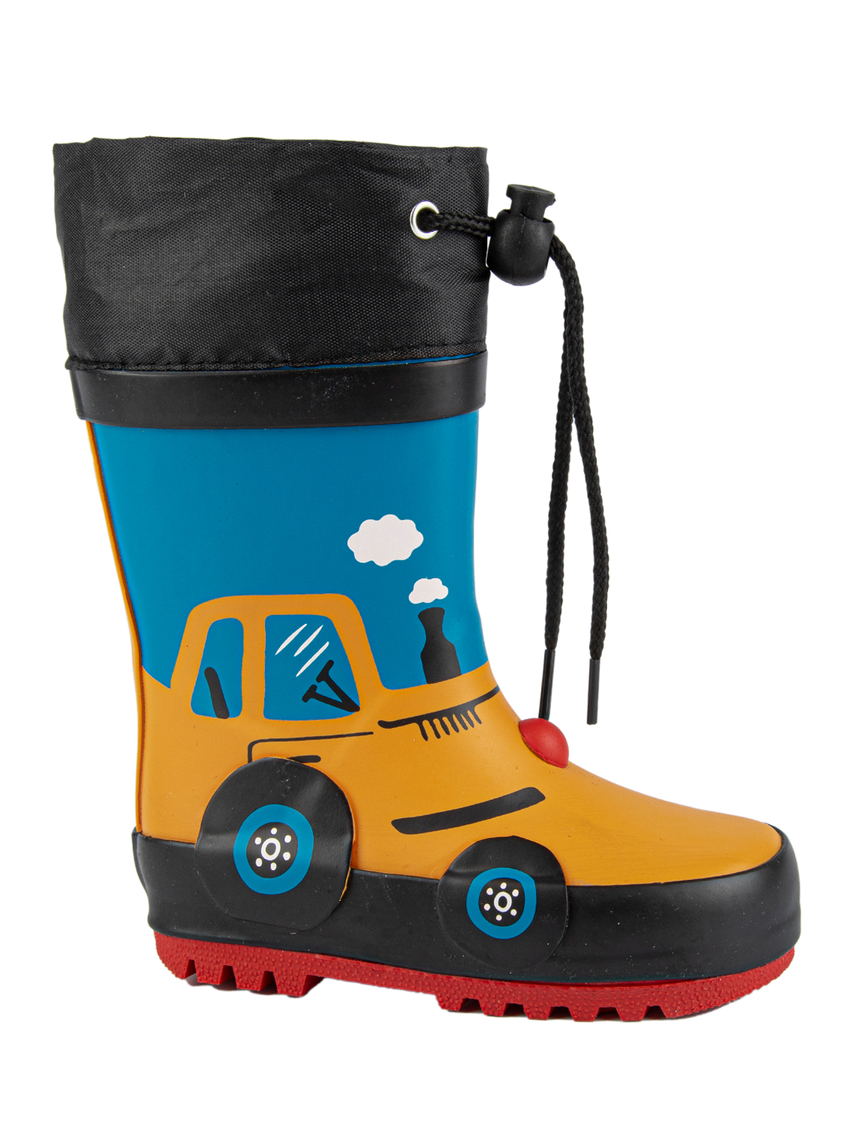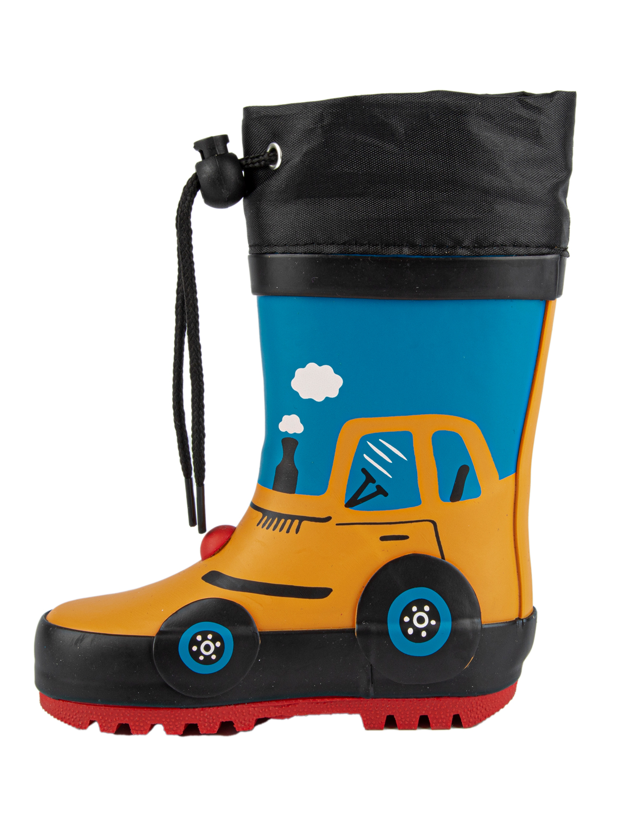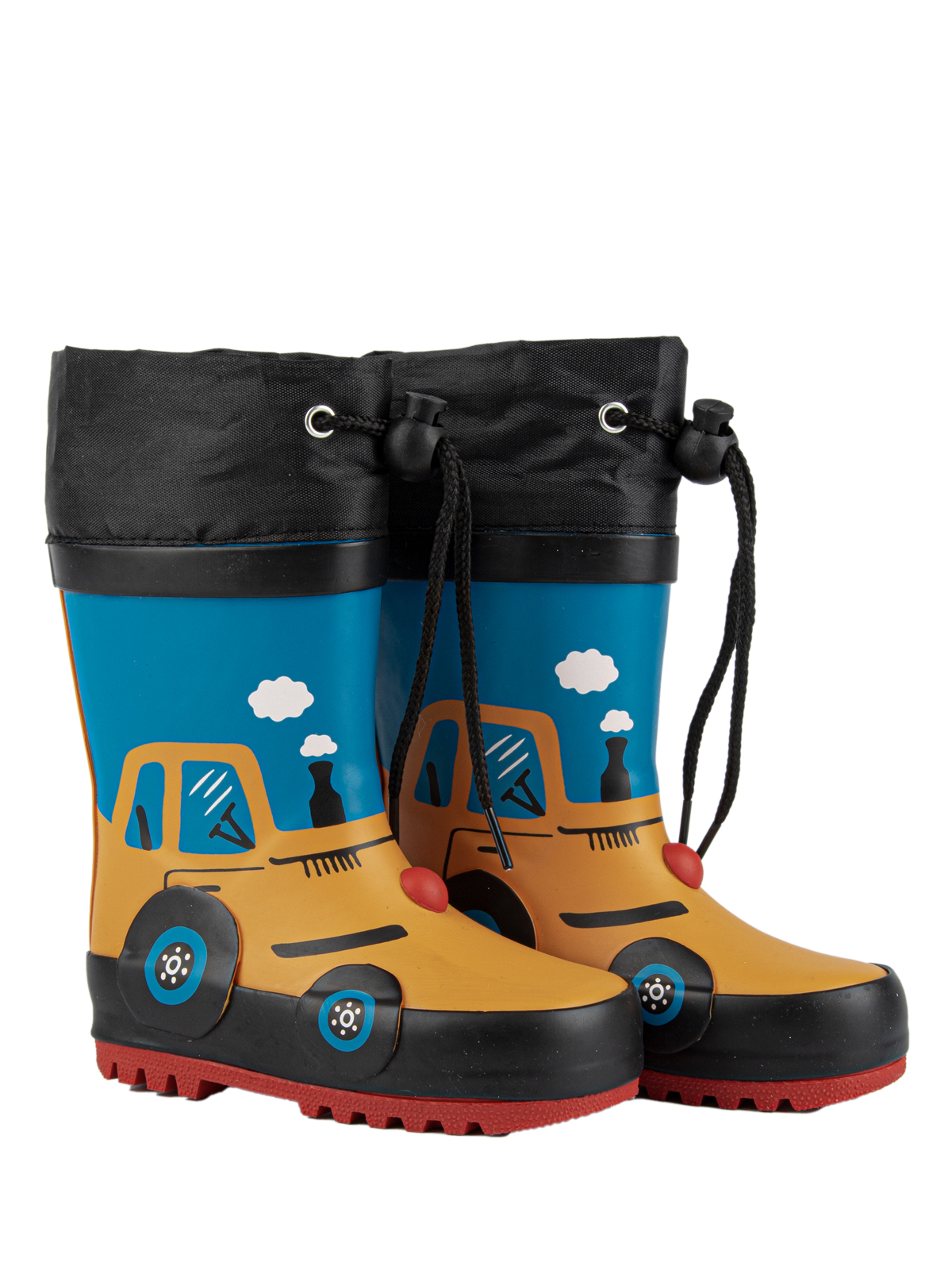 Резиновые сапожки сохранят ножки сухими в дождливую погоду. Насыщенный цвет и веселый принт привлекут внимание каждого мальчишки. Модель оснащена манжетом с кулиской, которую можно затянуть по ножке и внутрь не попадёт ни одна капелька дождя. Внутри сапожек текстильная подкладка и выемная стелька, которую можно почистить и просушить при необходимости.