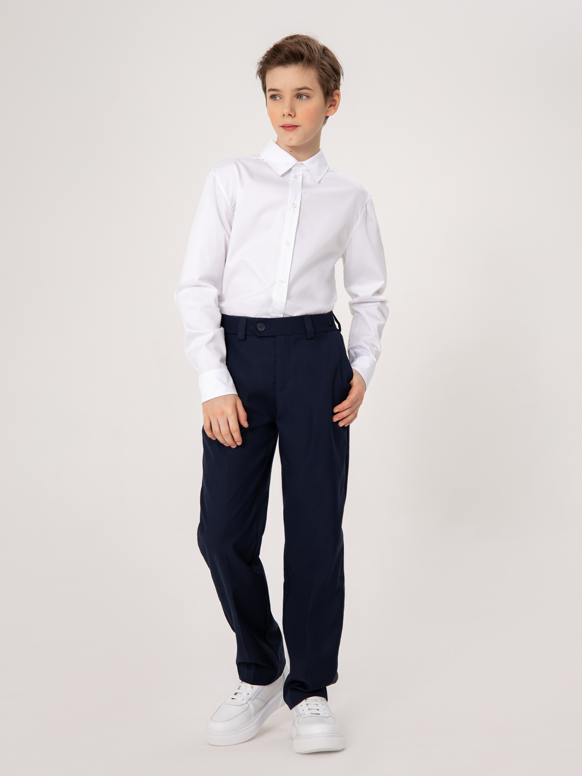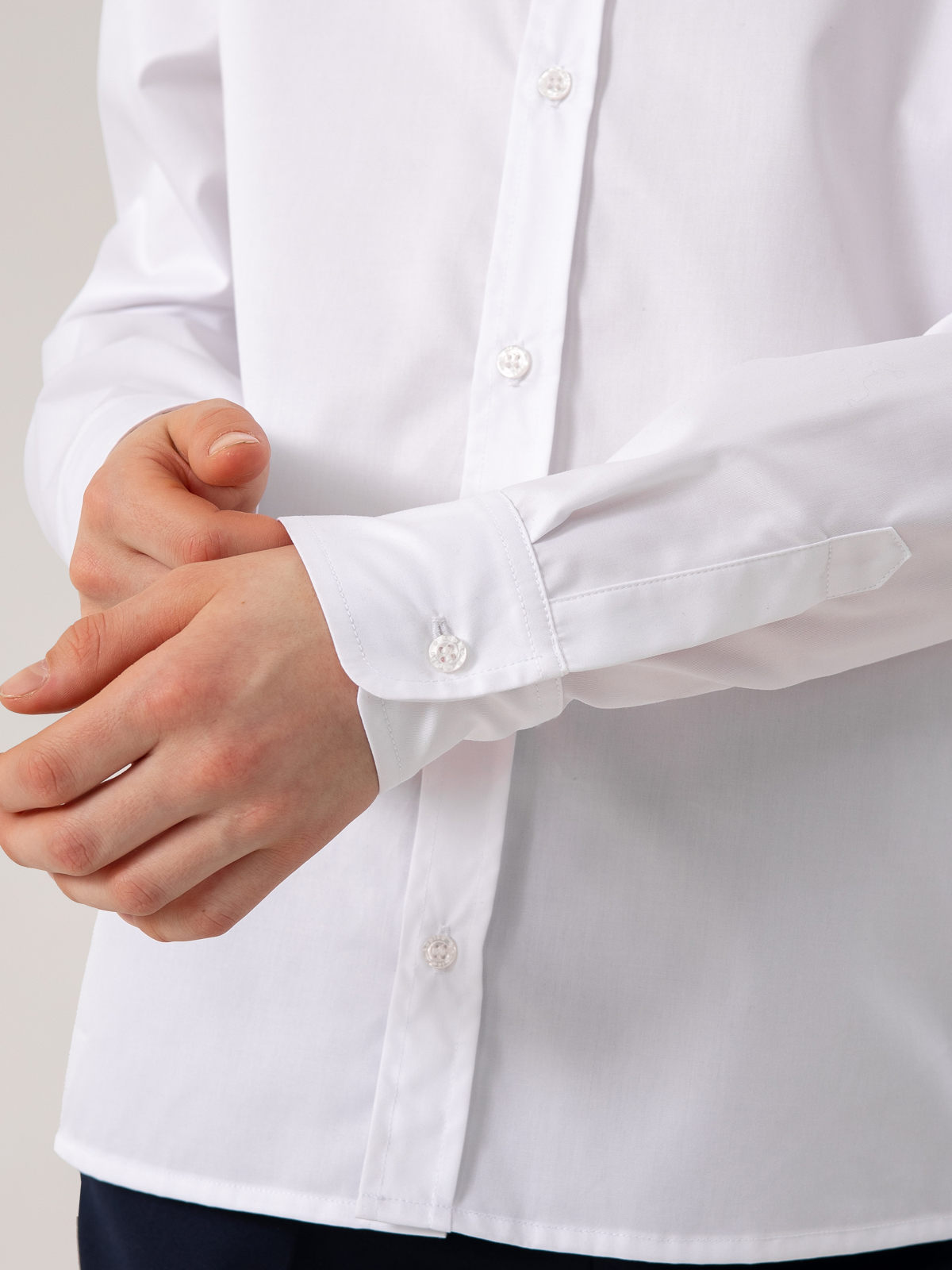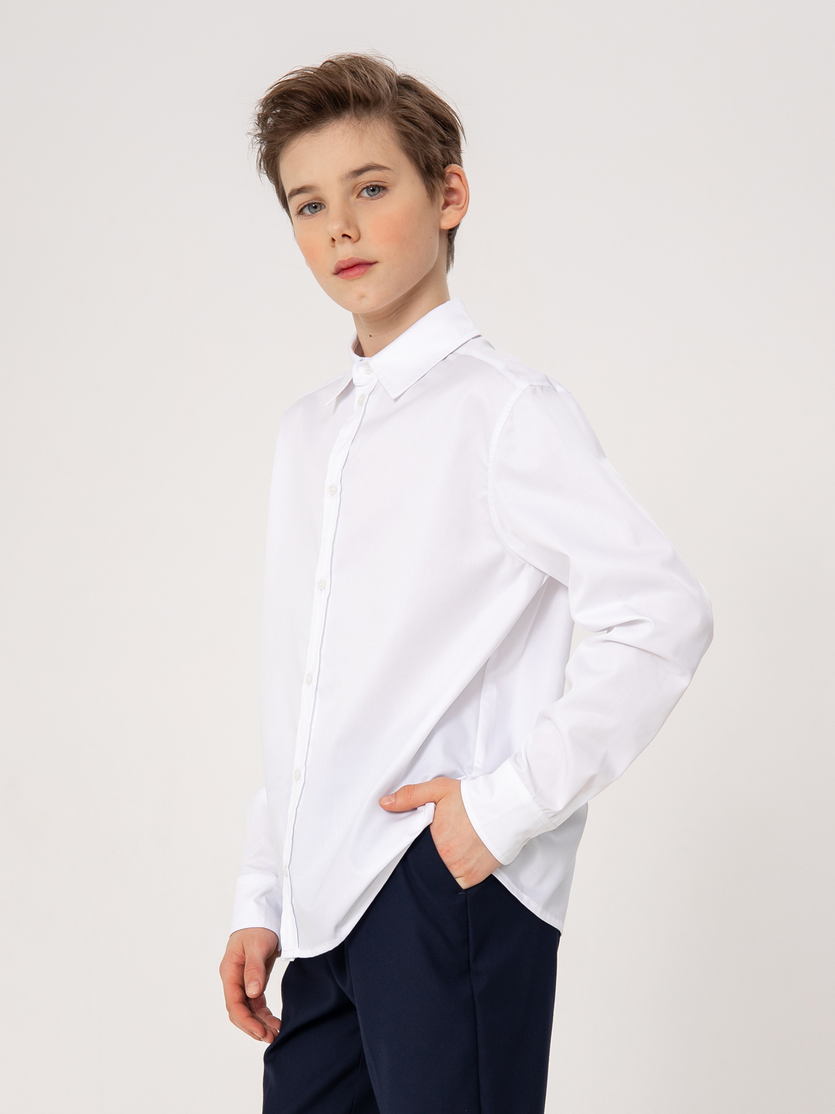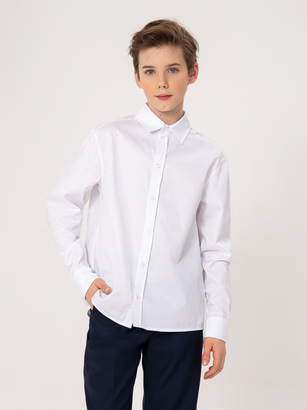Классическая рубашка с длинным рукавом расширенного силуэта комфорт выполнена из плотного хлопка. Ткань отлично держит форму, позволяет коже дышать, небольшое добавление полиэстра уменьшает сминаемость ткани и облегчает глажку. Застегивается на пуговицы.