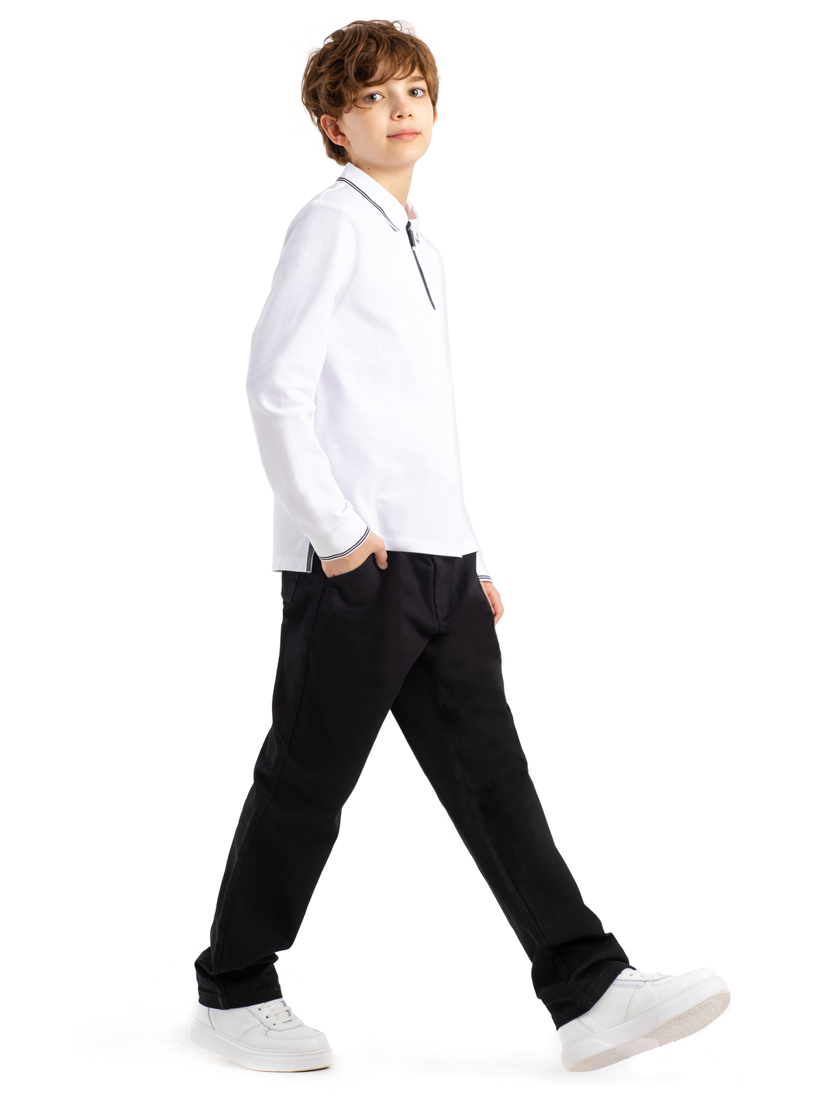 / Одежда для мальчиков / Футболки для мальчиков / MJBCL03-00 Рубашка-поло(белый) 134-170(134/140/146/152/158/164/170)