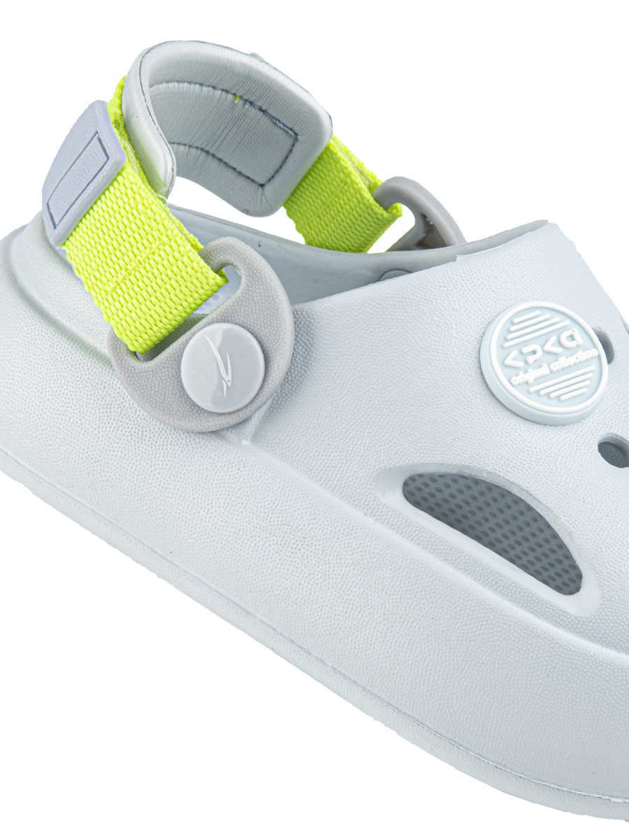 Пляжные сабо с современным дизайном, изготовленные из легкого и прочного материала ЭВА, станут незаменимы не только на пляже, но и на занятиях спортом в течение всего учебного года.