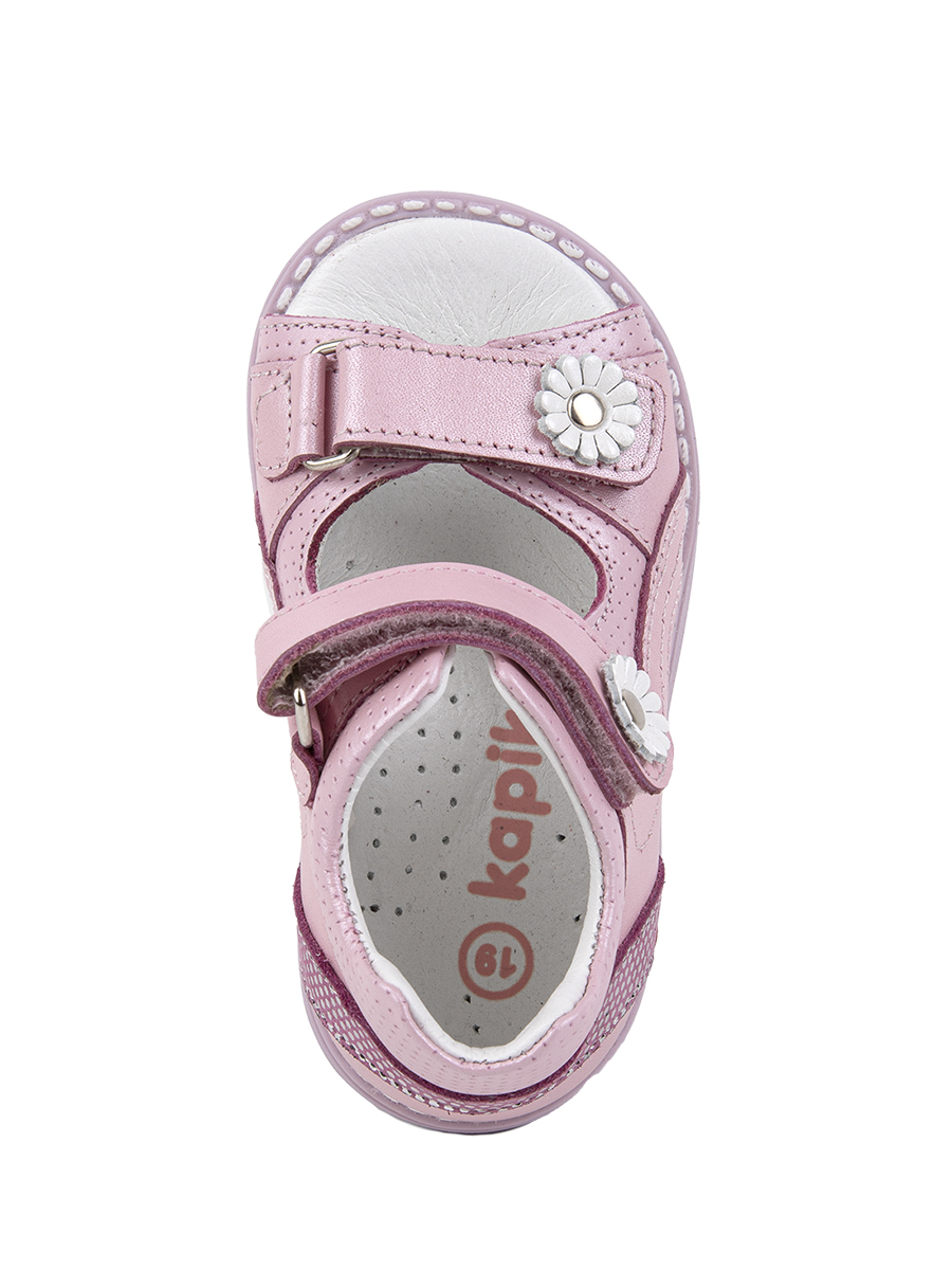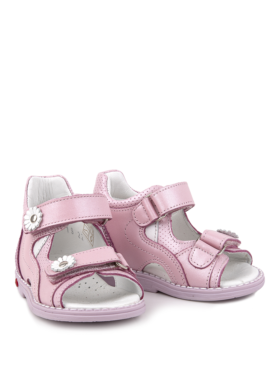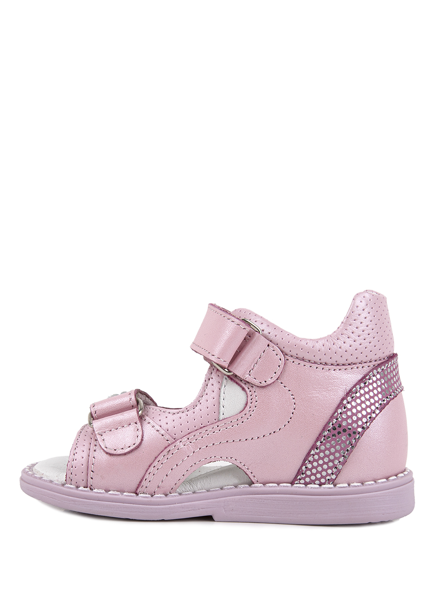 Кожаные босоножки на первый шаг удовлетворяют всем требованиям этой категории: жесткий задник, наличие подсводника и каблука Томаса обеспечивают правильную фиксацию стопы и профилактический эффект для всего опорно-двигательного аппарата. Застежки- липучки позволяют регулировать обувь по полноте. ТЭП подошва обеспечивает долговечность и гибкость, оставаясь при этом довольно легкой.