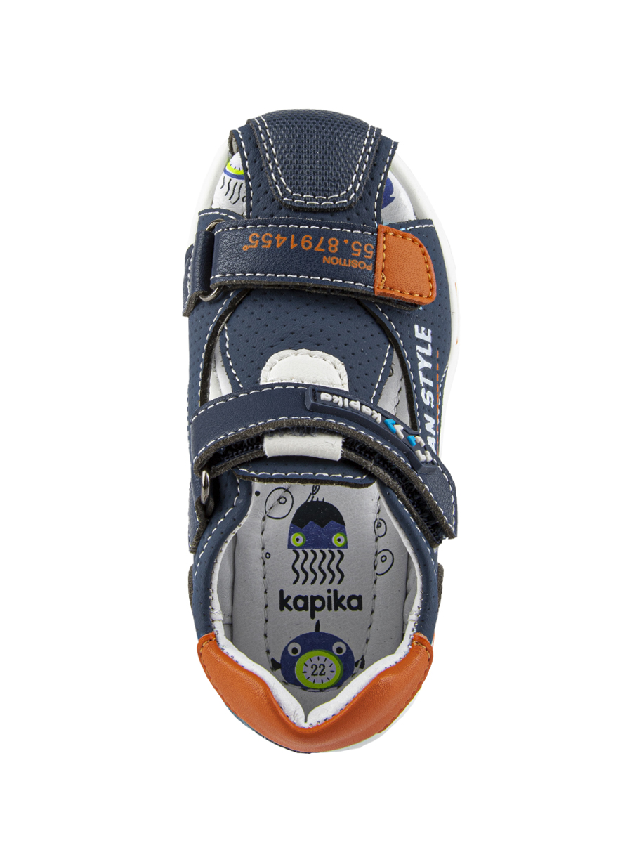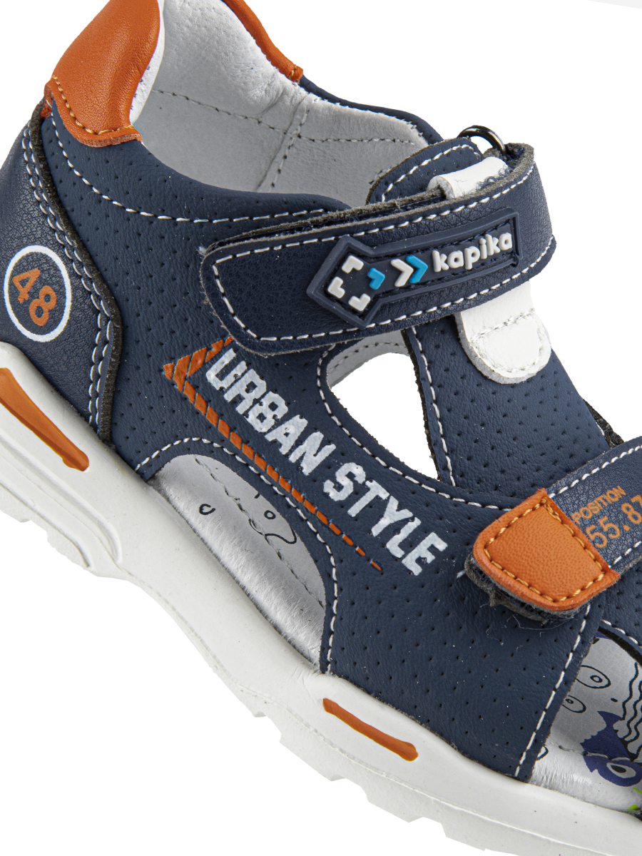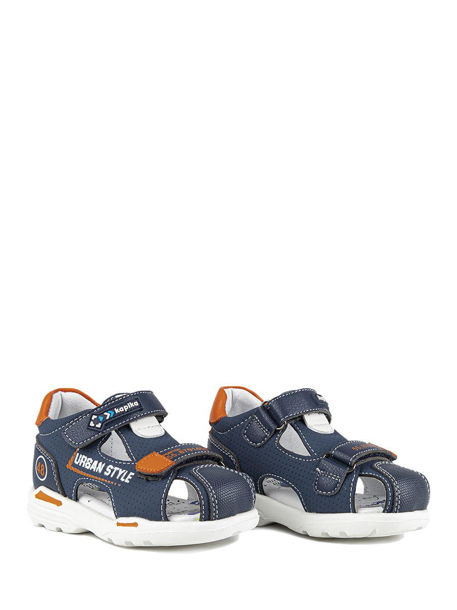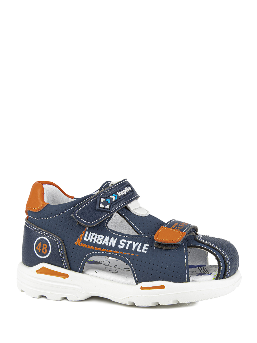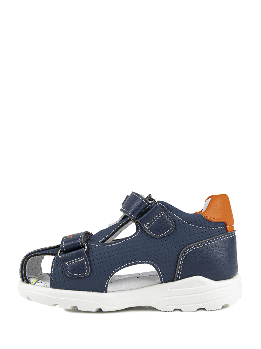 Закрытые сандалии для мальчика из искусственной кожи. Подкладка и стелька выполнены из натуральной кожи. Наличие жесткого задника и подсводника обеспечивает правильную фиксацию стопы и профилактический эффект для всего опорно-двигательного аппарата. Застежки- липучки позволяют регулировать обувь по полноте. Легкая и гибкая ЭВА подошва отлично амортизирует и создает дополнительный комфорт. Дополнительная защита на нос продлевает срок службы обуви.