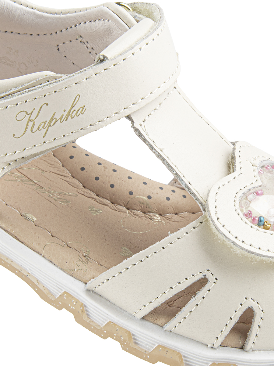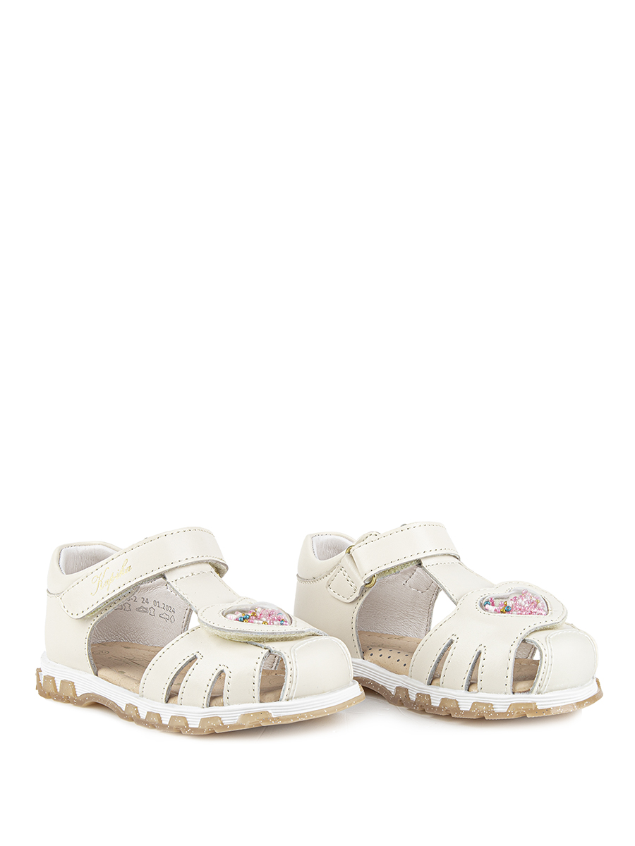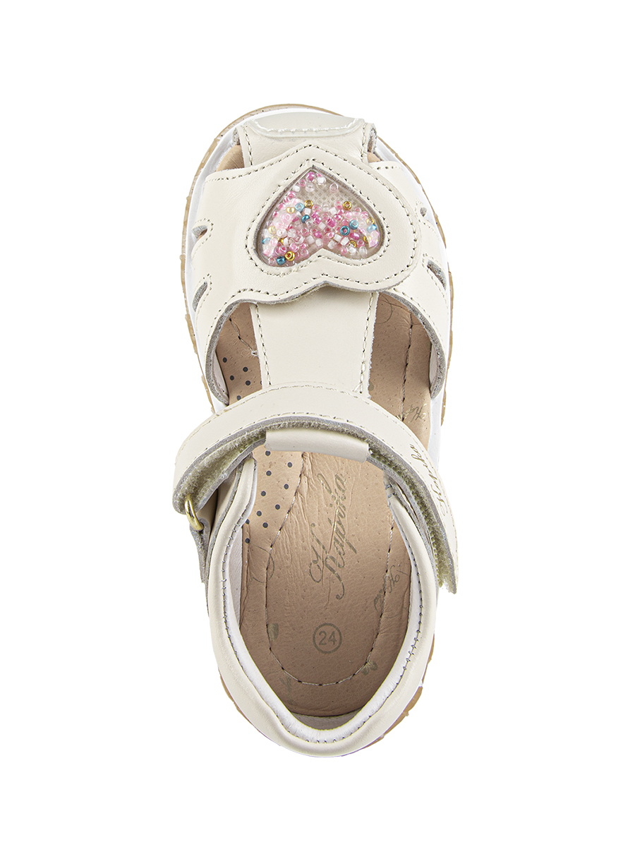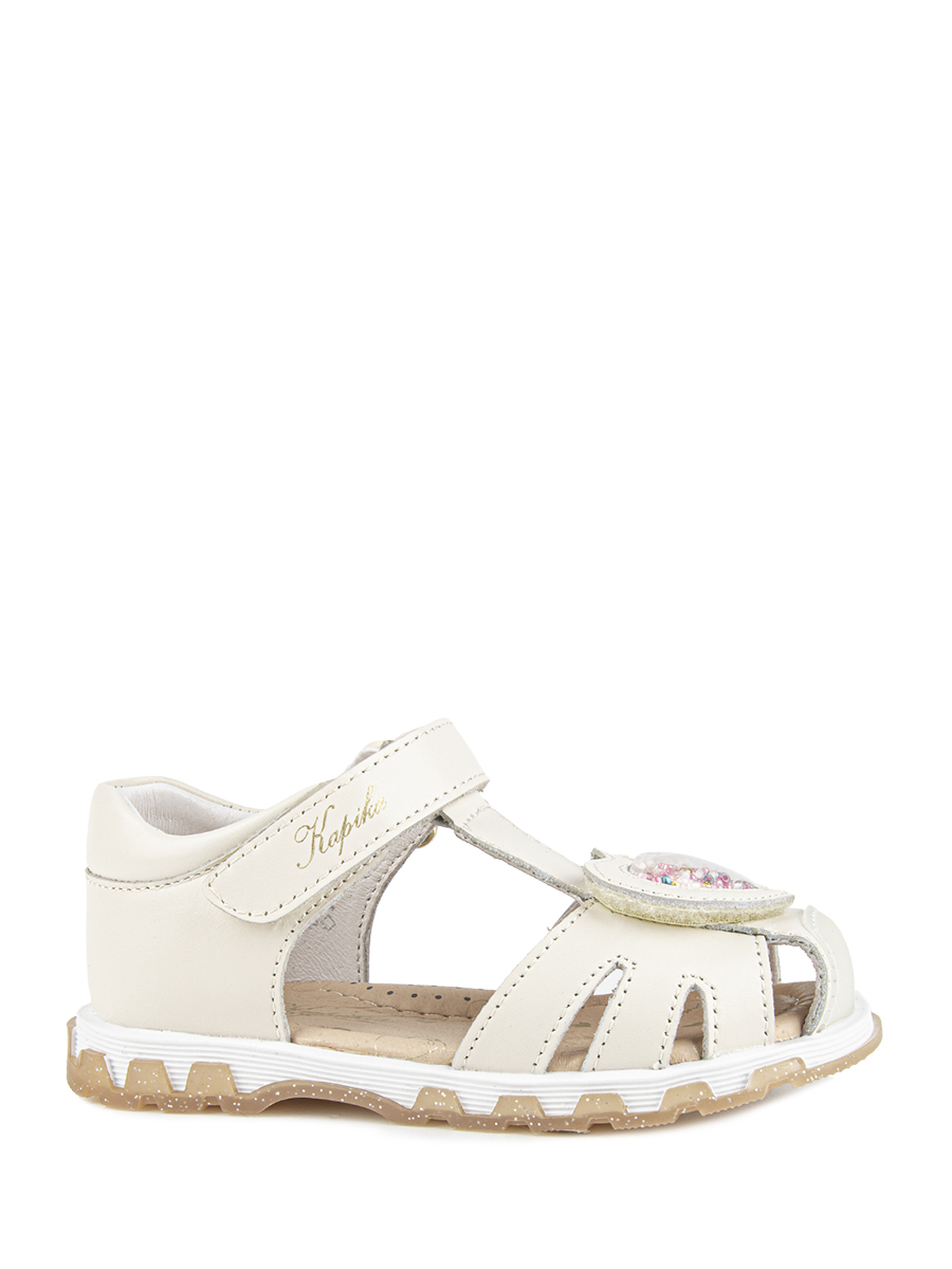 Сандалии для девочки изготовлены из натуральной кожи (верх, подкладка и стелька). Сандалии имеют жесткий задник и подсводник для поддержки и формирования правильной формы стопы. Подошва произведена из термопластичной резины (TPR), что обеспечивает долговечность и хорошее сцепление с поверхностью.