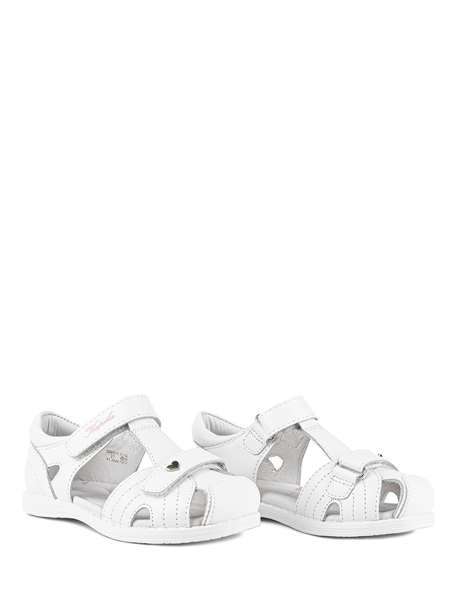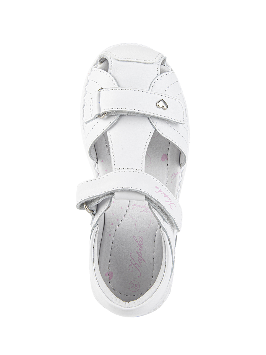 Сандалии для девочки изготовлены из натуральной кожи (верх, подкладка и стелька). Сандалии имеют жесткий задник и подсводник для поддержки и формирования правильной формы стопы. Подошва произведена из термопластичной резины (TPR), что обеспечивает долговечность и хорошее сцепление с поверхностью.
