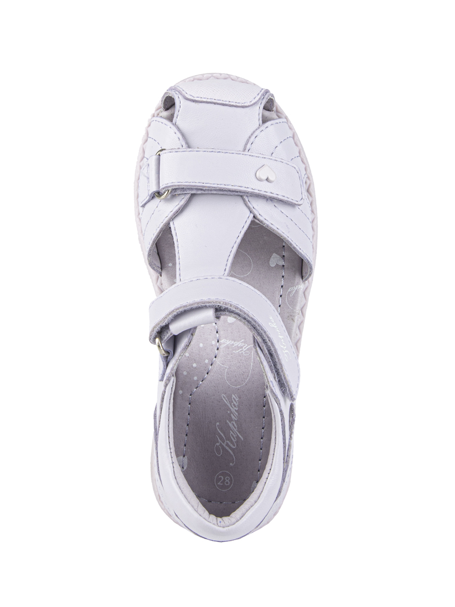 Эти сандалии для девочки изготовлены из искусственного материала для верхней части, но имеют подкладку и стельку из натуральной кожи для комфорта. Они также имеют жесткий задник и подсводник для поддержки и формирования правильной формы стопы. Подошва сделана из термопластичной резины (TPR), что обеспечивает долговечность и сцепление с поверхностью.
