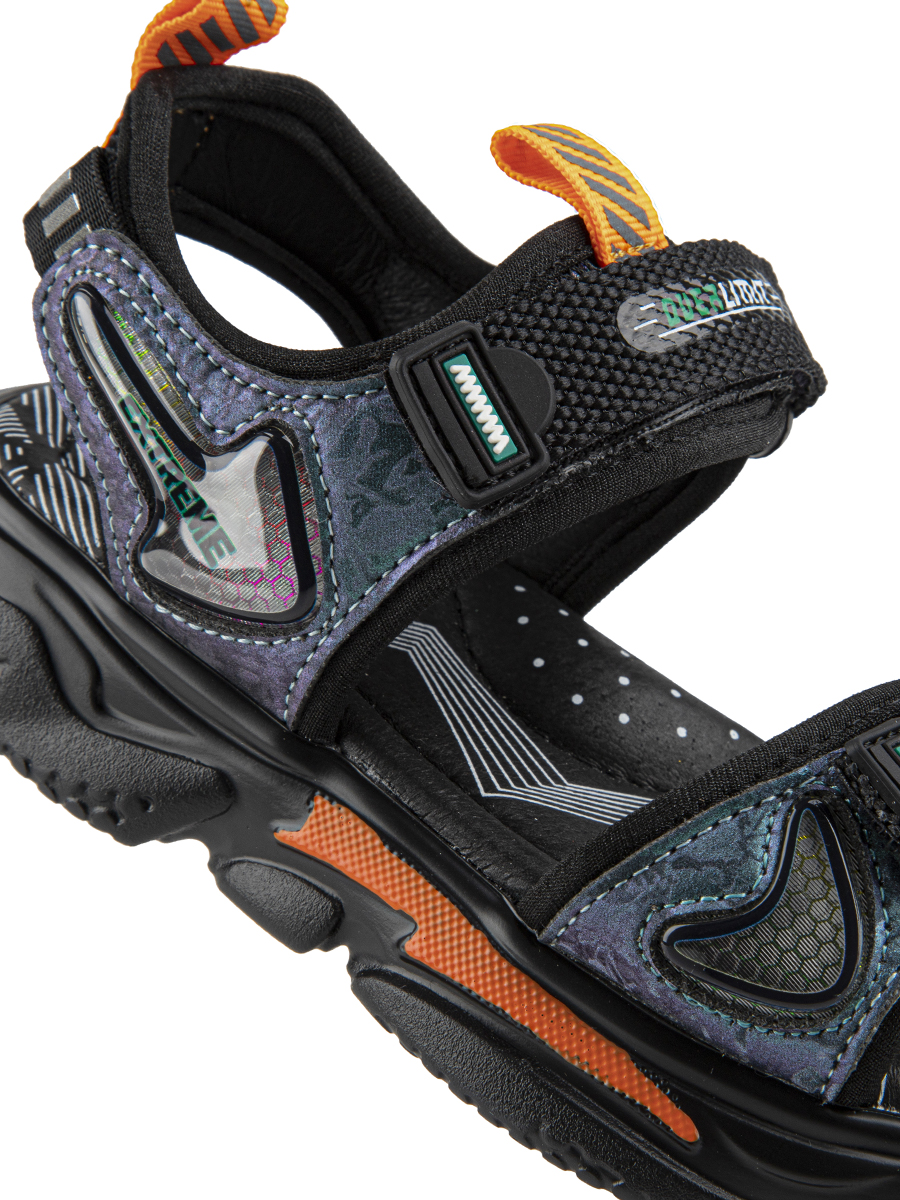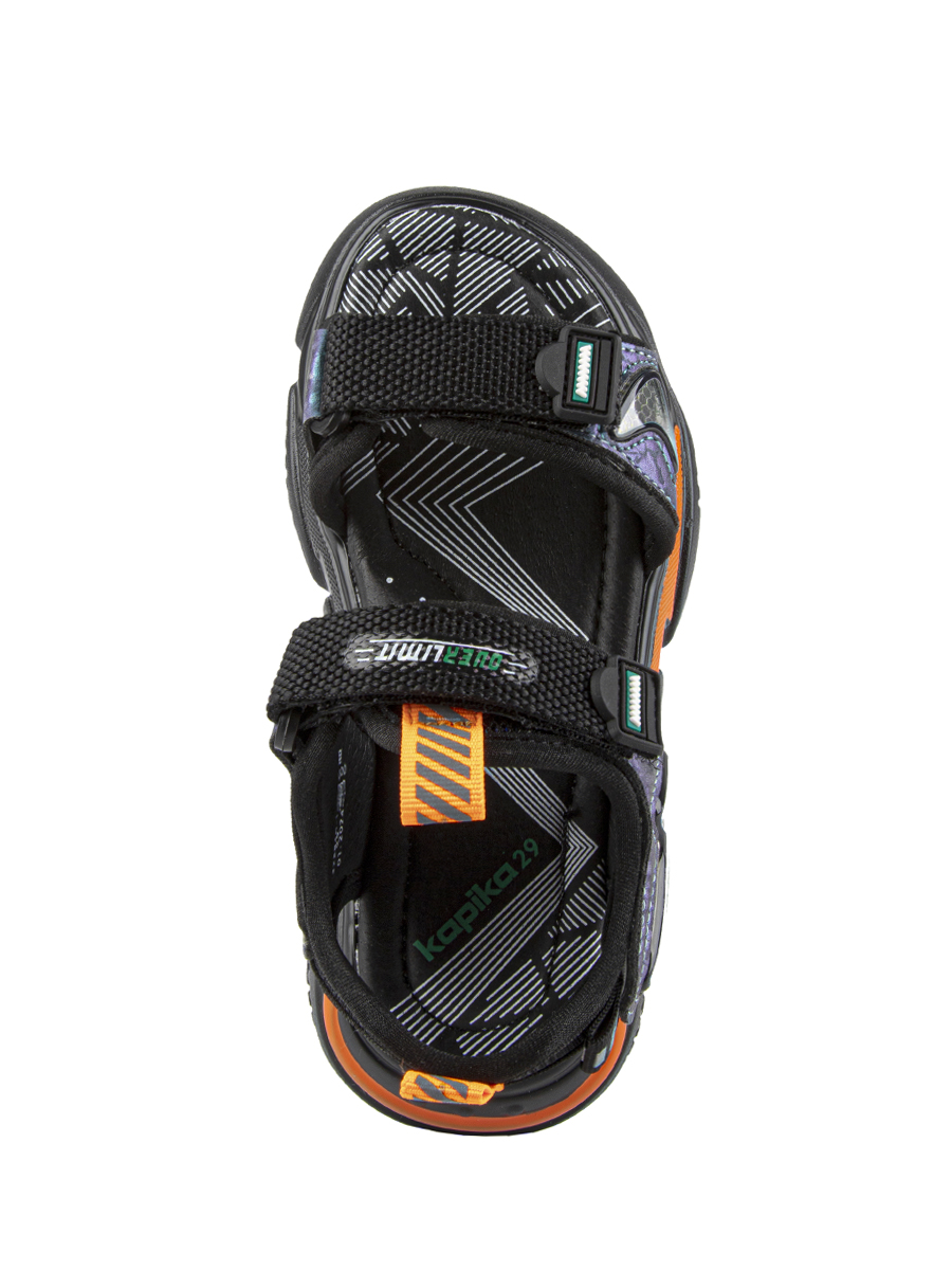 Открытые модные босоножки на спортивной подошве понравятся каждому мальчишке. Материал верха сочетает в себе искусственную кожу и текстиль. Липучки помогут отрегулировать посадку по ноге, а подкладка и стелька из натуральной кожи обеспечат комфортную носку. Легкая и гибкая подошва отлично амортизирует и создает дополнительный комфорт.