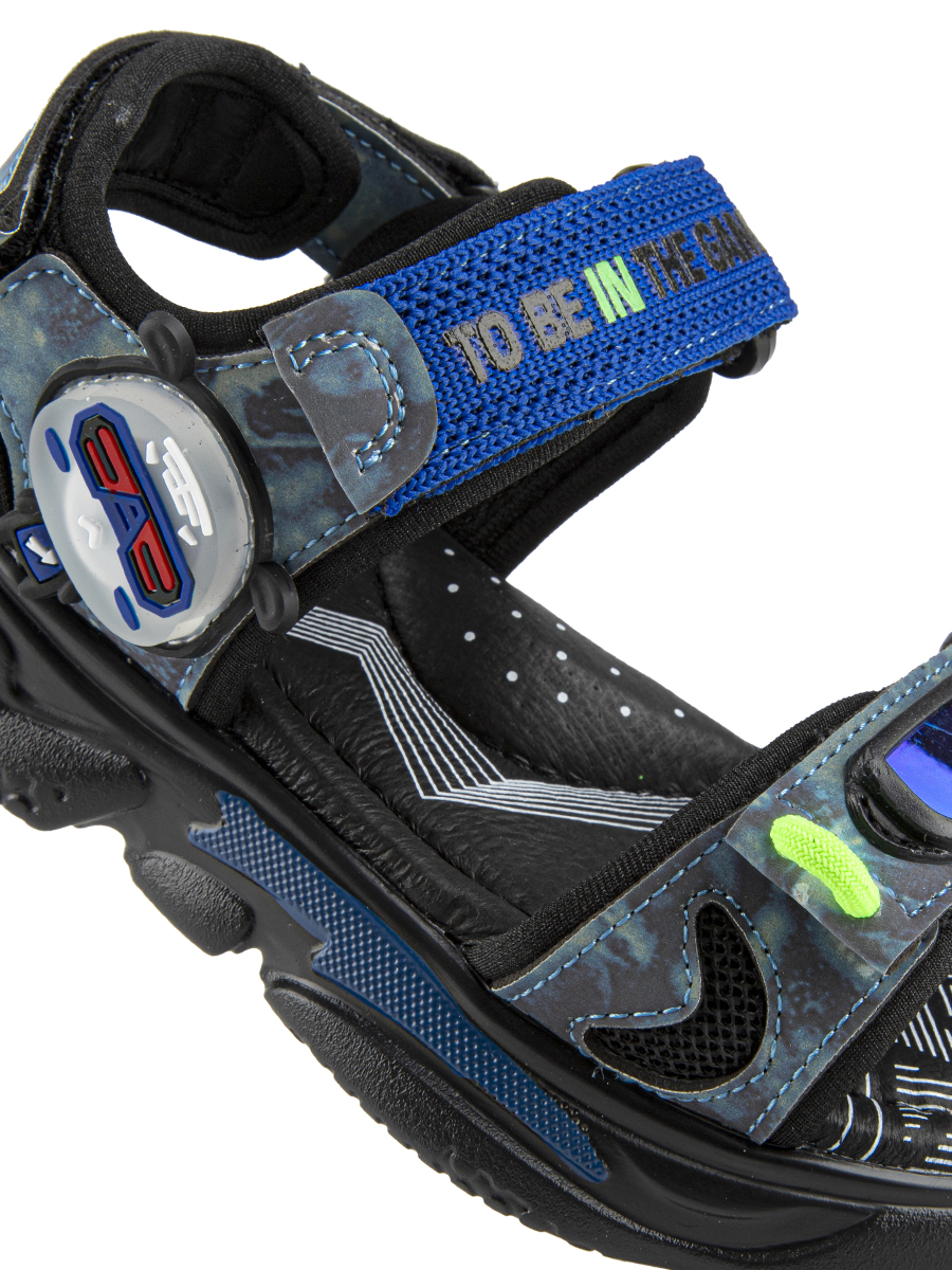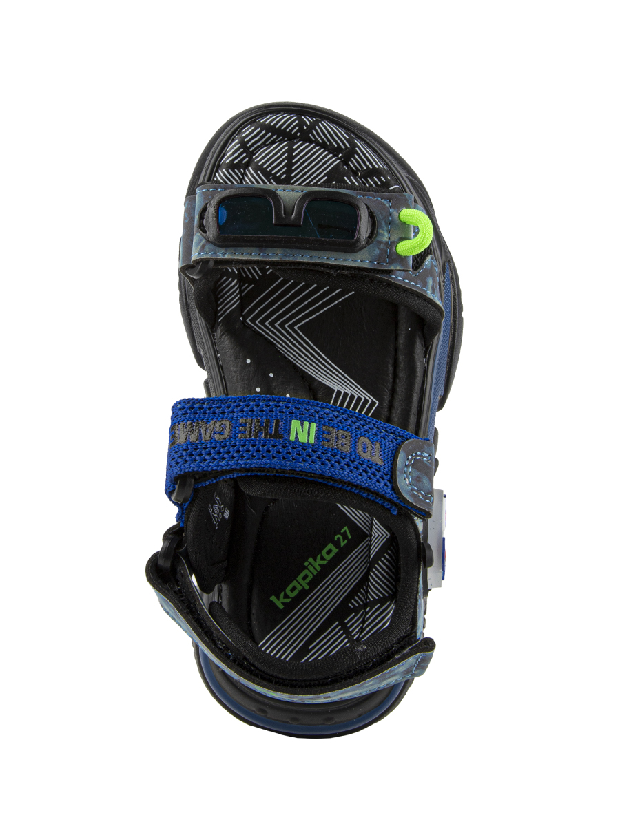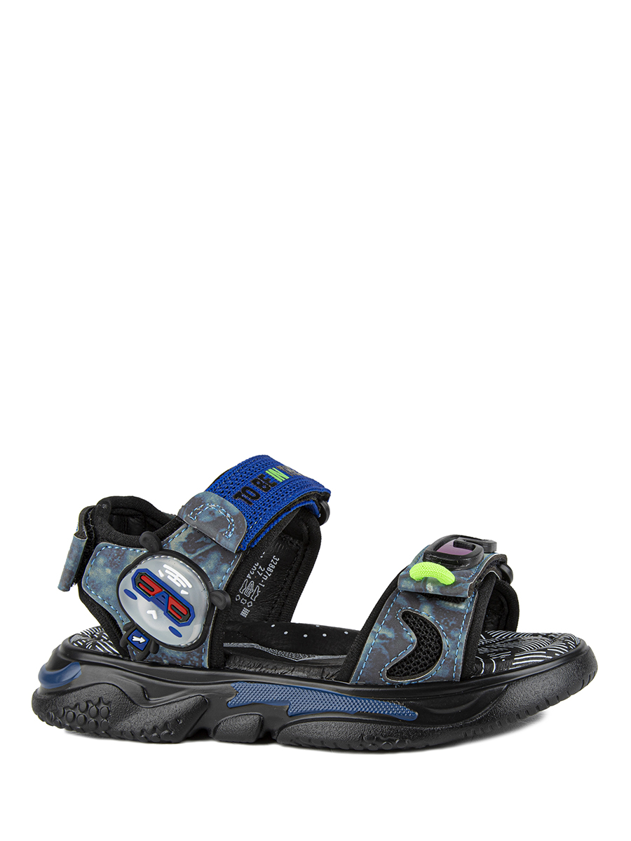 Открытые модные босоножки на спортивной подошве понравятся каждому мальчишке. Материал верха сочетает в себе искусственную кожу и текстиль. Липучки помогут отрегулировать посадку по ноге, а подкладка и стелька из натуральной кожи обеспечат комфортную носку. Легкая и гибкая подошва отлично амортизирует и создает дополнительный комфорт.