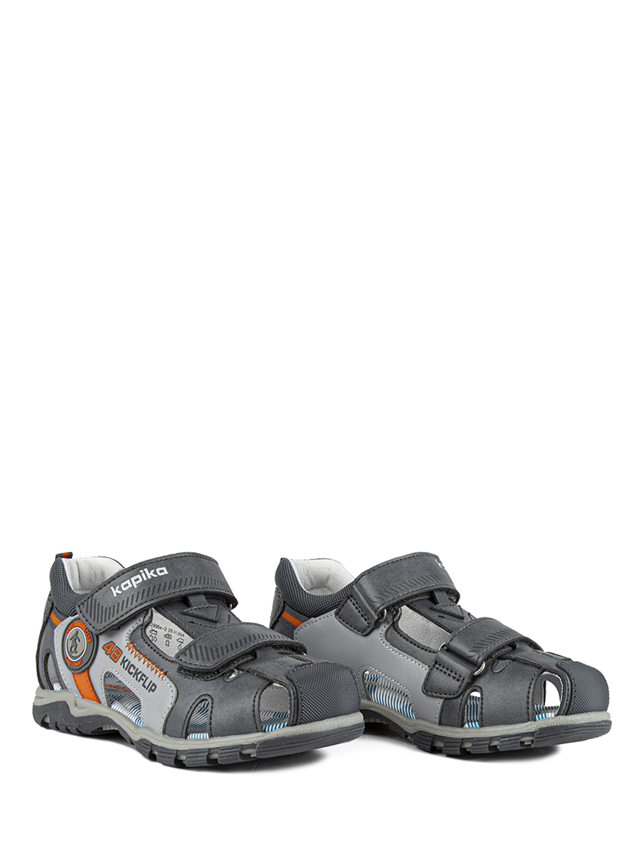 Модные сандалий для мальчика. Верх модели сочетает в себе натуральную кожу и экокожу. Наличие жесткого задника и подсводника обеспечивает правильную фиксацию стопы и профилактический эффект для всего опорно-двигательного аппарата. Натуральная кожа в подкладке и стельке обеспечит комфортное ношение в течении дня. Застежки- липучки позволяют регулировать обувь по полноте. Долговечная ТЭП подошва продлевает срок службы обуви.