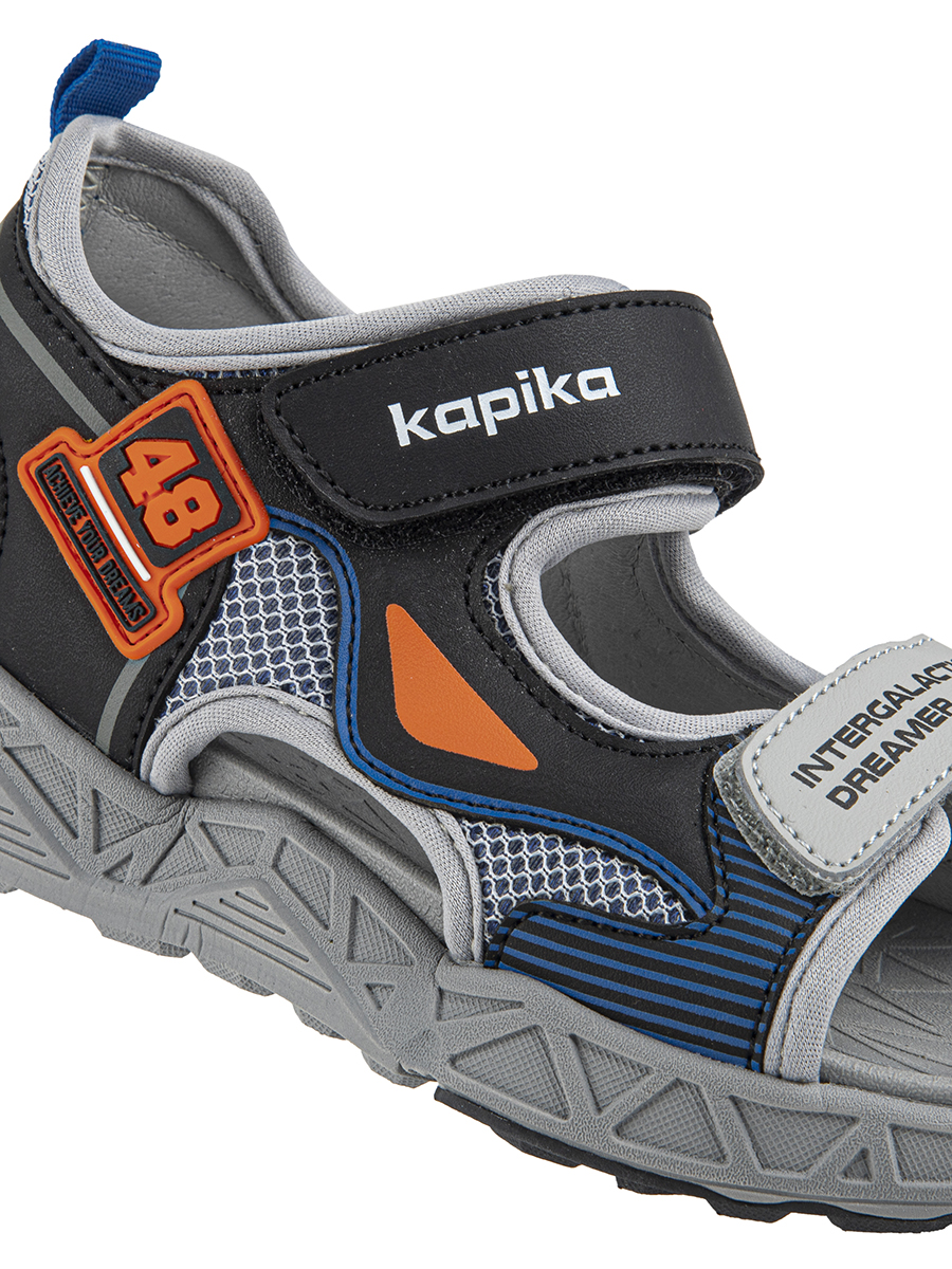 Открытые модные босоножки на спортивной подошве понравятся каждому мальчишке. Материал верха сочетает в себе искусственную кожу и текстиль. Липучки помогут отрегулировать посадку по ноге, а подкладка из натуральной кожи обеспечит комфортную носку. Легкая и гибкая подошва отлично амортизирует и создает дополнительный комфорт.