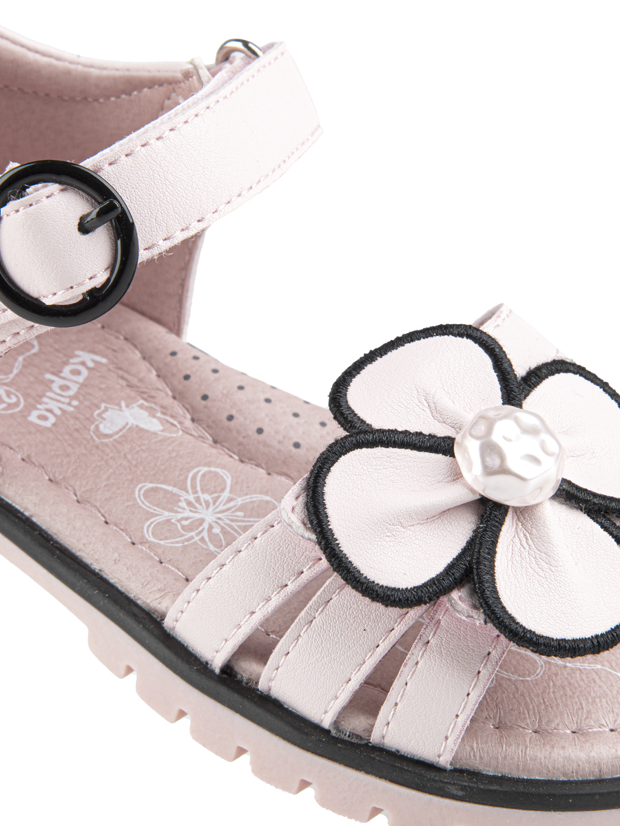 Эти сандалии для девочки изготовлены из текстиля и искусственного материала для верхней части, но имеют подкладку и стельку из натуральной кожи для комфорта. Они также имеют жесткий задник и подсводник для поддержки и формирования правильной формы стопы. Подошва сделана из термопластичной резины (TPR), что обеспечивает долговечность и сцепление с поверхностью.