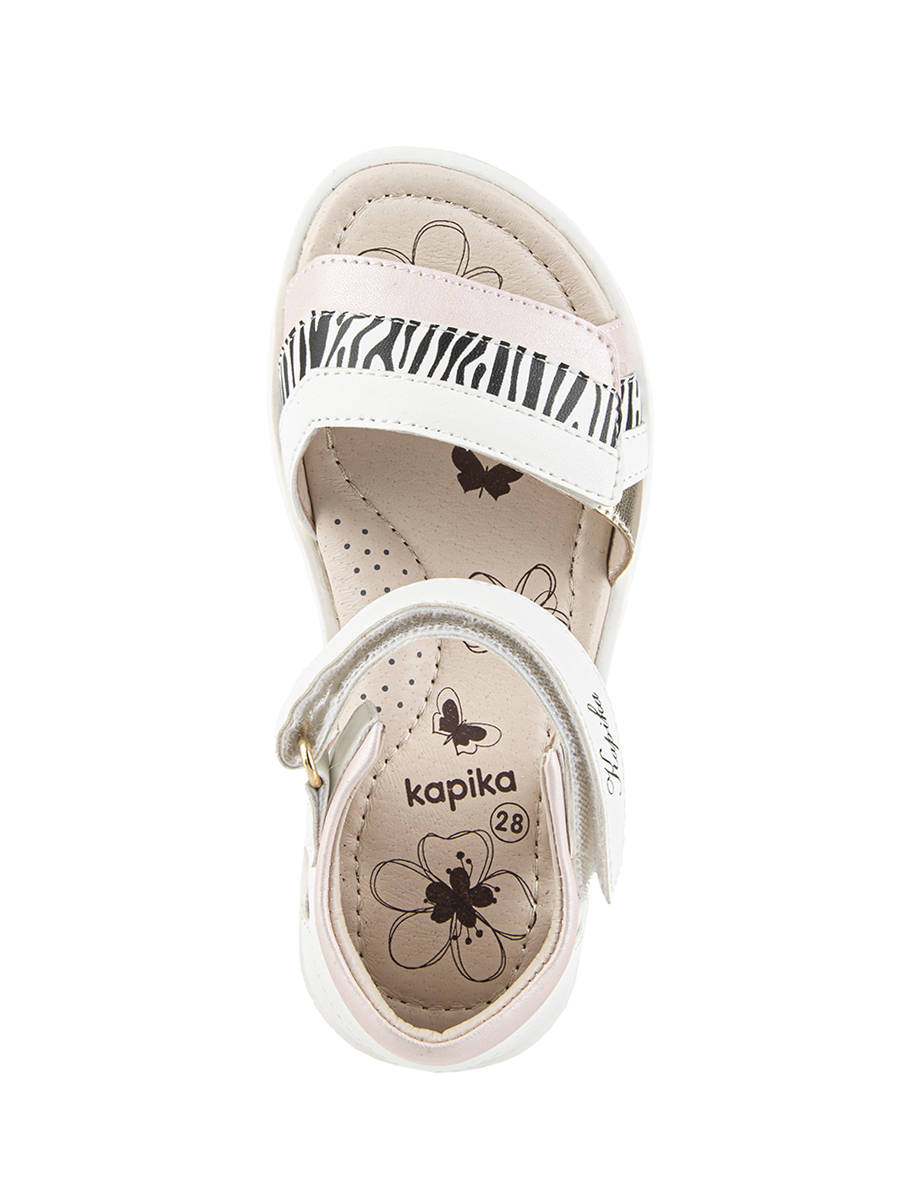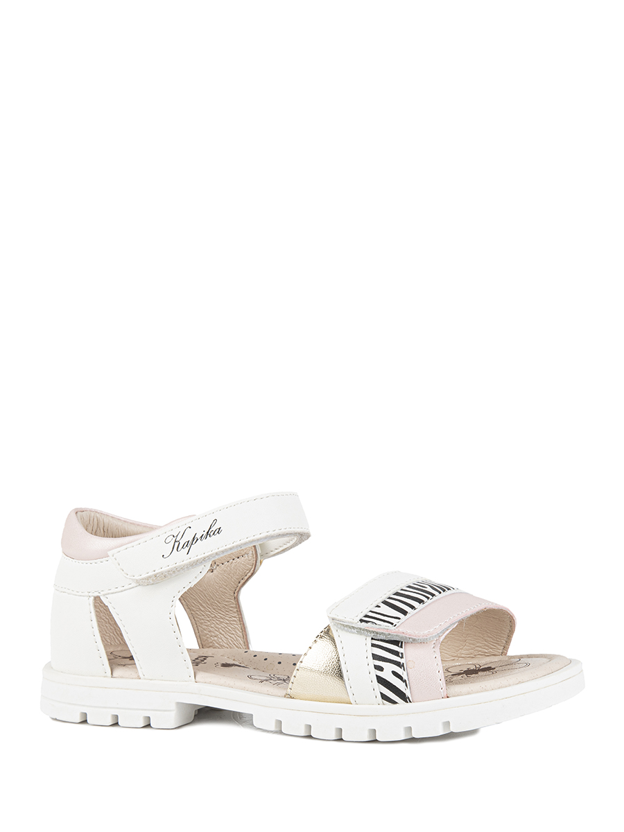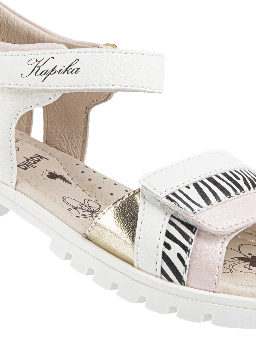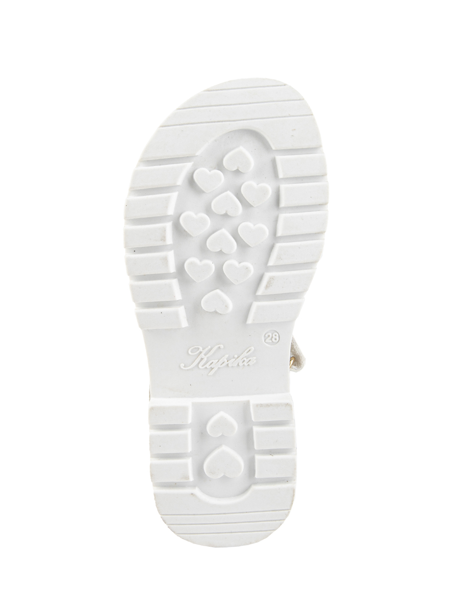 Эти сандалии для девочки изготовлены из искусственного материала для верхней части, но имеют подкладку и стельку из натуральной кожи для комфорта. Они также имеют жесткий задник и подсводник для поддержки и формирования правильной формы стопы. Подошва сделана из термопластичной резины (TPR), что обеспечивает долговечность и сцепление с поверхностью.