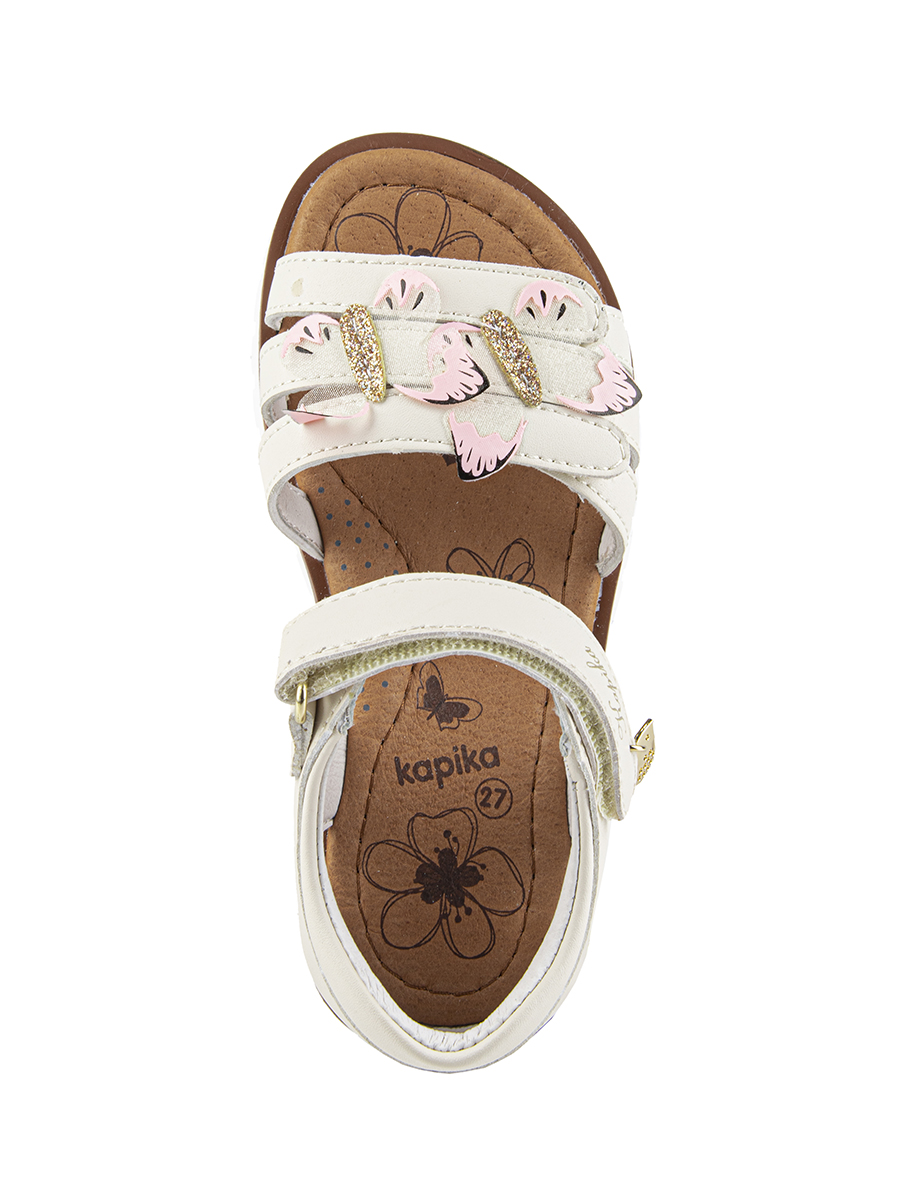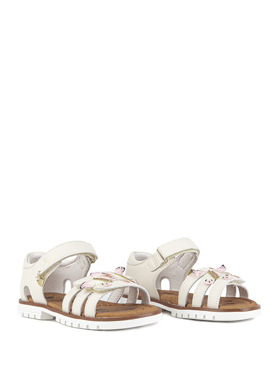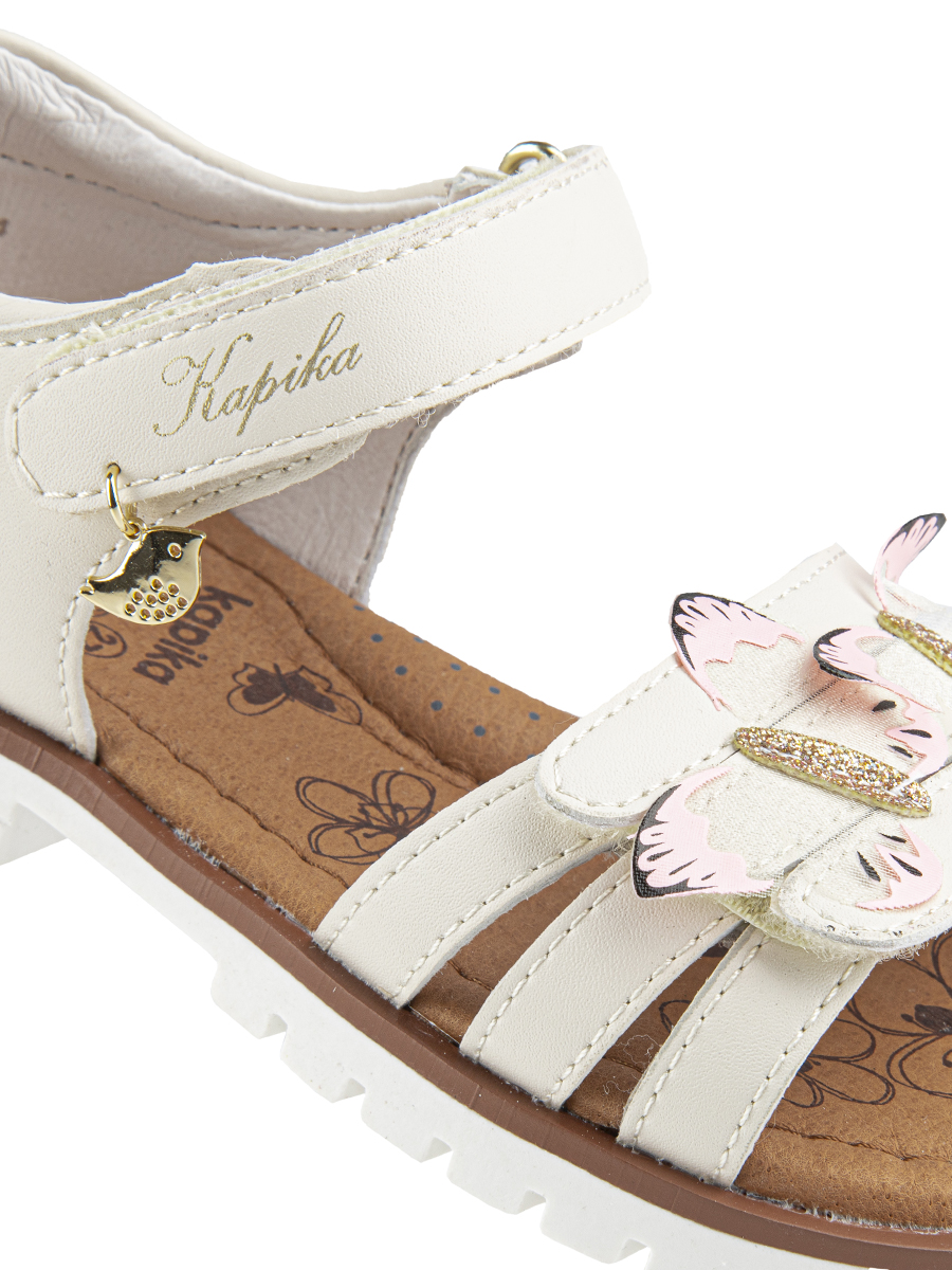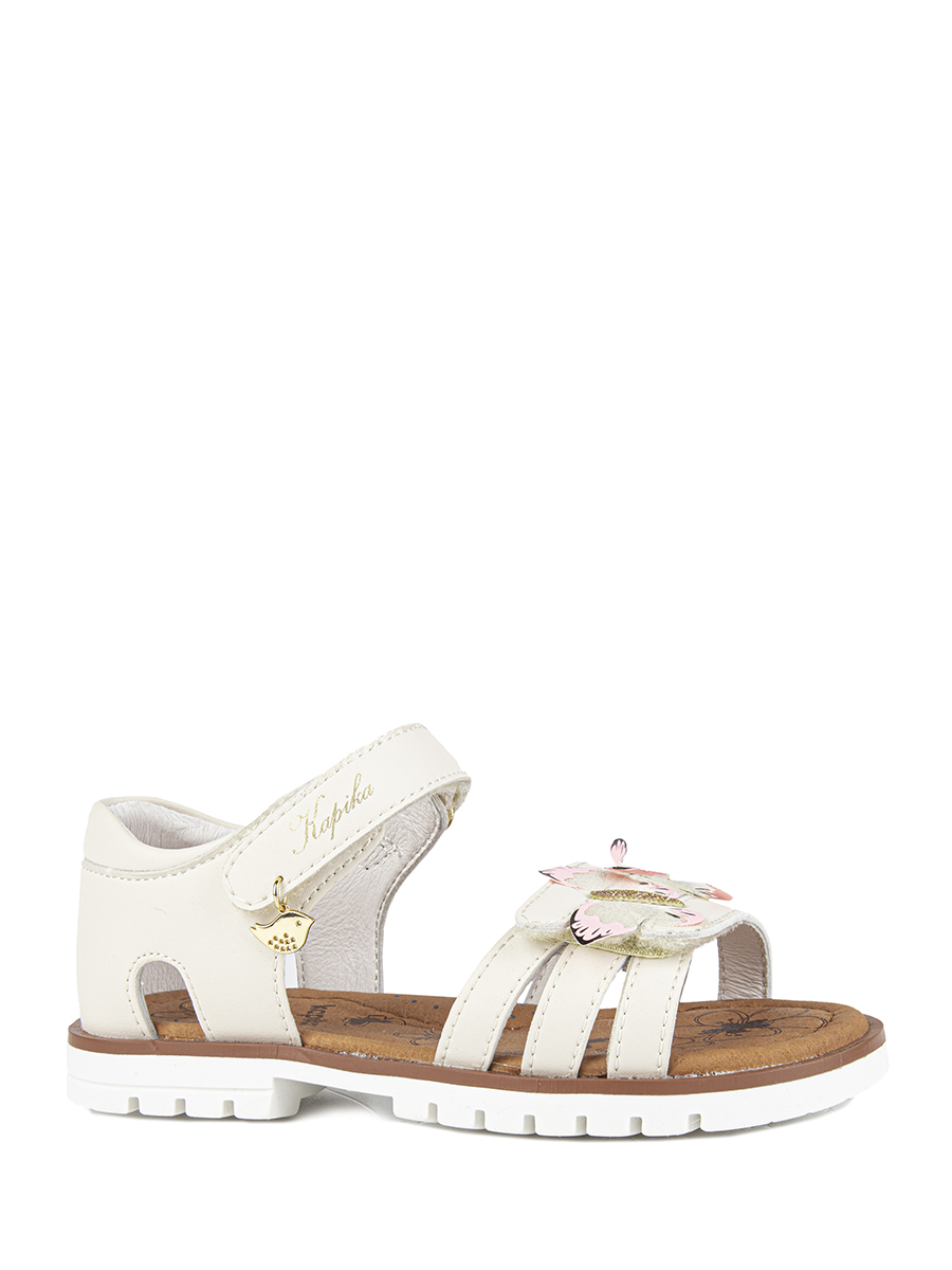Сандалии для девочки изготовлены из натуральной кожи (верх, подкладка и стелька). Сандалии имеют жесткий задник и подсводник для поддержки и формирования правильной формы стопы. Подошва произведена из термопластичной резины (TPR), что обеспечивает долговечность и хорошее сцепление с поверхностью.