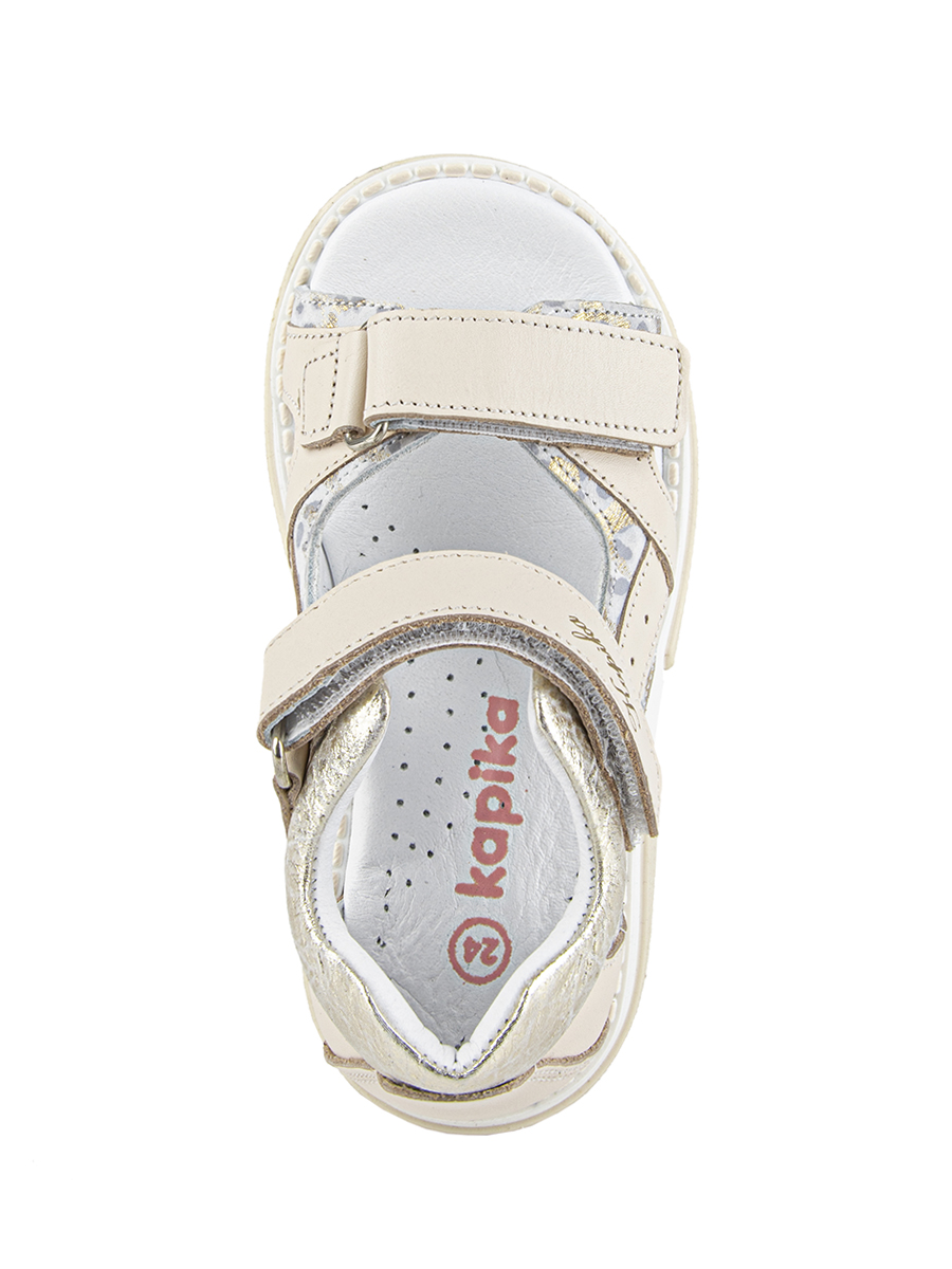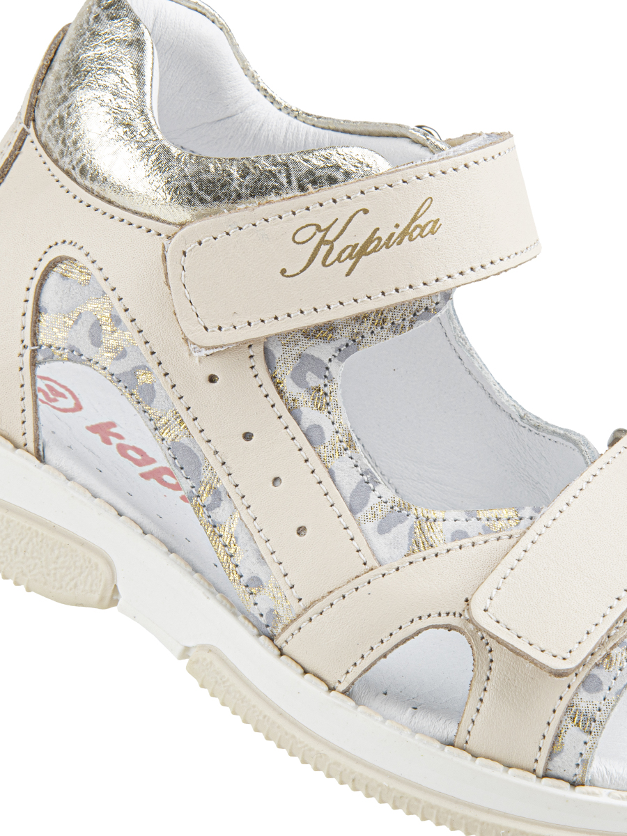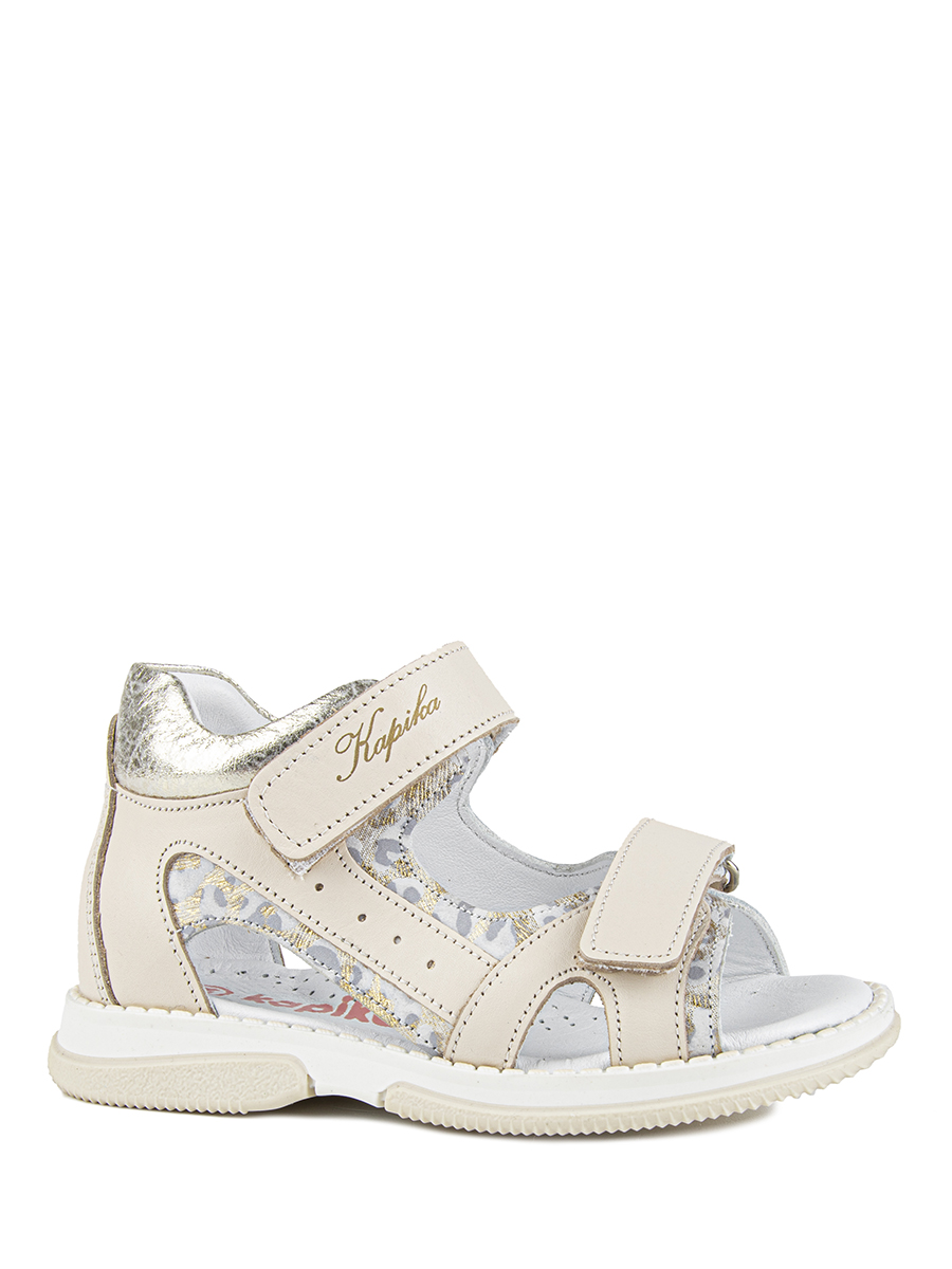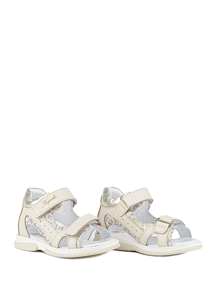 Сандалии для девочки изготовлены из натуральной кожи (верх, подкладка и стелька). Сандалии имеют жесткий задник и подсводник для поддержки и формирования правильной формы стопы. Подошва произведена из термопластичной резины (TPR), что обеспечивает долговечность и хорошее сцепление с поверхностью.