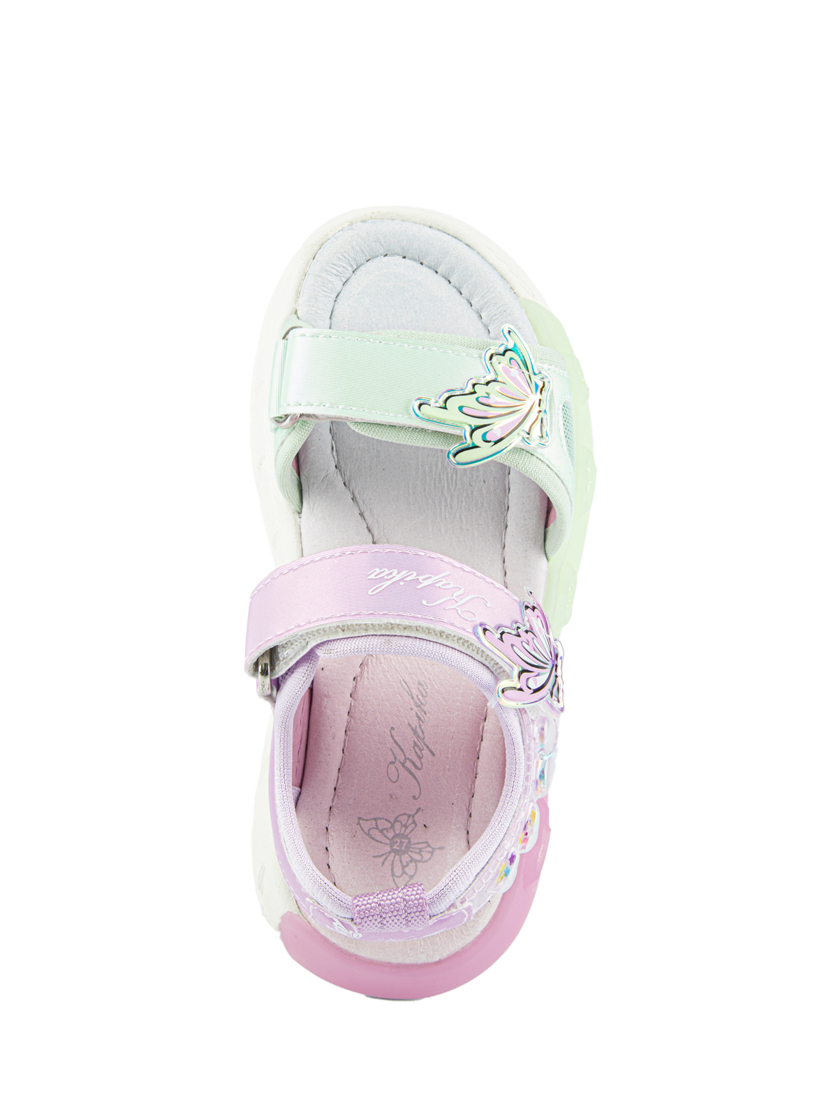 Модные босоножки для девочки с верхом из высокопрочной искуственной кожи, будут надежно фиксироваться на ноге, за счет липучки. Натуральная кожа в подкладке и стельке обеспечит комфортное ношение в течении дня. Облегченная подошва отличается отличной амортизацией.