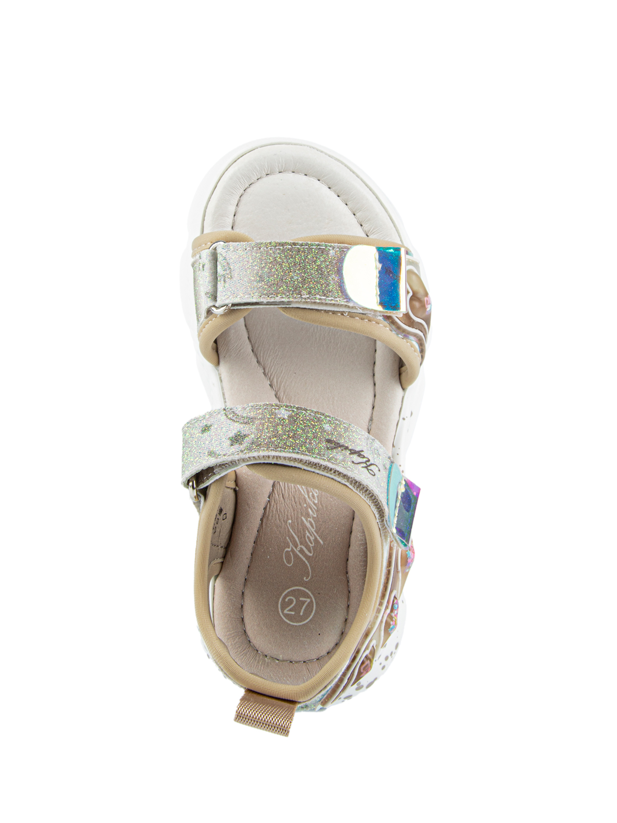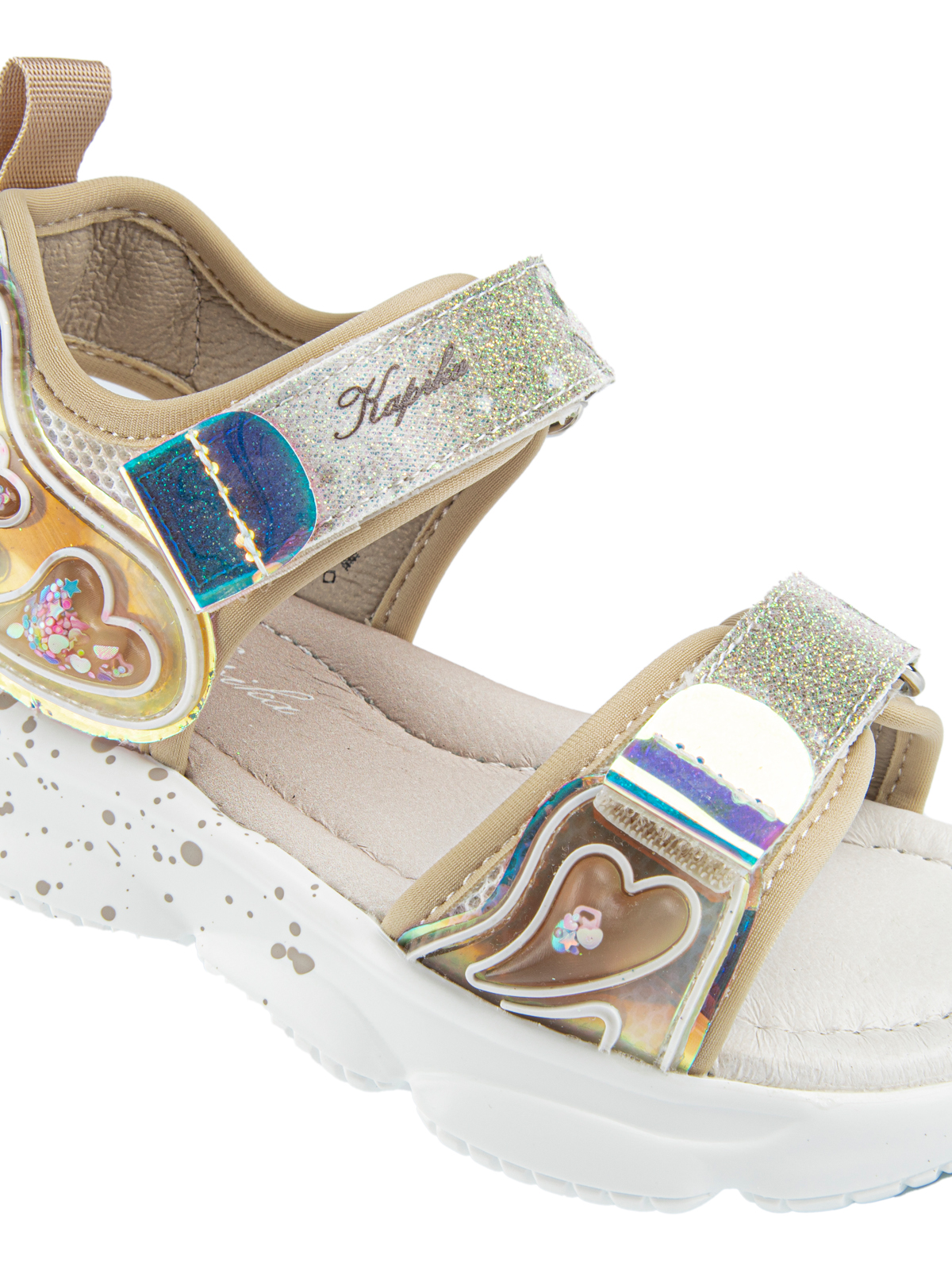 Модные босоножки для девочки с верхом из высокопрочной искуственной кожи и текстиля, будут надежно фиксироваться на ноге, за счет липучки. Натуральная кожа в подкладке и стельке обеспечит комфортное ношение в течении дня. Облегченная подошва отличается отличной амортизацией.