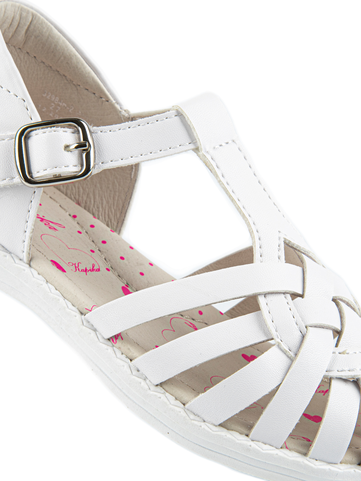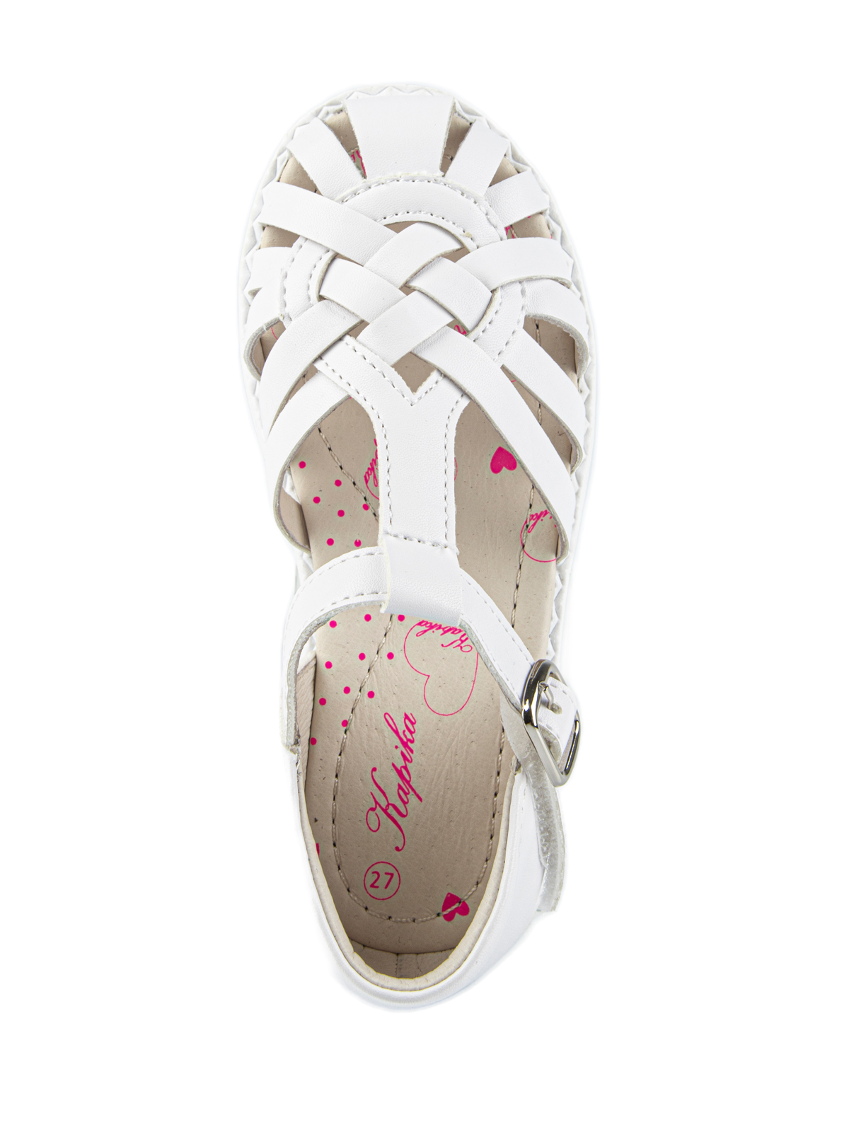 Модные босоножки для девочки с верхом из высокопрочной искуственной кожи, будут надежно фиксироваться на ноге, за счет липучки. Натуральная кожа в подкладке и стельке обеспечит комфортное ношение в течении дня. Облегченная подошва отличается отличной амортизацией.