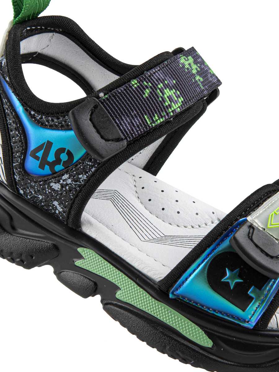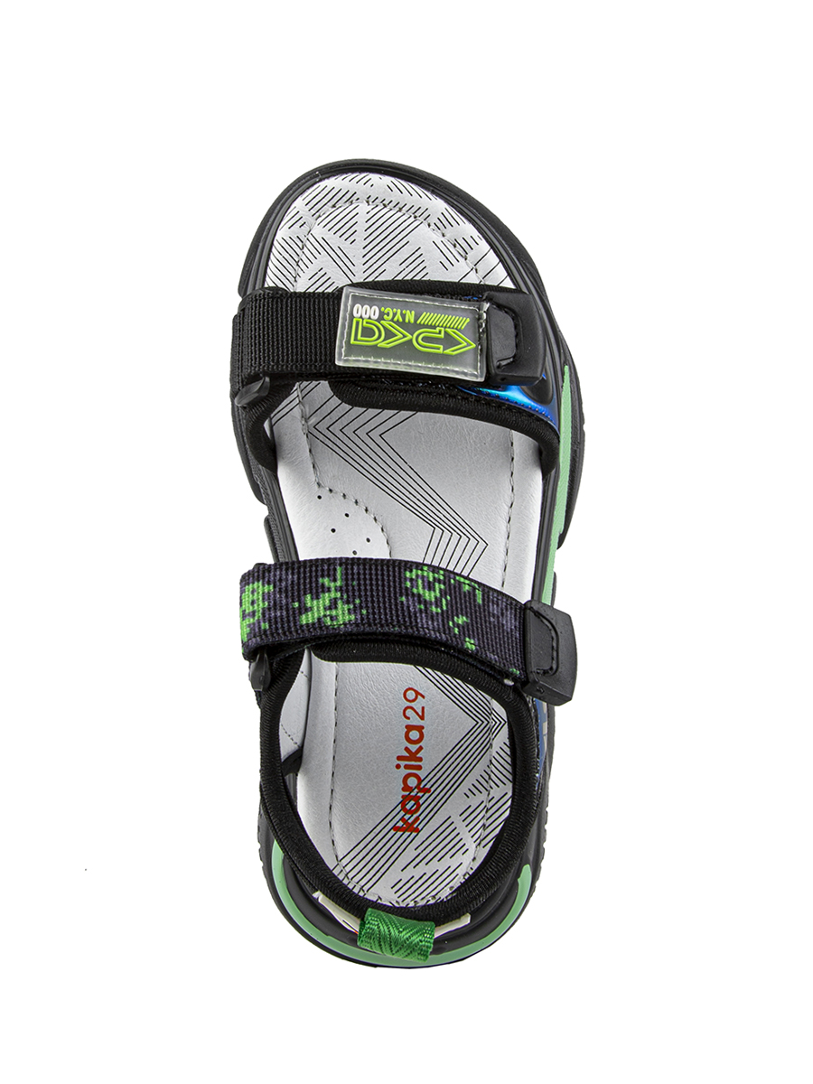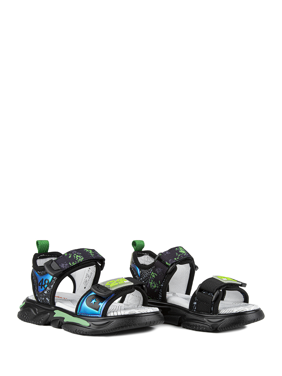 Модные сандалии для мальчика из высокопрочной экокожи и текстиля. Застежки - липучки позволяют регулировать обувь по полноте. Подошва отличается отличной амортизацией и легкостью.