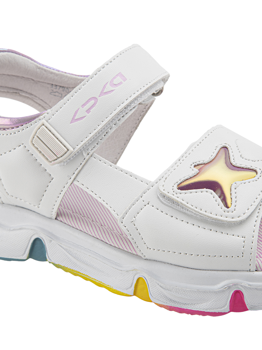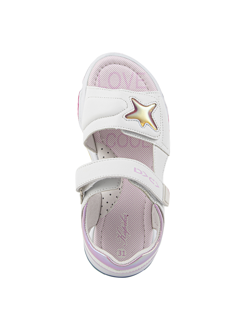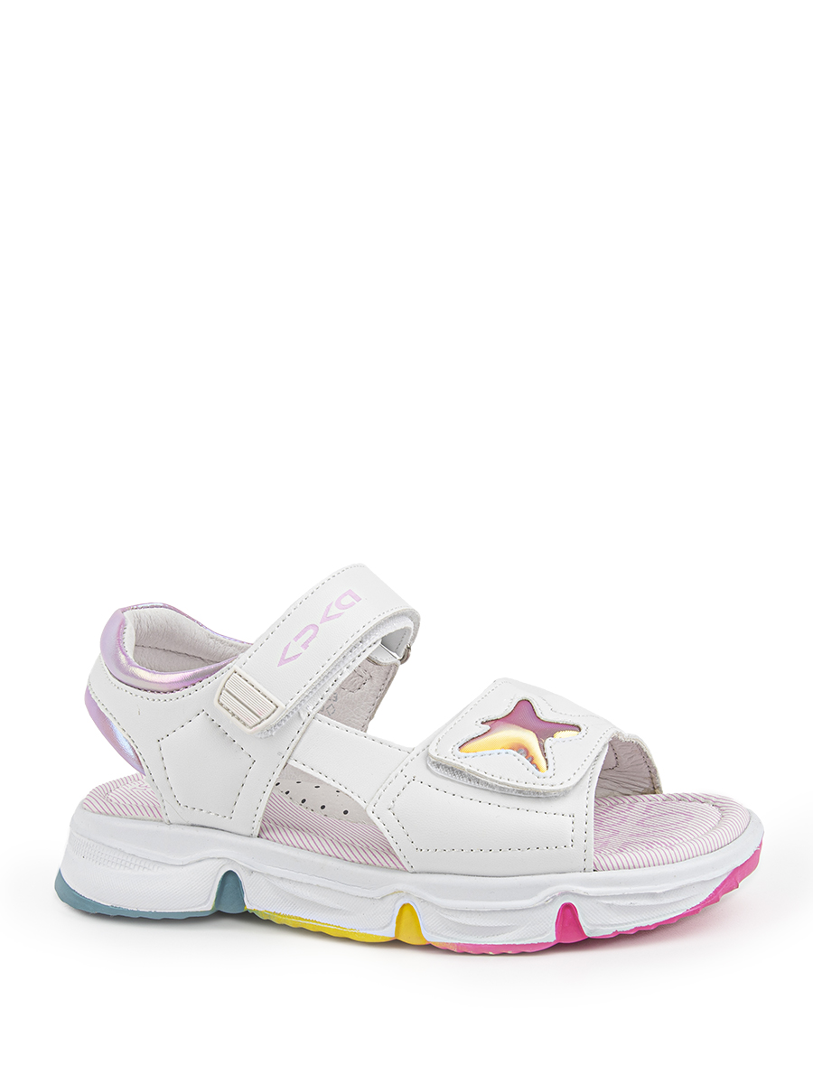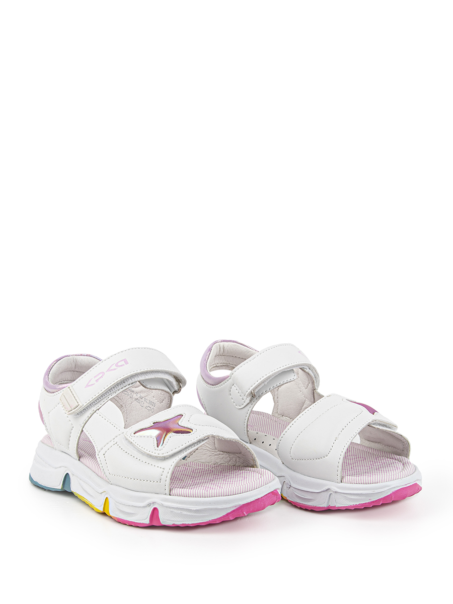 Модные сандалии для девочки из высокопрочной экокожи на спортивной подошве. Подкладка и стелька выполнены из натуральной кожи. Застежки - липучки позволяют регулировать обувь по полноте. Подошва отличается отличной амортизацией и легкостью.